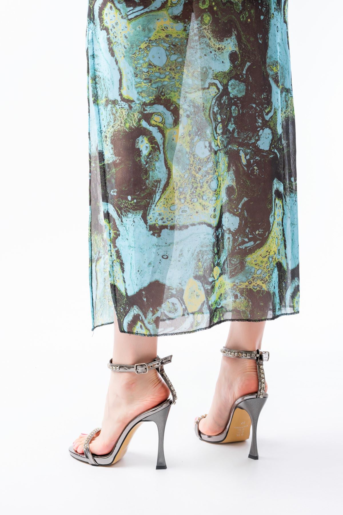 Ayakkabı Aşkı Platin Taş Aksesuarlı Platformlu Topuklu Kadın Terlik
