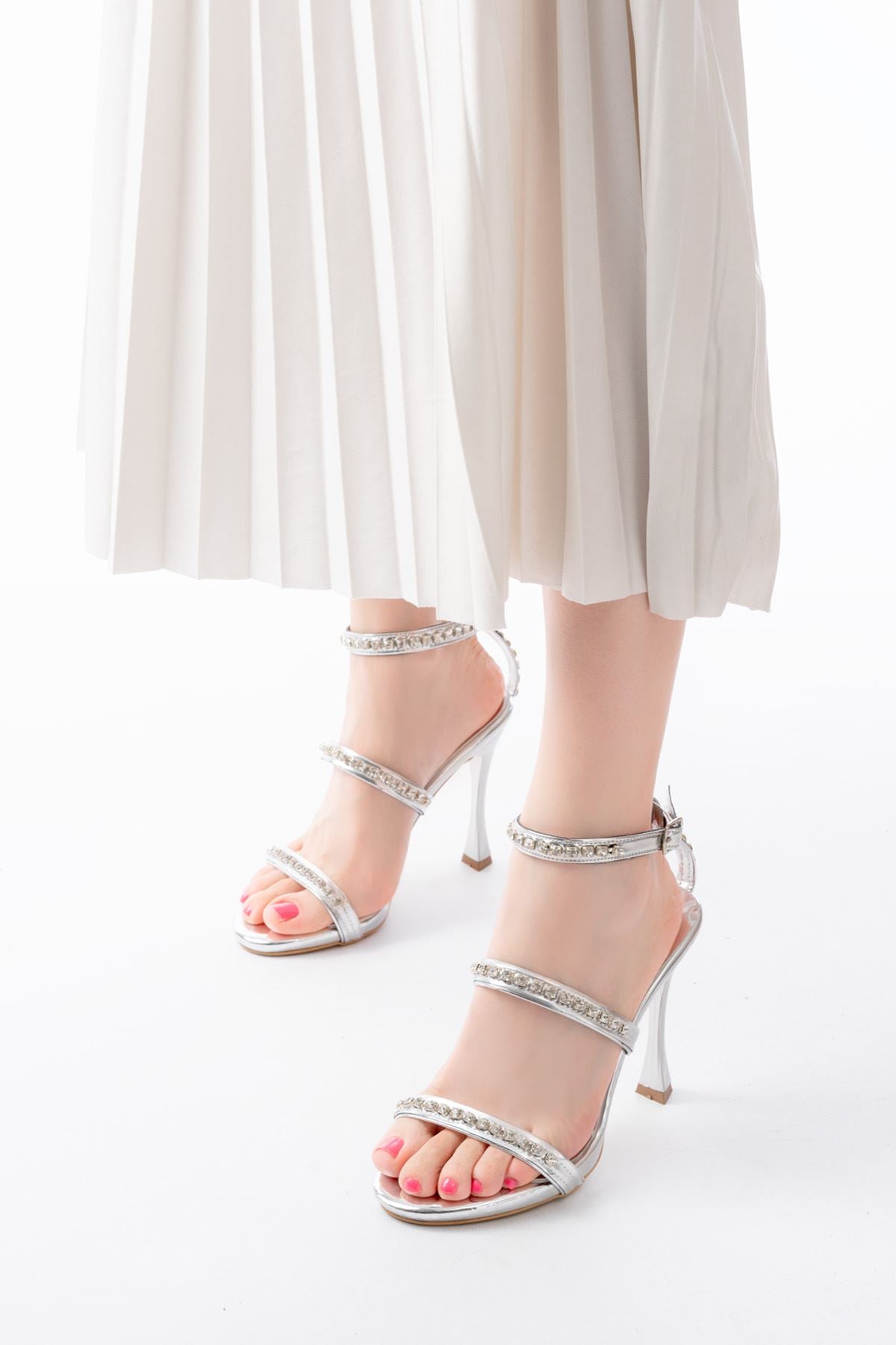 Ayakkabı Aşkı Gümüş Taşlı Platformlu Topuklu Kadın Ayakkabı
