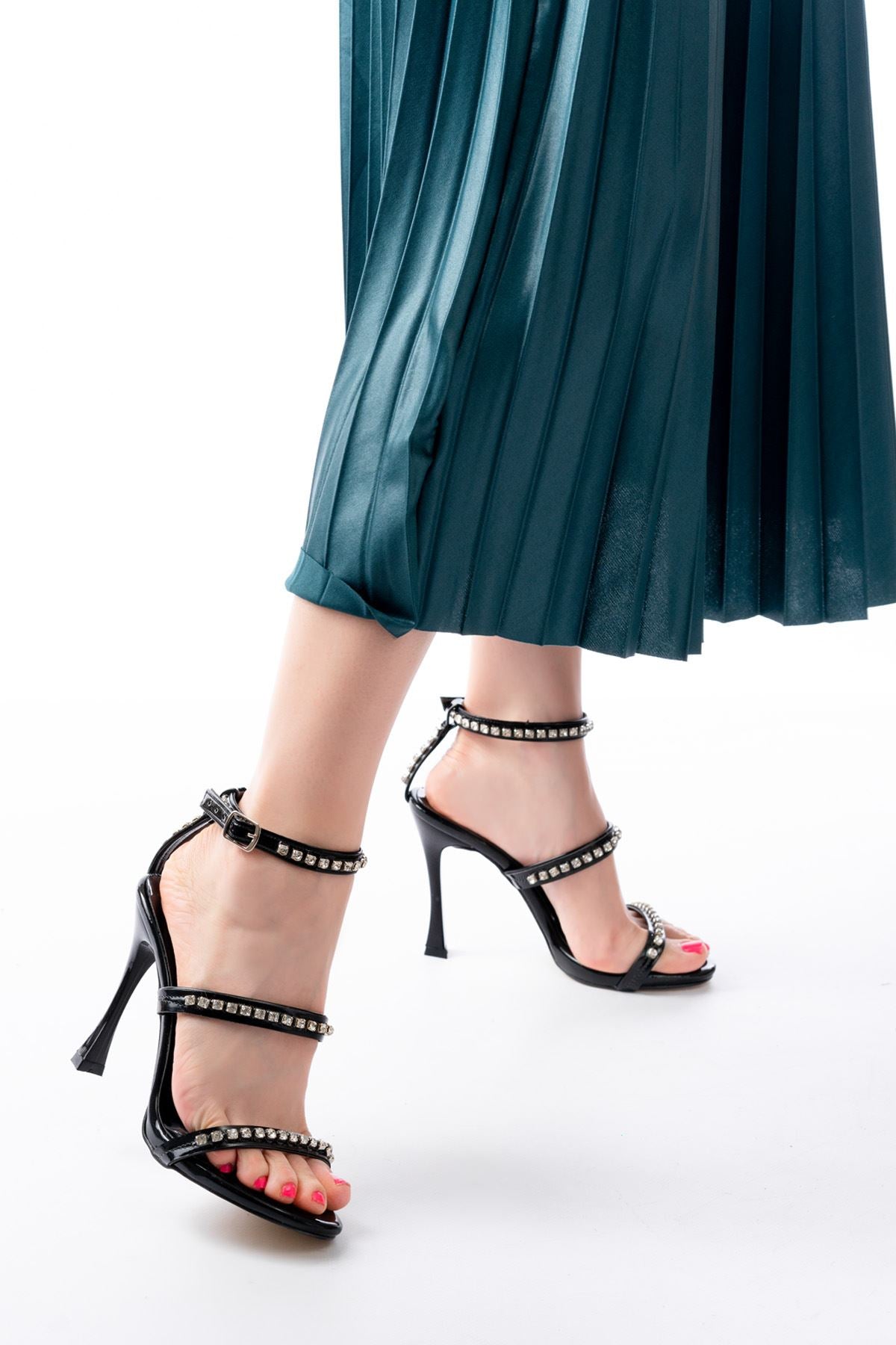Ayakkabı Aşkı Siyah Taşlı Platformlu Topuklu Kadın Ayakkabı