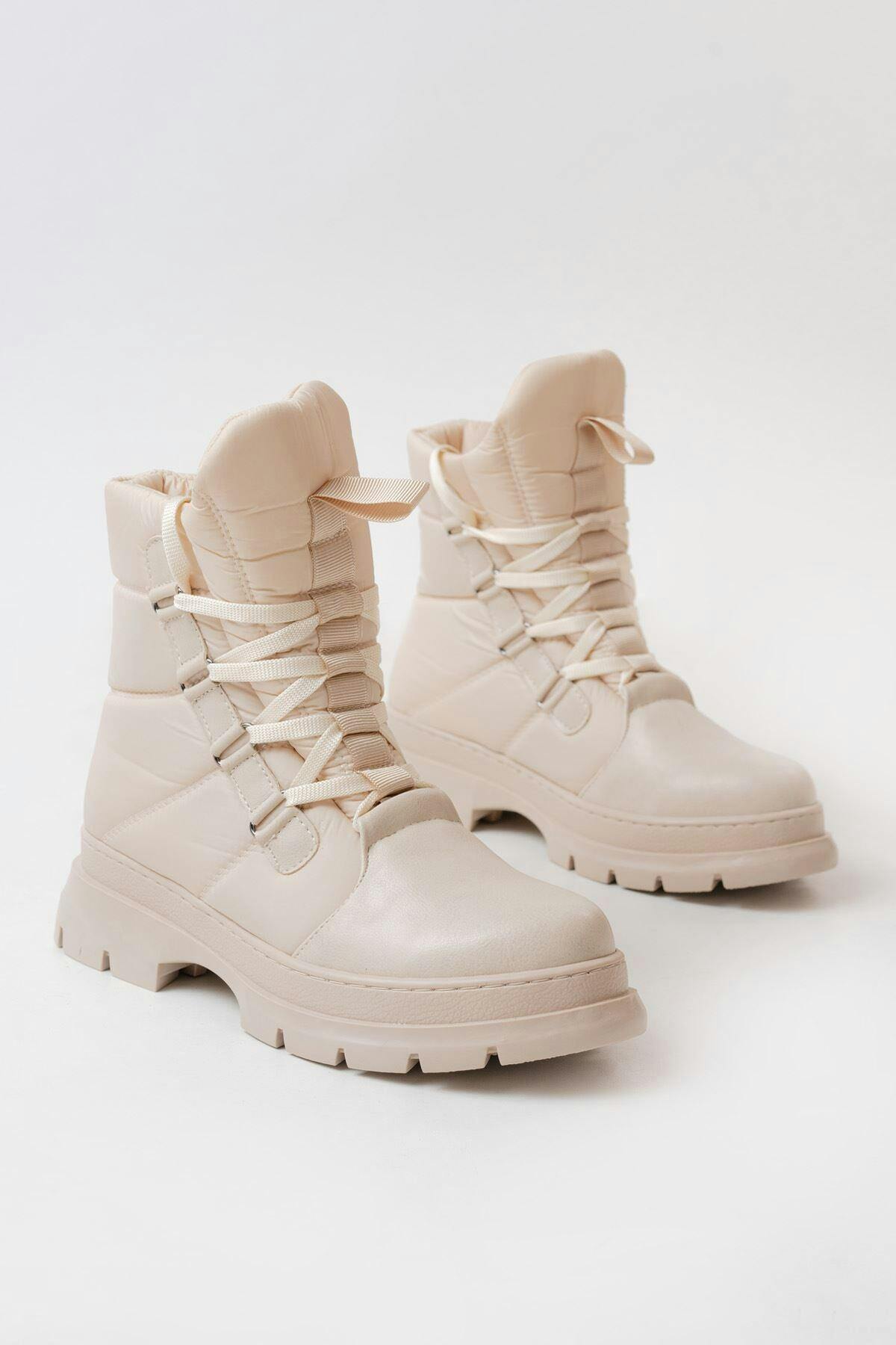 Ayakkabı Aşkı Bej Bağcıklı Su Geçirmez Kadın Kar Botu
