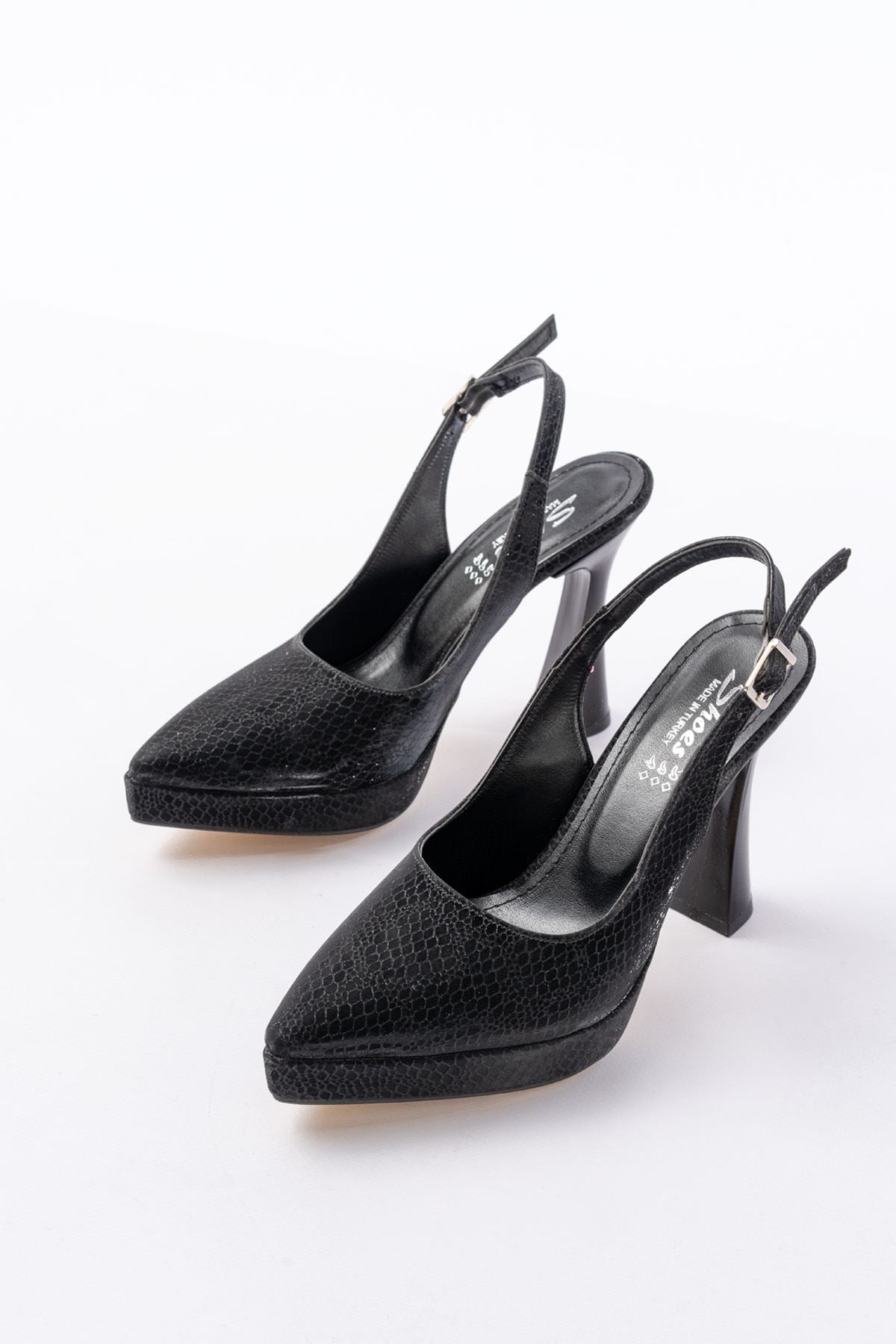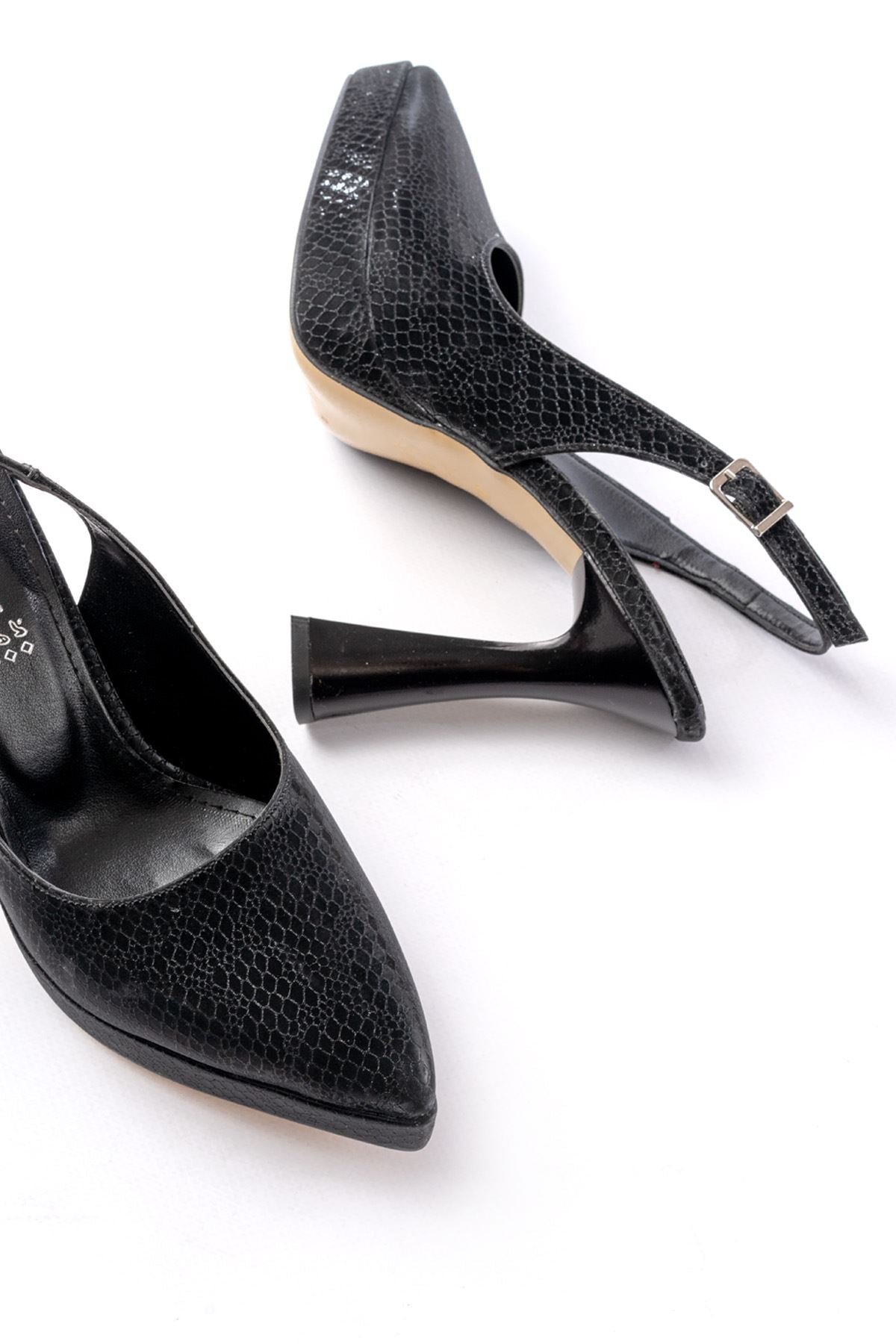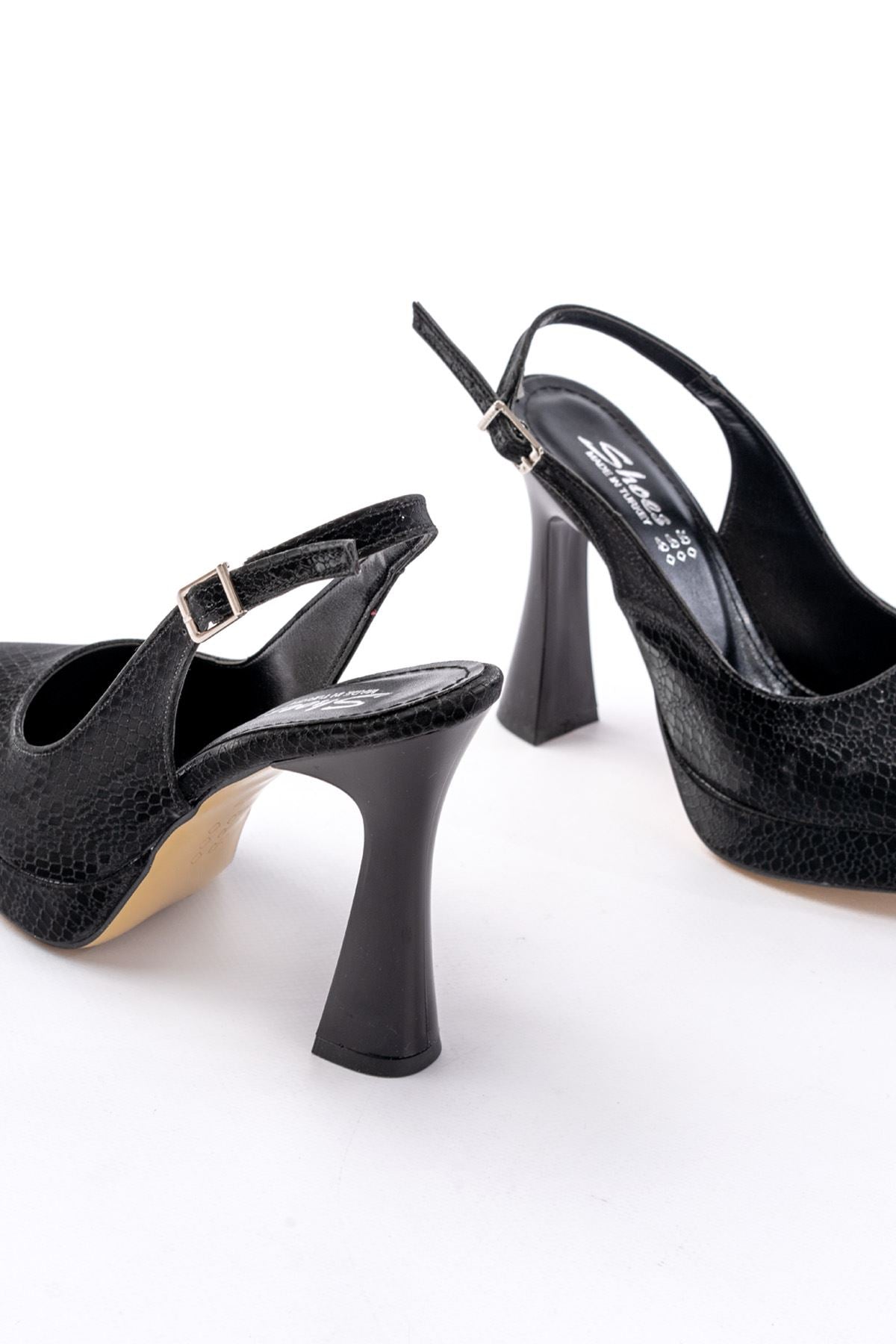 Ayakkabı Aşkı Siyah Günlük Arkası Açık Yılan Desenli Topuklu Bayan Ayakkabı
