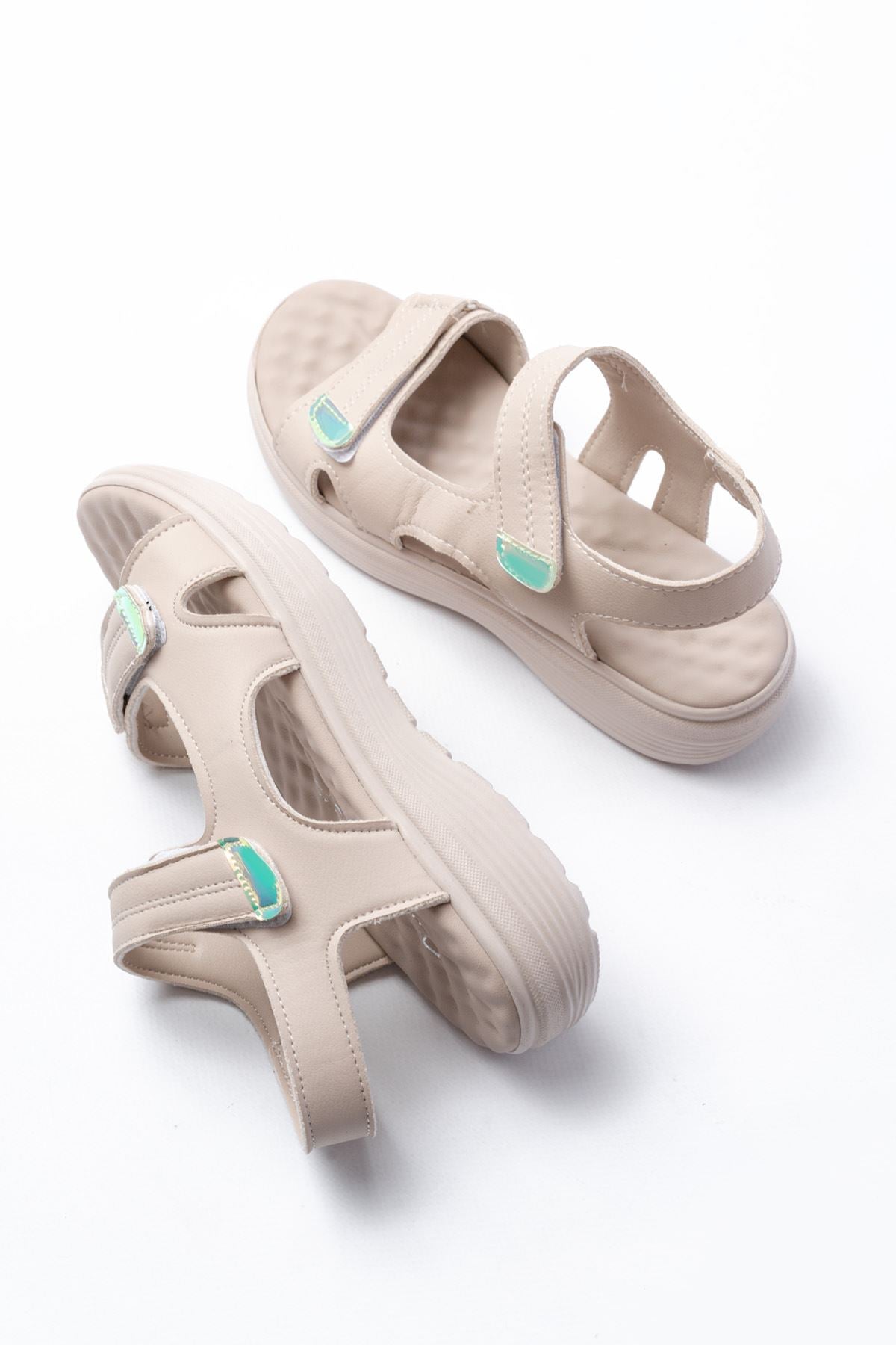Ayakkabı Aşkı Bej Baret Cırtlı Dikişli Günlük Kadın Sandalet