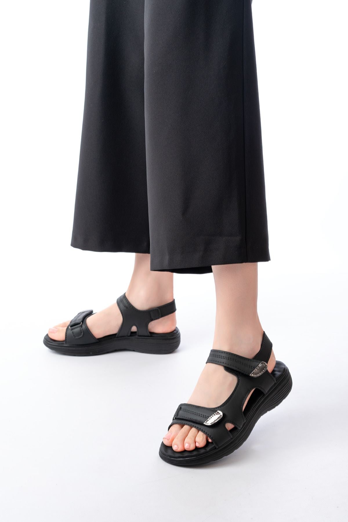 Ayakkabı Aşkı Siyah Baret Cırtlı Dikişli Günlük Kadın Sandalet