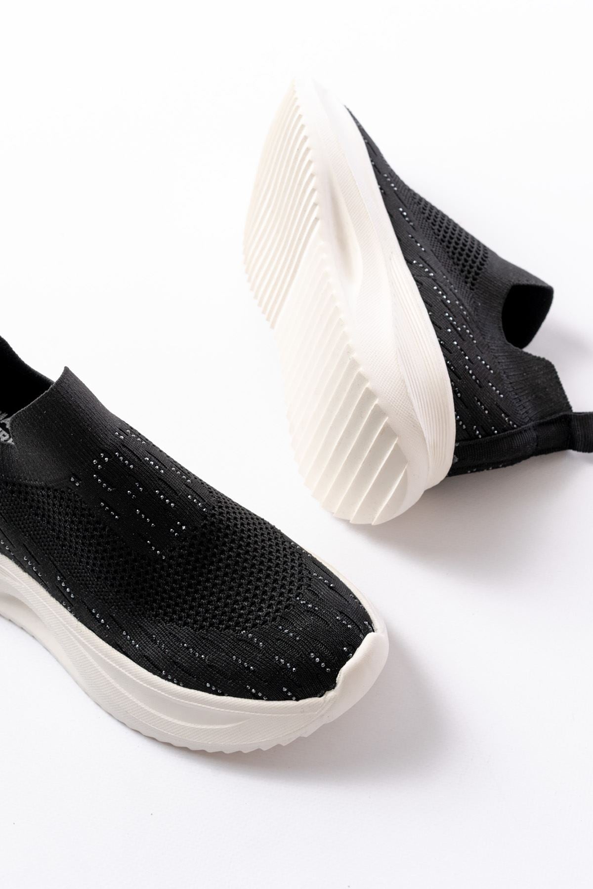 Ayakkabı Aşkı Siyah Fileli Beyaz Faillant Taban Taş Aksesuarlı Günlük Spor Ayakkab
