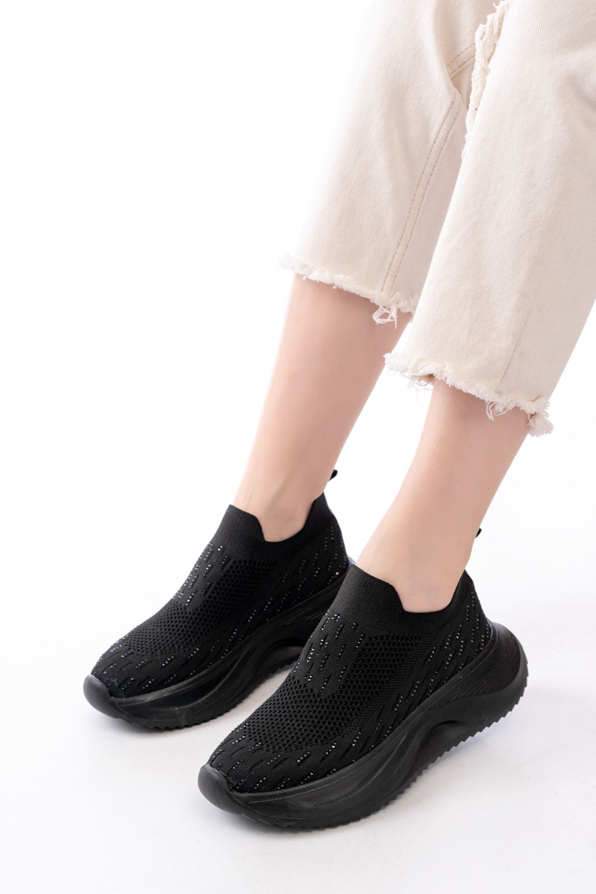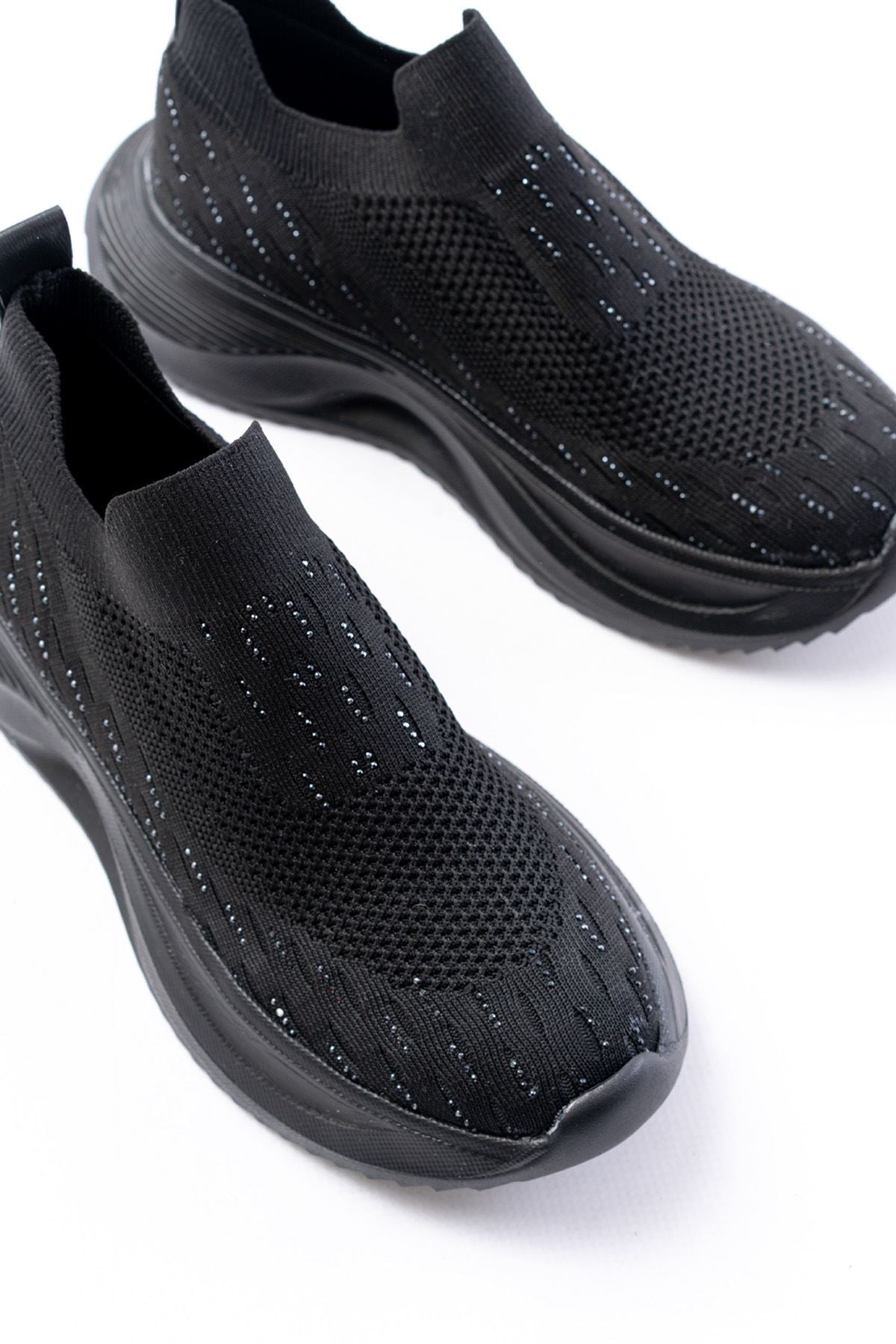 Ayakkabı Aşkı Siyah Fileli Faillant Taban Taş Aksesuarlı Günlük Spor Ayakkabı