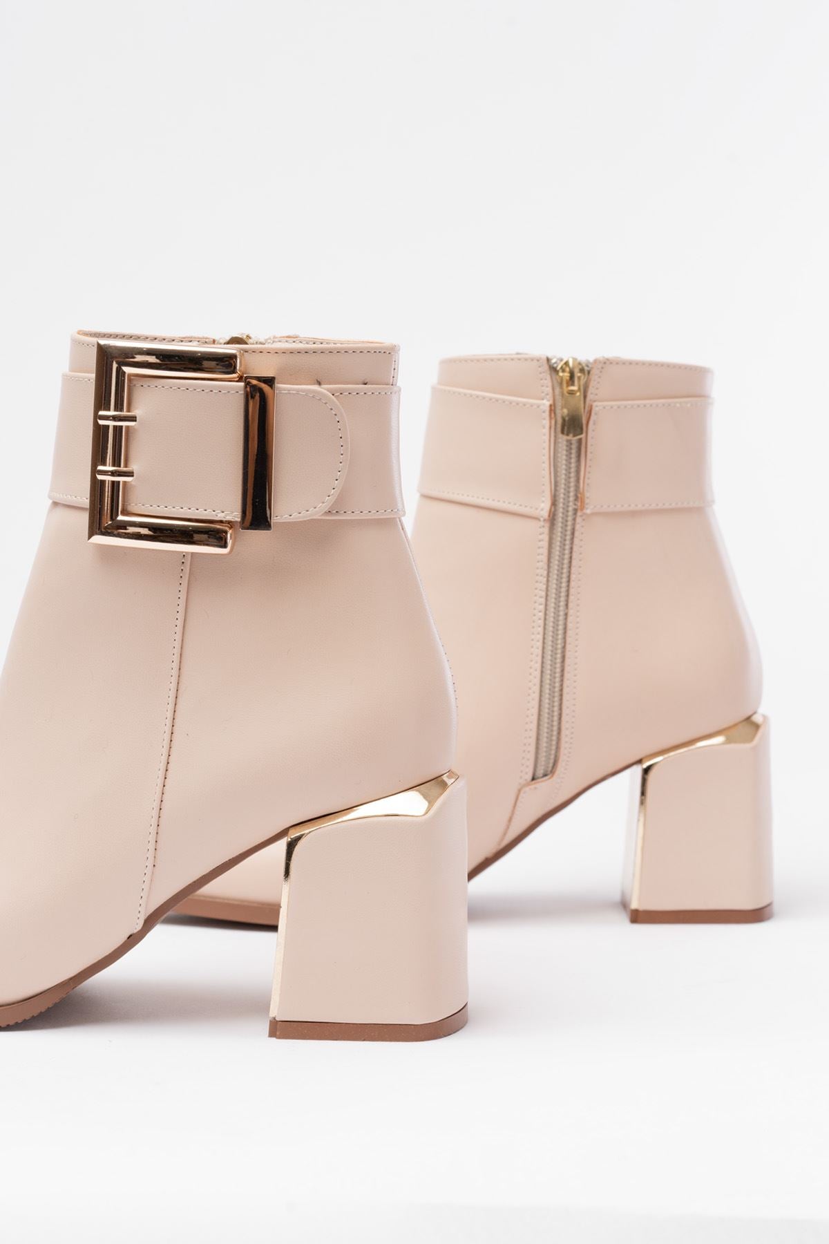 Ayakkabı Aşkı Bej Toka Aksesuarlı Topuklu Fermuarlı Günlük Kadın Bot