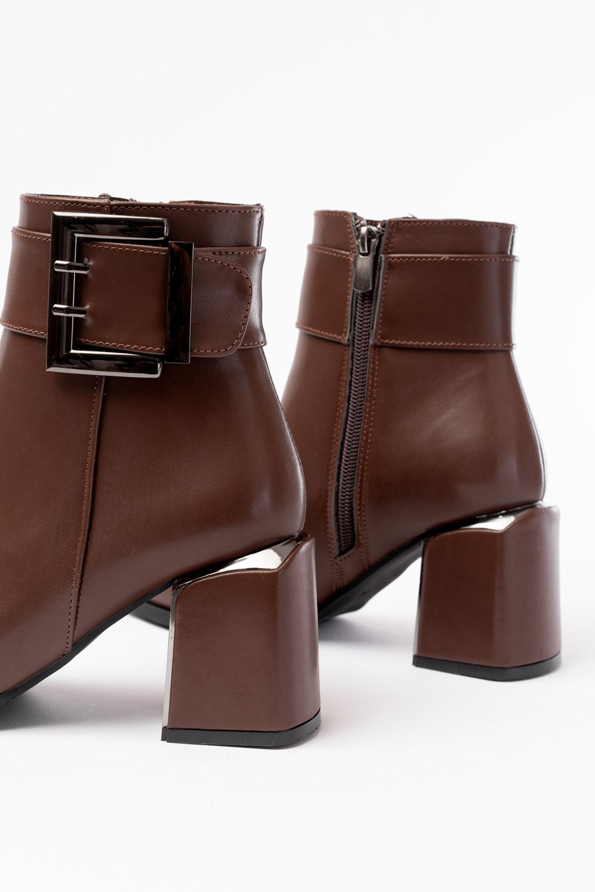 Ayakkabı Aşkı Kahverengi Toka Aksesuarlı Topuklu Fermuarlı Günlük Kadın Bot