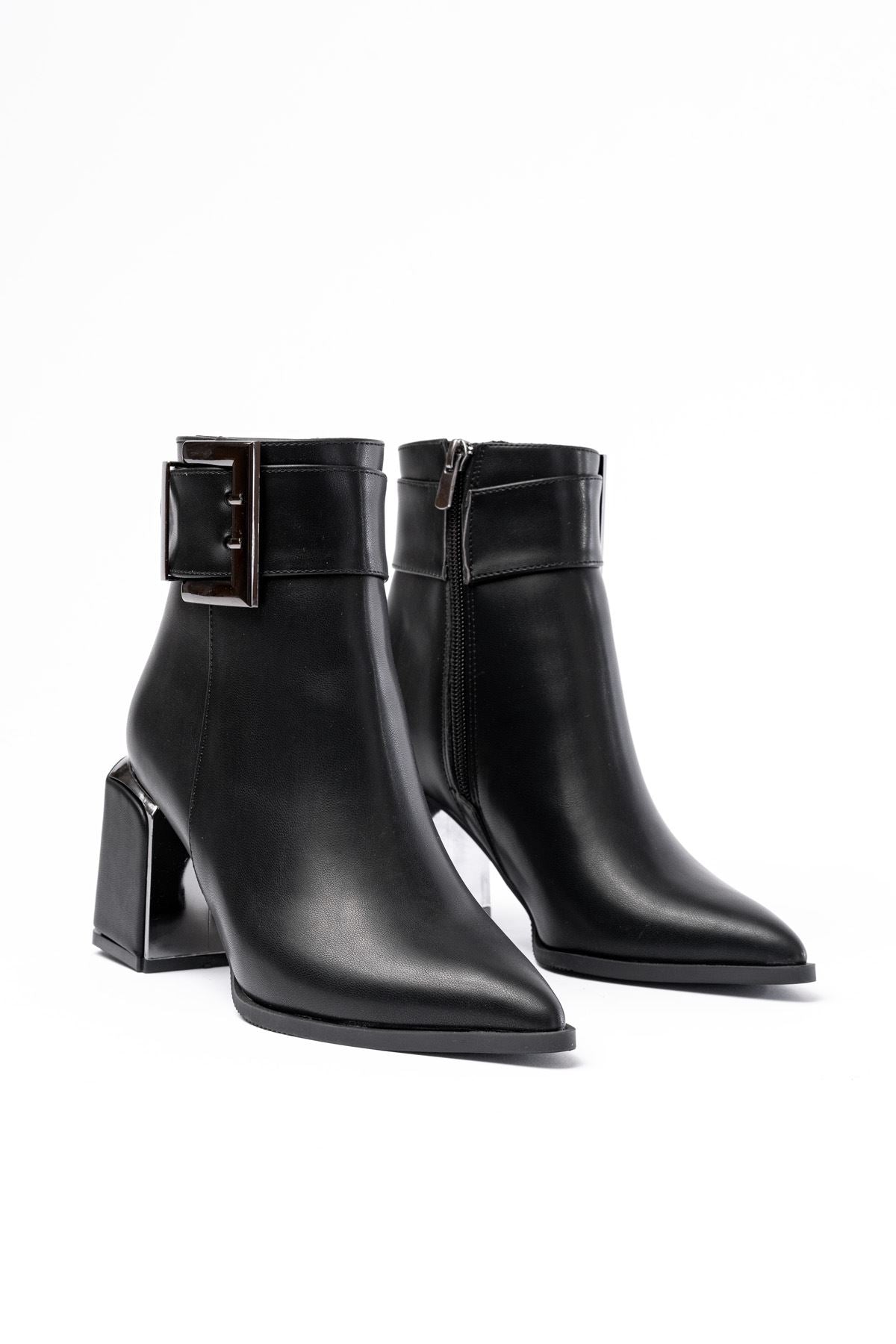 Ayakkabı Aşkı Siyah Toka Aksesuarlı Topuklu Fermuarlı Günlük Kadın Bot