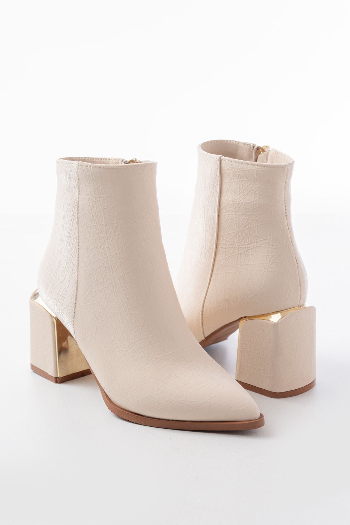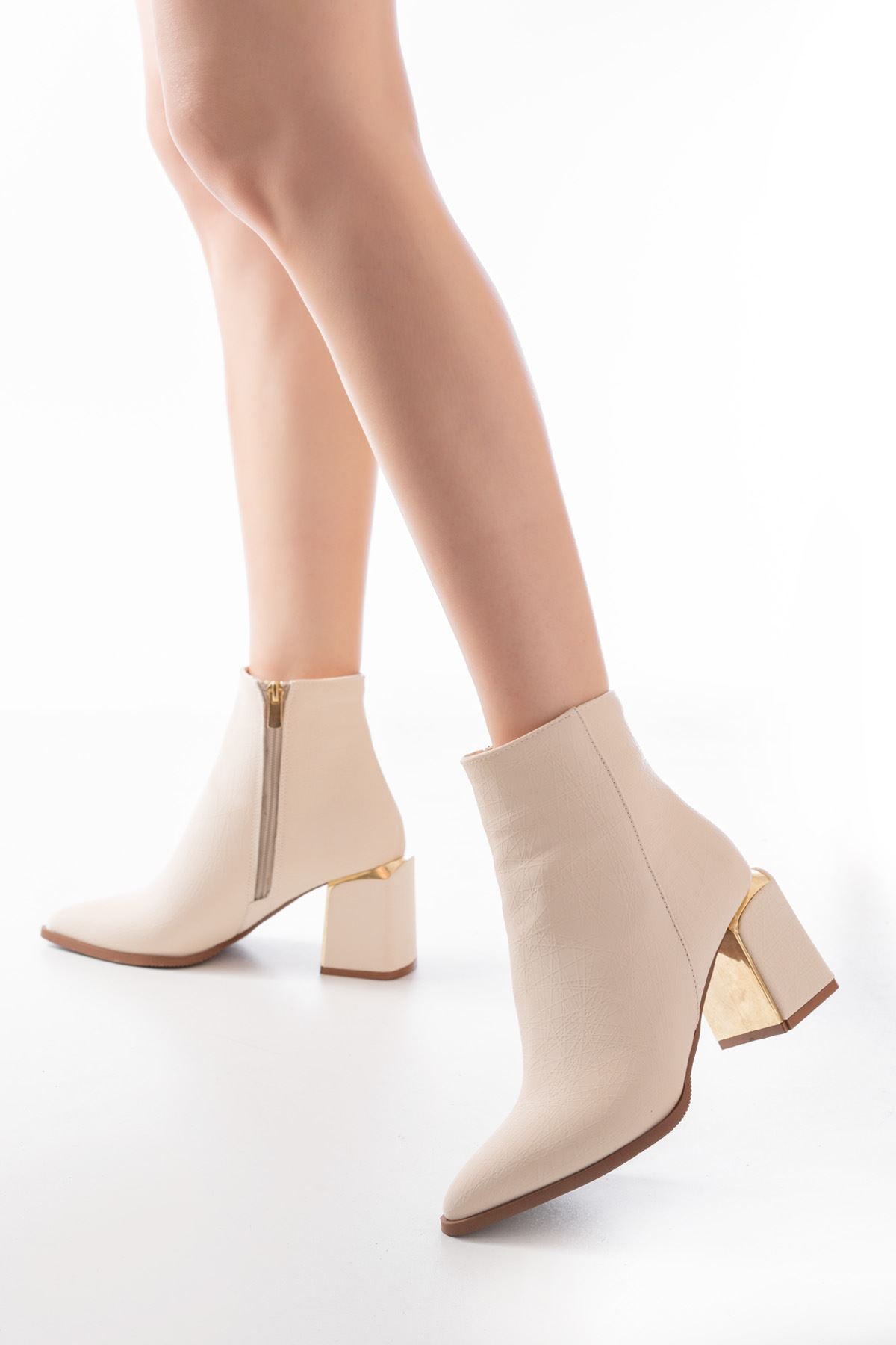 Ayakkabı Aşkı Bej Fermuarlı Topuklu Kadın Günlük Bot