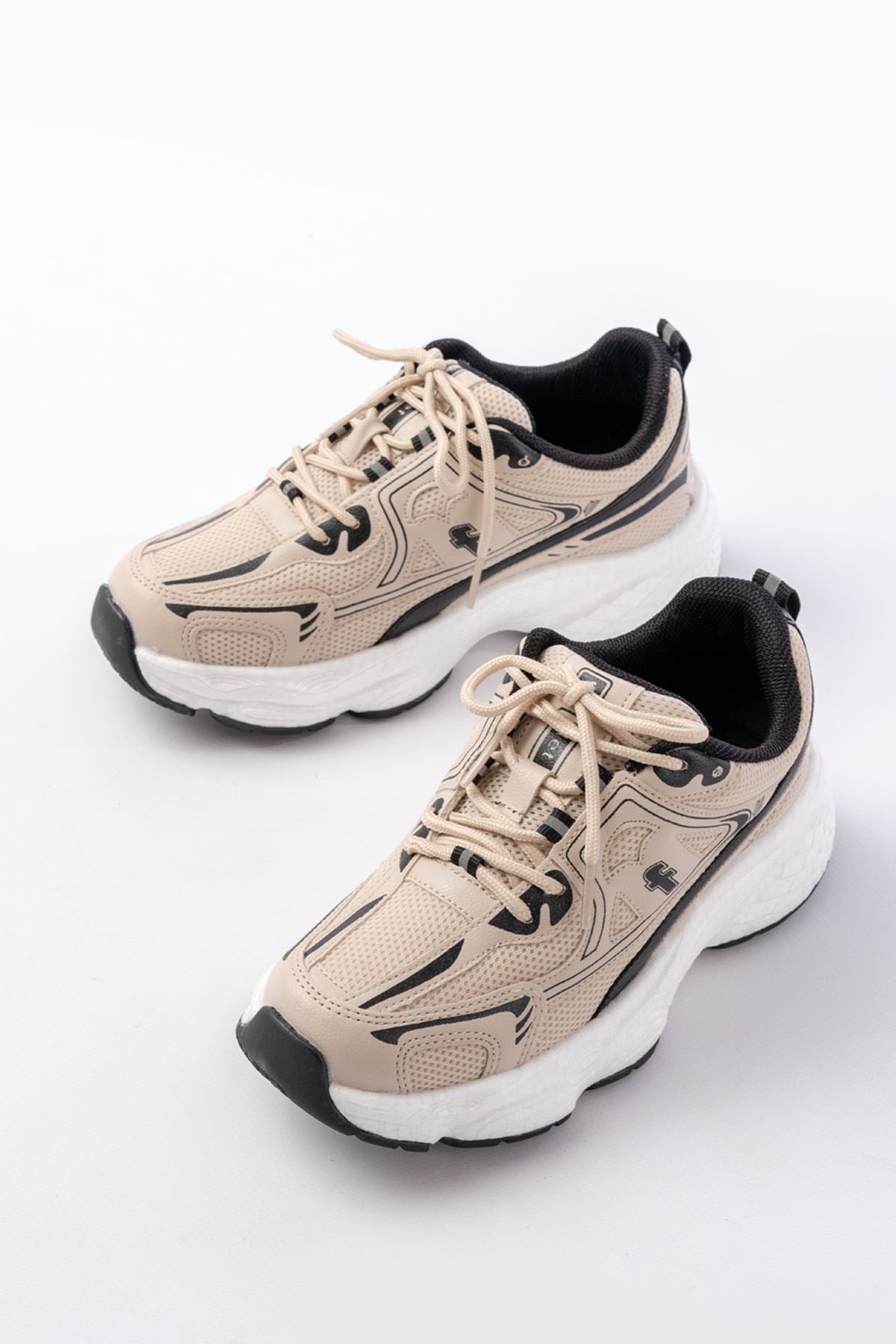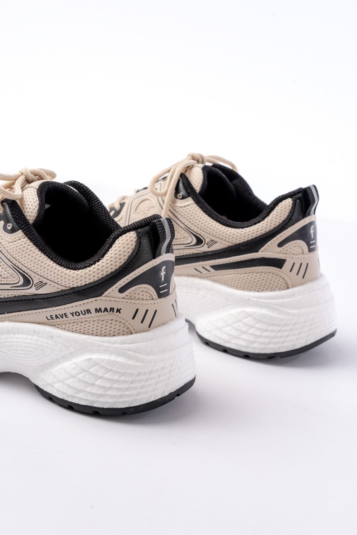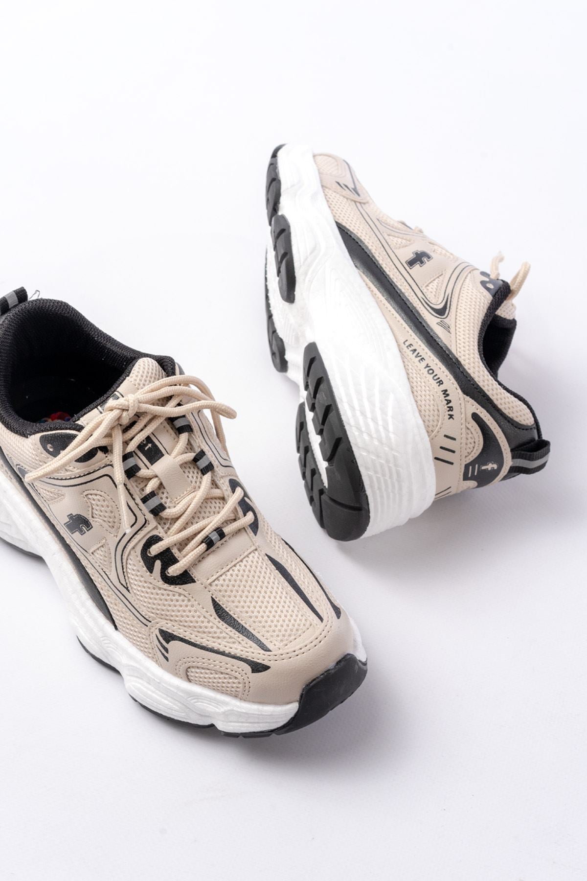 Ayakkabı Aşkı Bej Günlük Bağcıklı Siyah Desenli Yazlık Spor Ayakkabı
