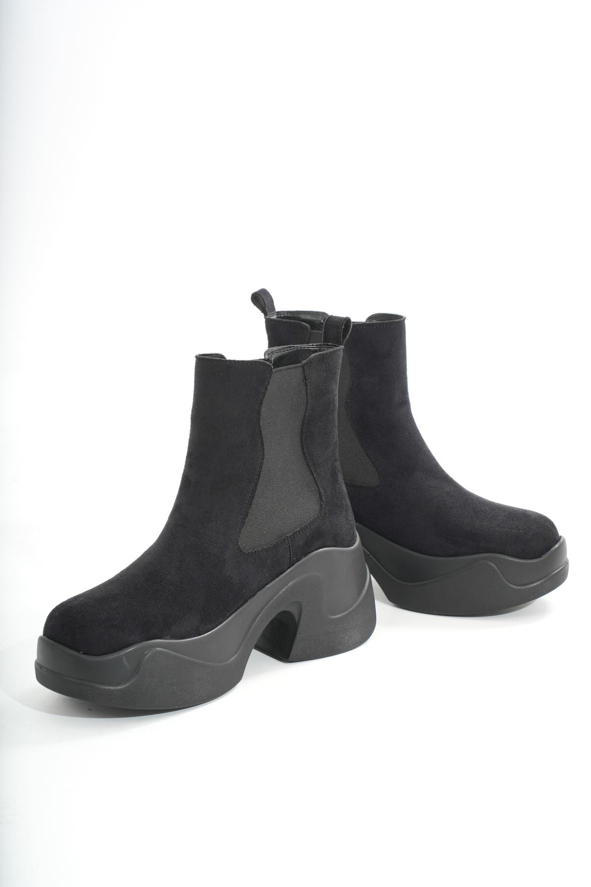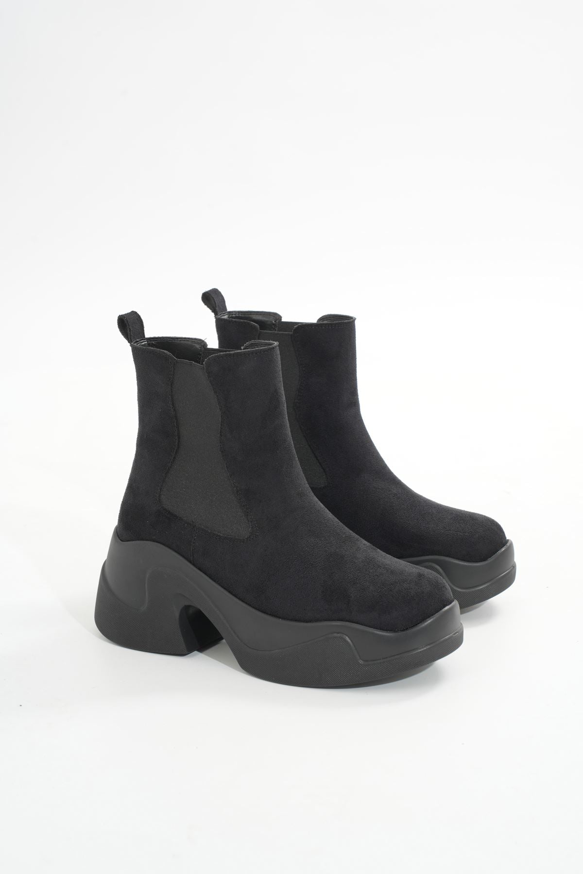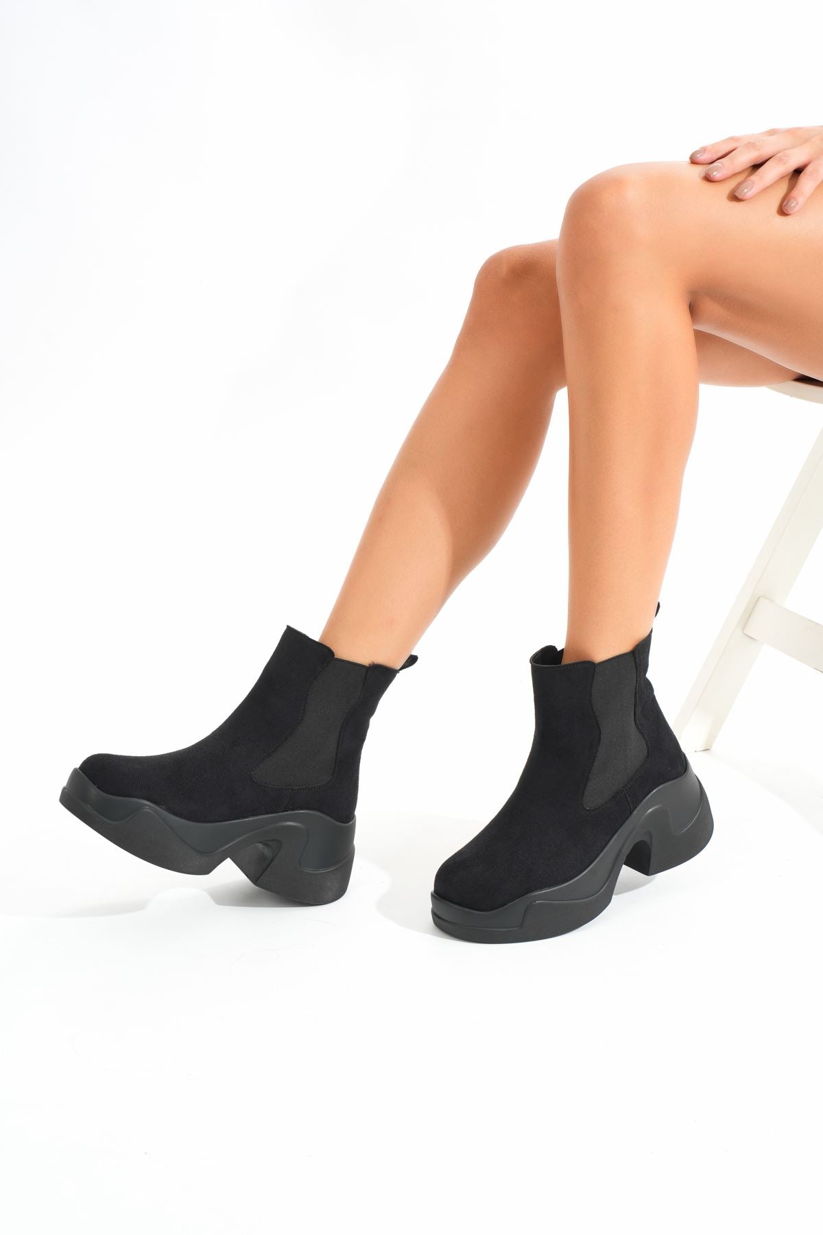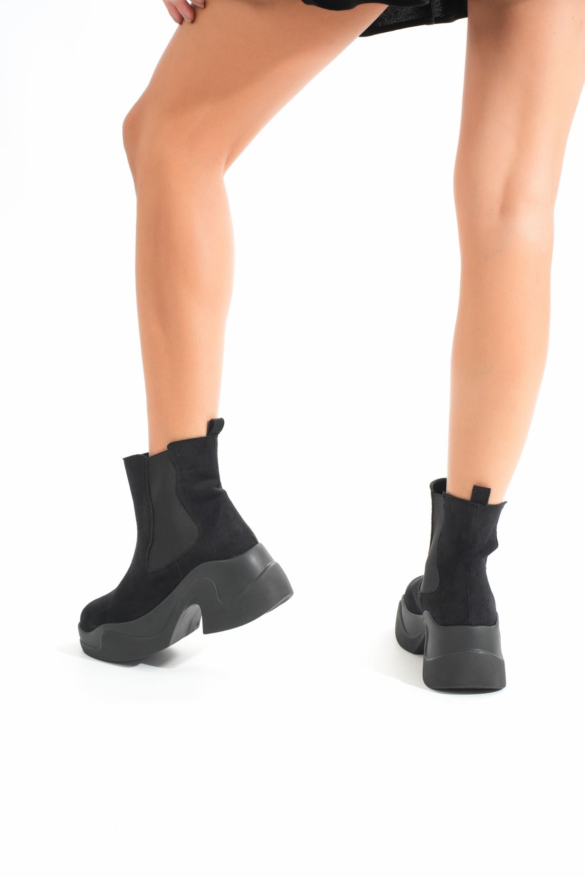 Ayakkabı Aşkı Siyah Süet Yüksek Tabanlı Lastikli Günlük Kadın Bot