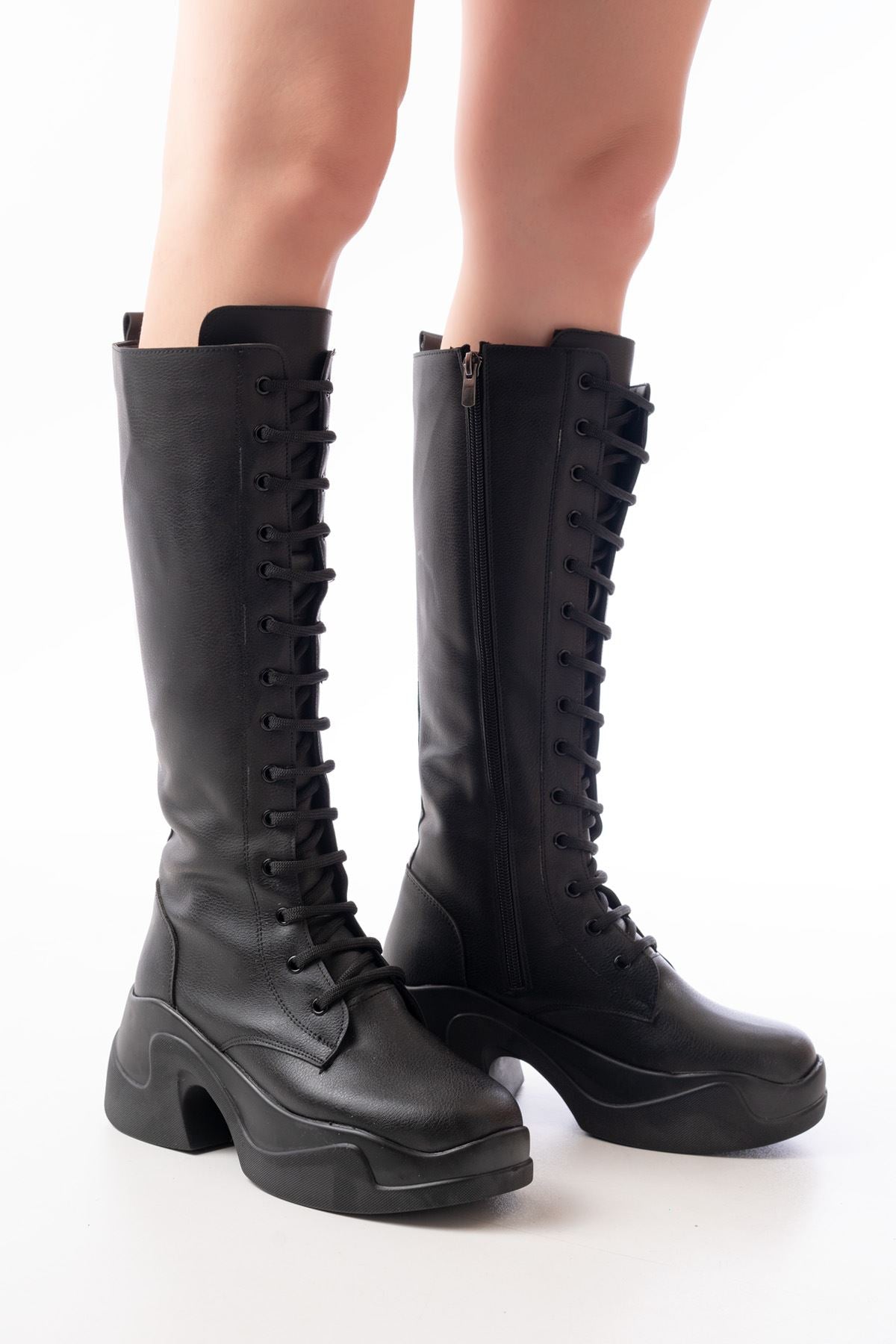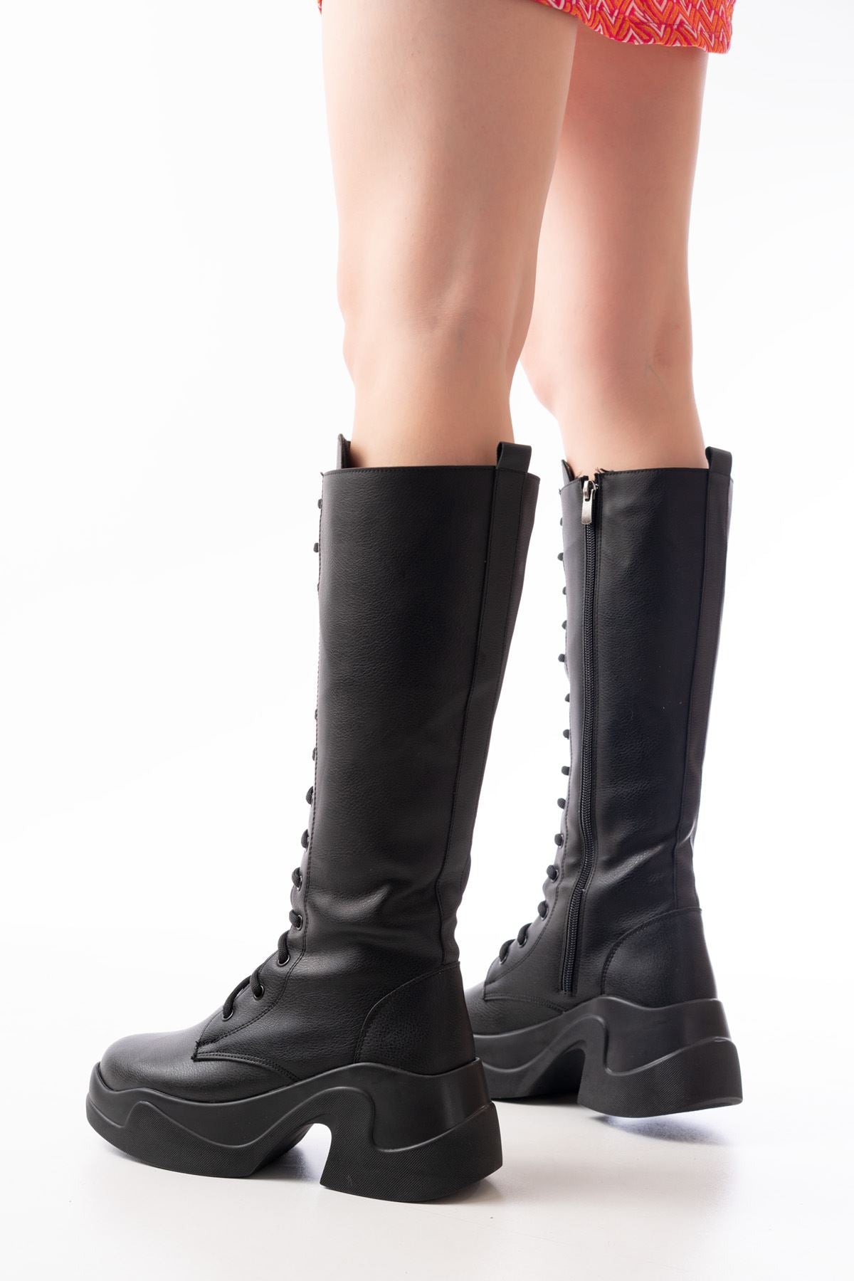 Ayakkabı Aşkı Siyah Yüksek Tabanlı Bağcıklı Fermuarlı Günlük Kadın Çizme