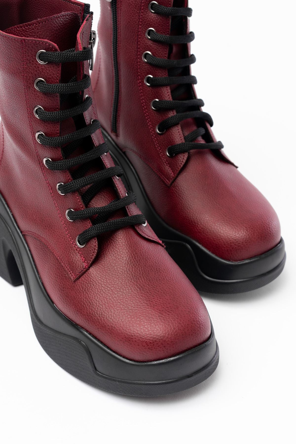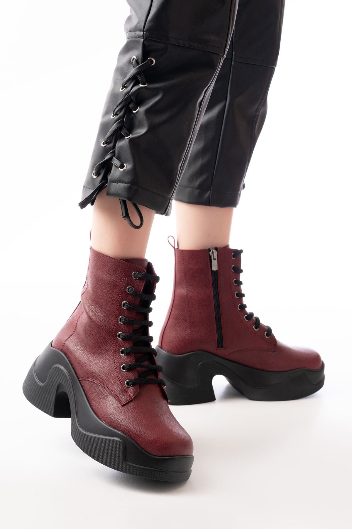 Ayakkabı Aşkı Bordo Yüksek Tabanlı Bağcıklı Fermuarlı Günlük Kadın Bot