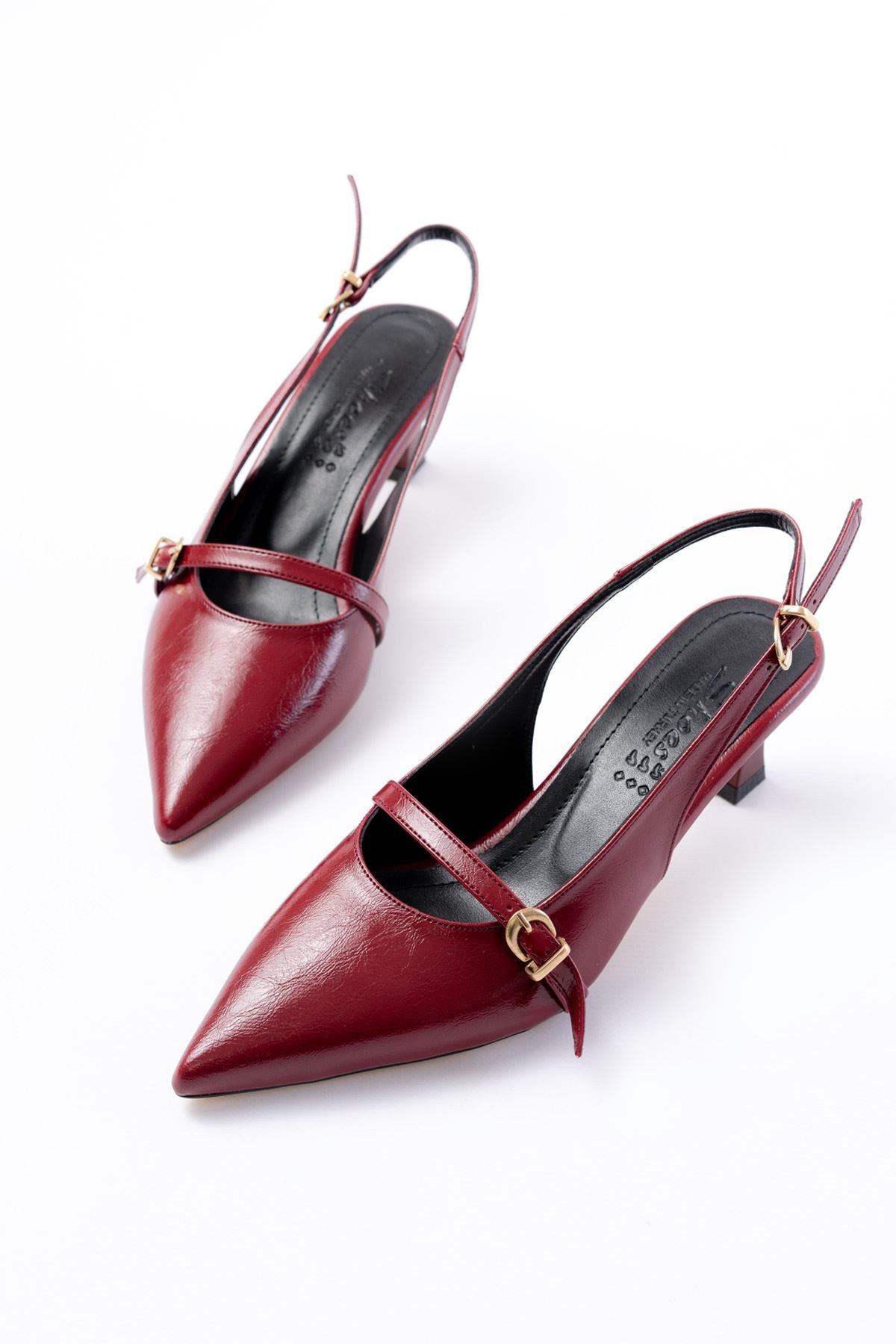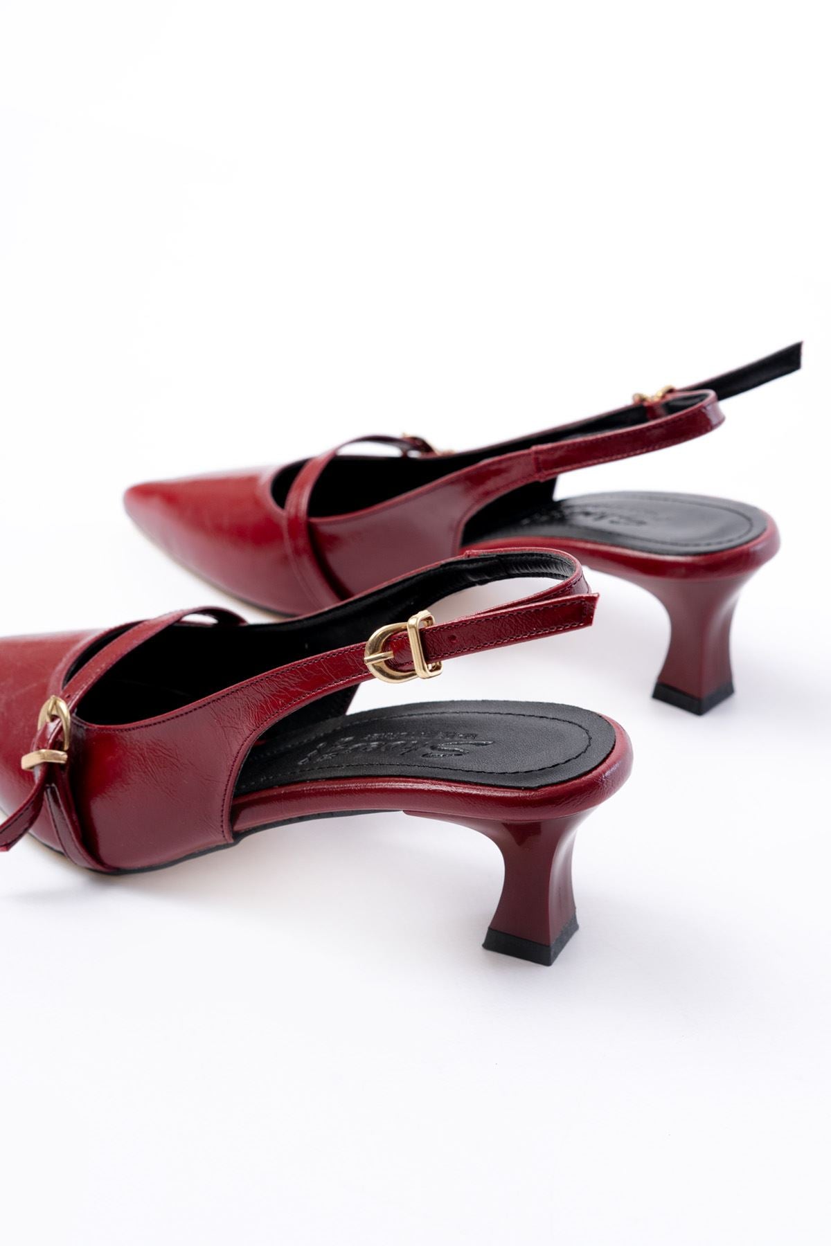 Ayakkabı Aşkı Bordo Rugan Baret Tokalı Arkası Açık Günlük Kadın Sandalet