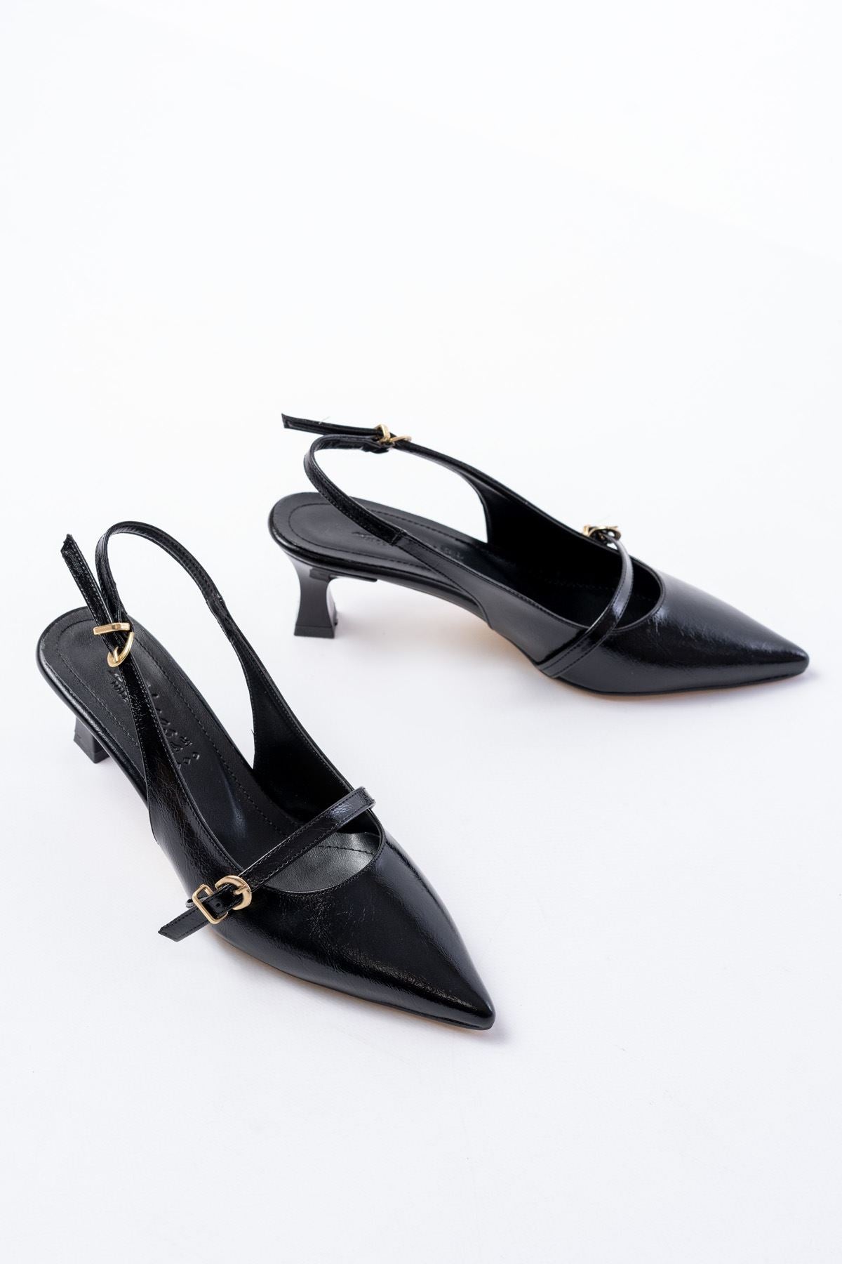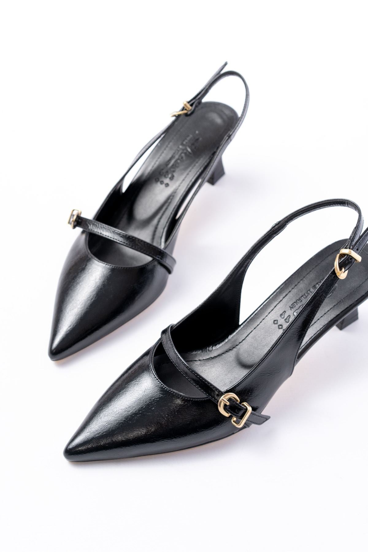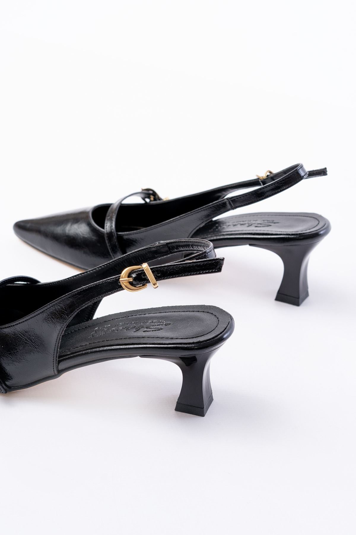 Ayakkabı Aşkı Siyah Rugan Baret Tokalı Arkası Açık Günlük Kadın Sandalet