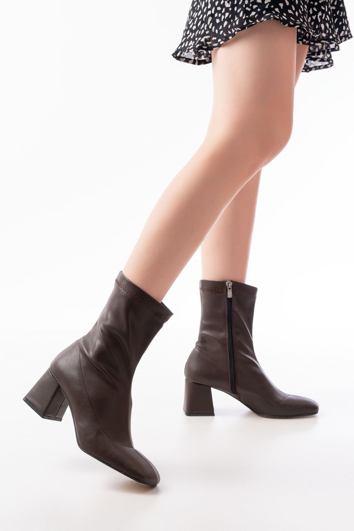 Ayakkabı Aşkı Kahverengi Topuklu Fermuarlı Kadın Bot