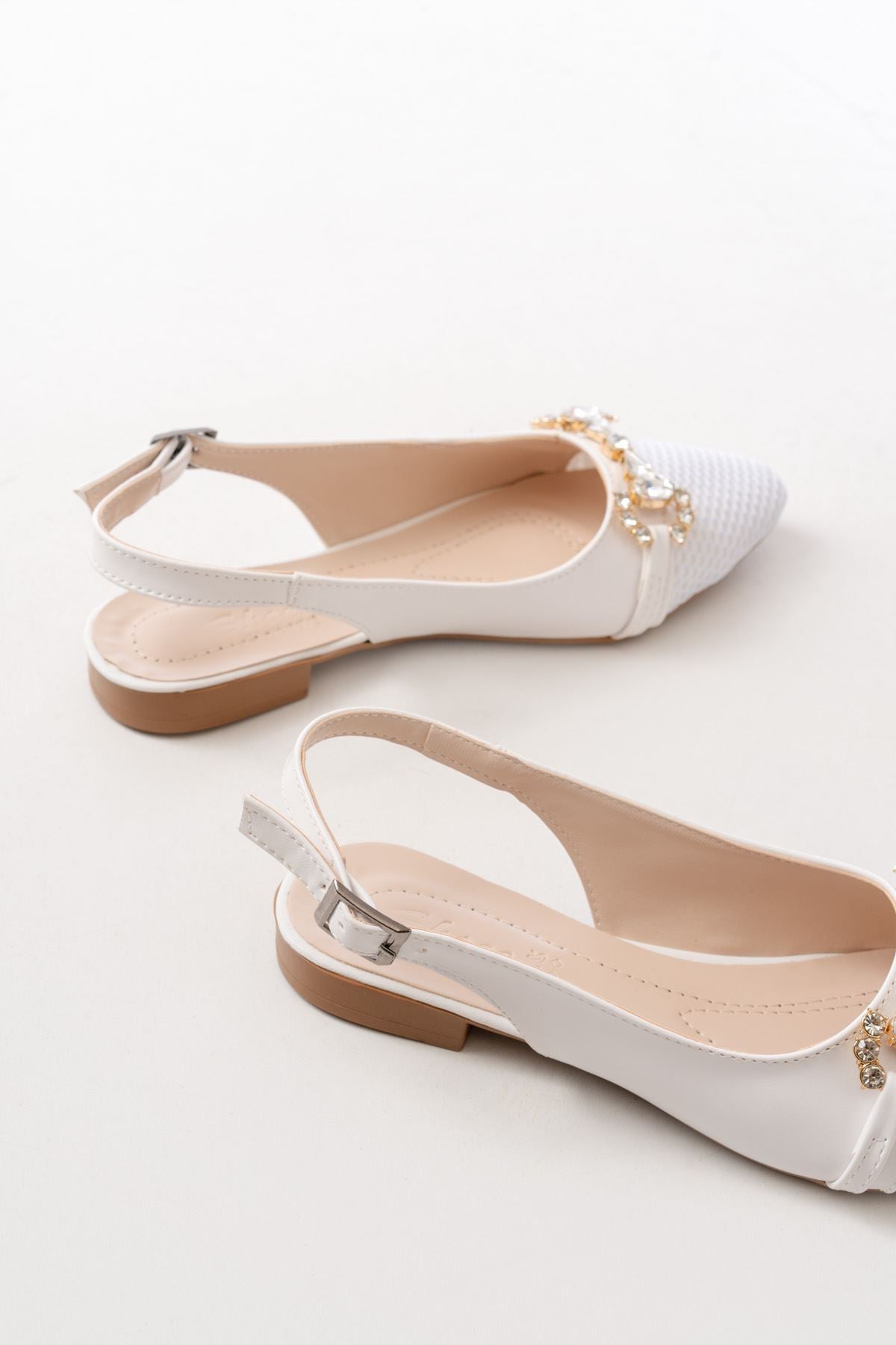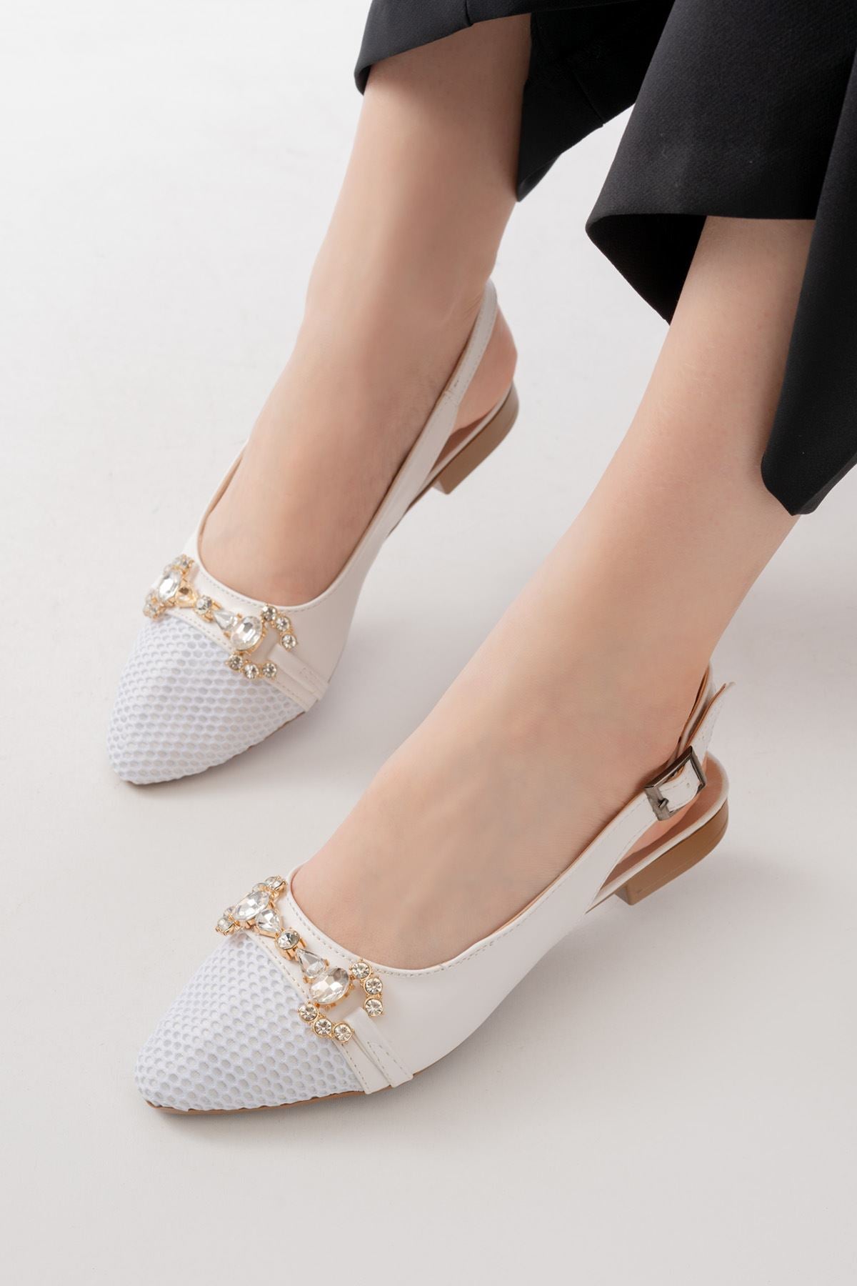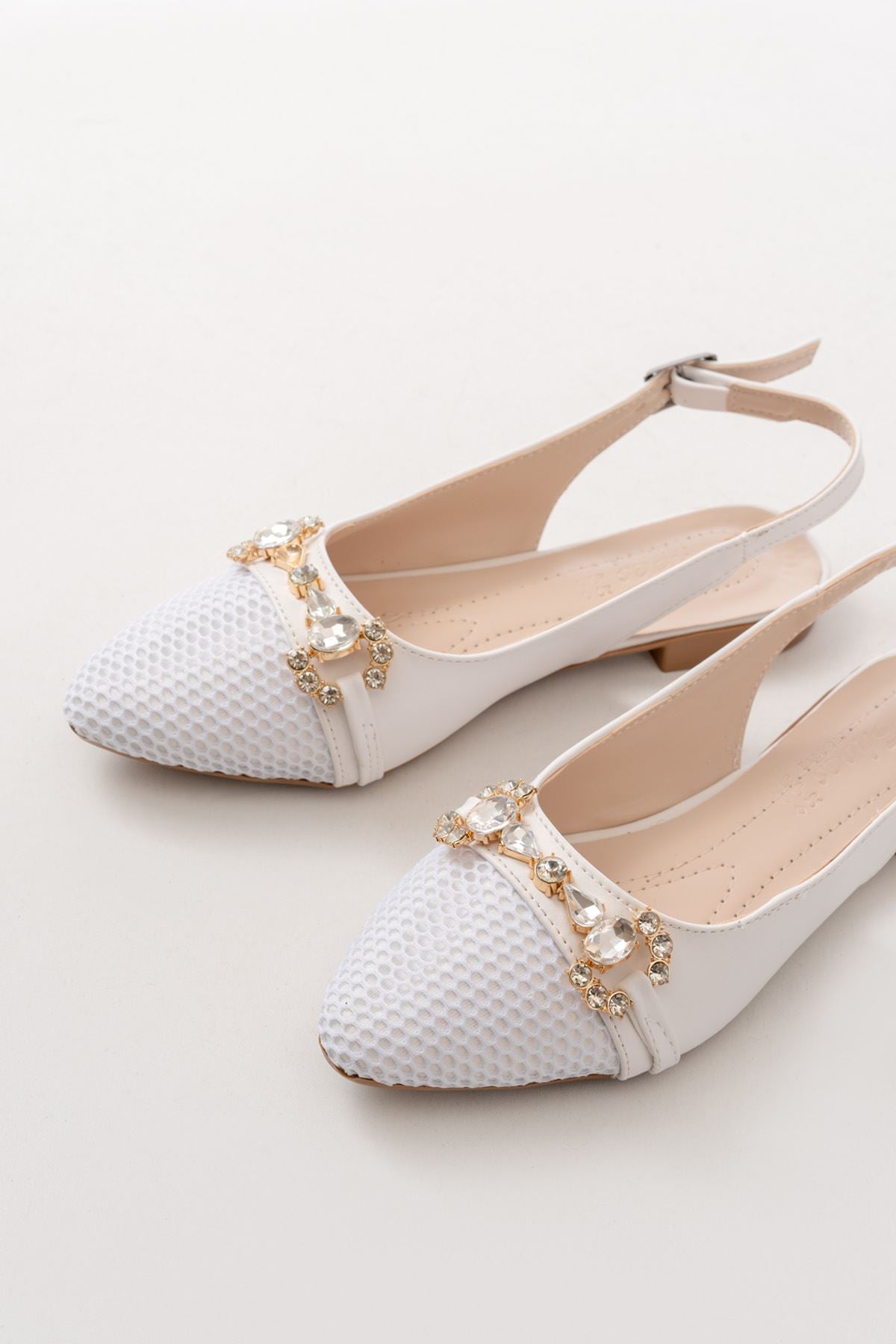 Ayakkabı Aşkı İNF-12 Beyaz Günlük Fileli Taş Aksesuarlı Kadın Babet