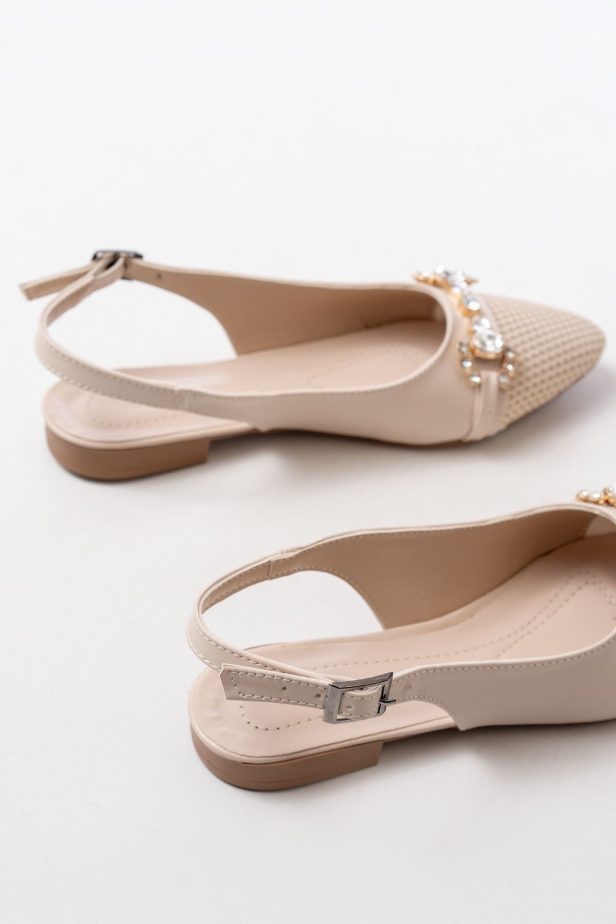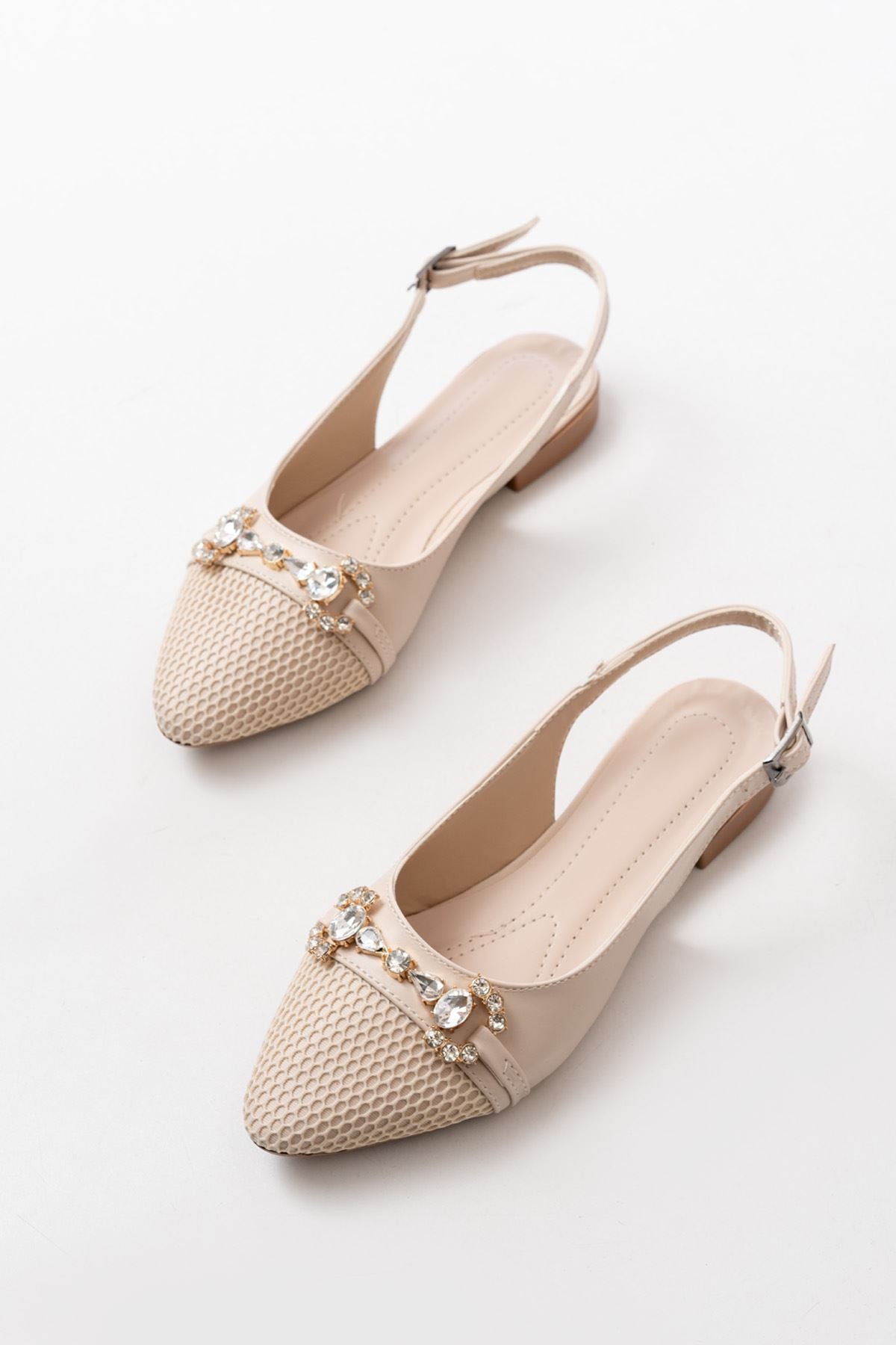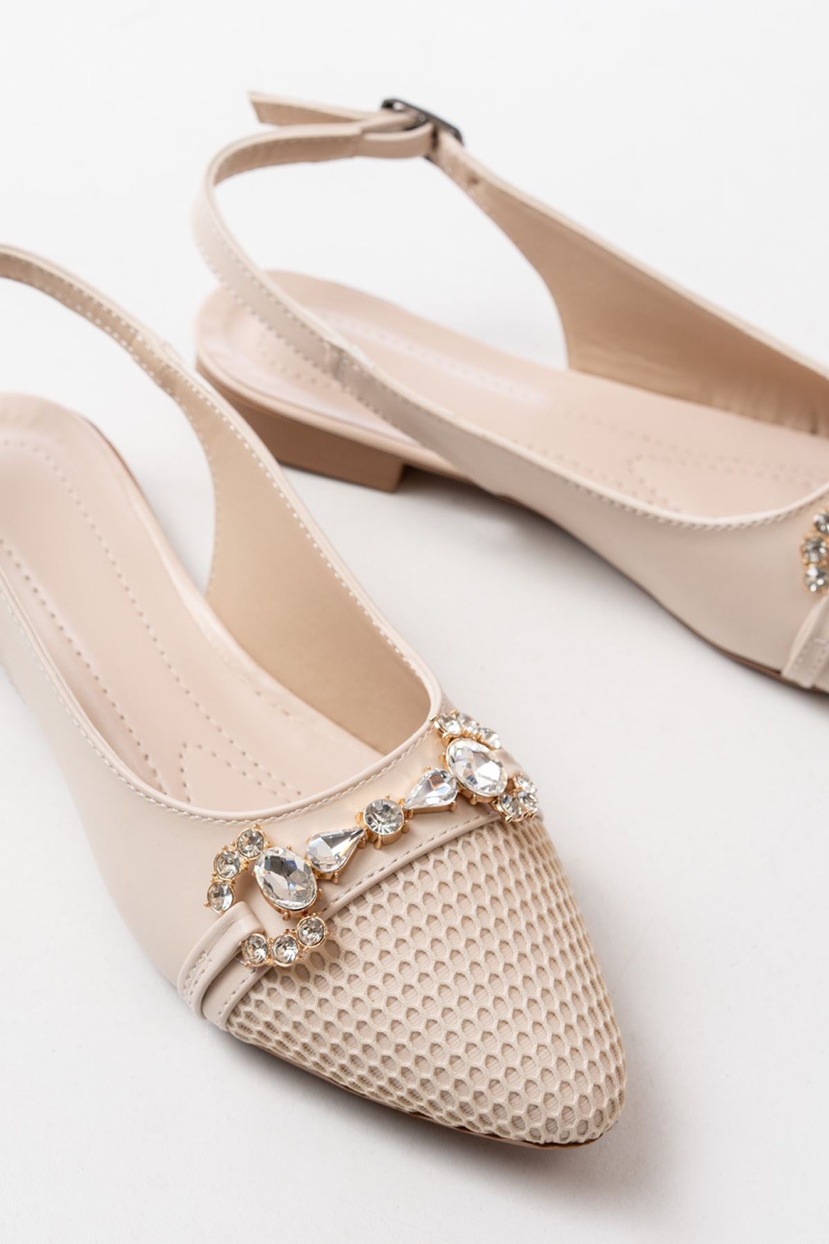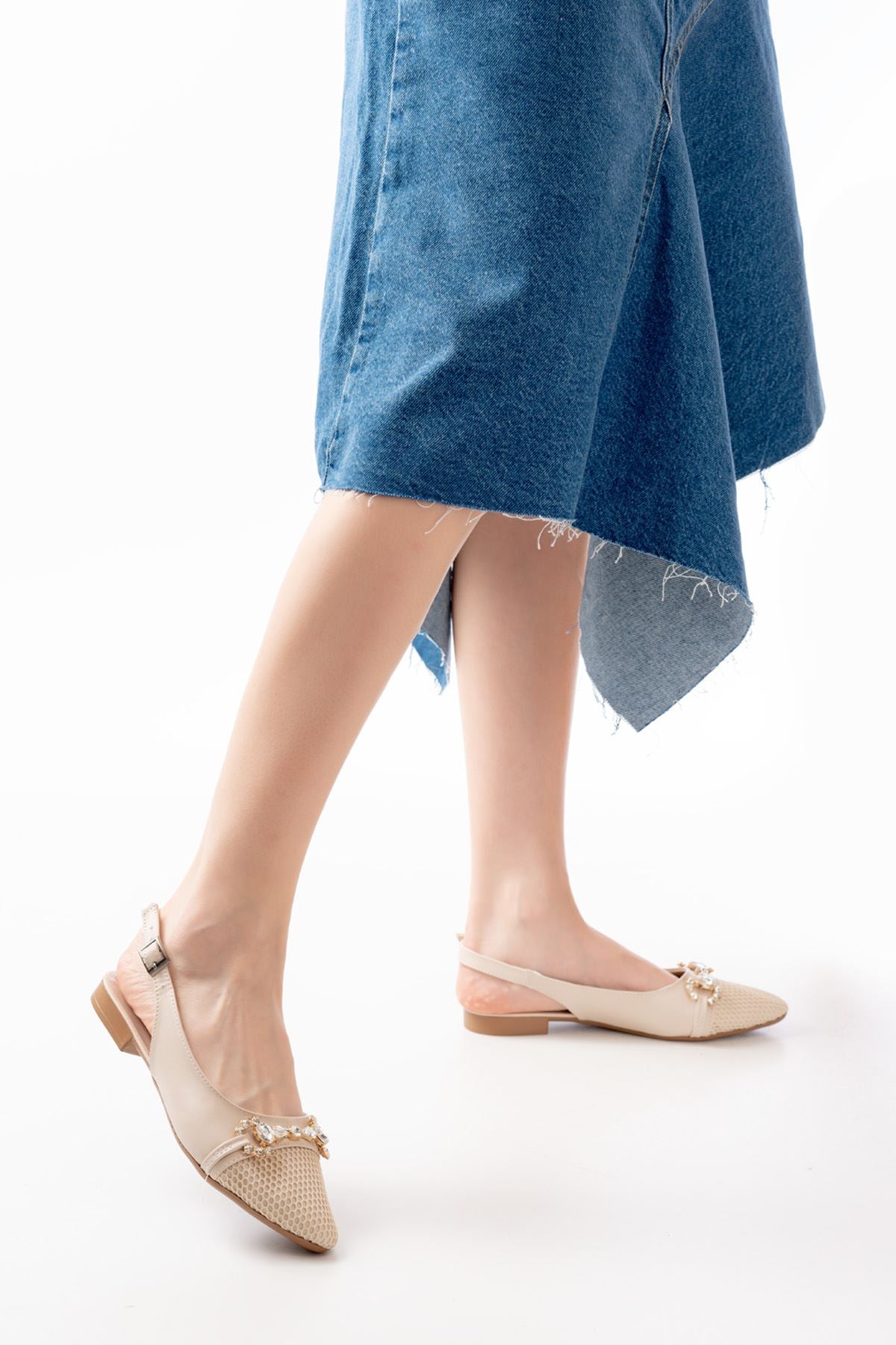 Ayakkabı Aşkı İNF-12 Ten Günlük Fileli Taş Aksesuarlı Kadın Babet