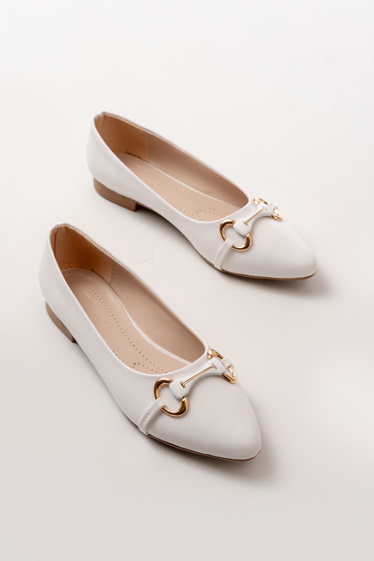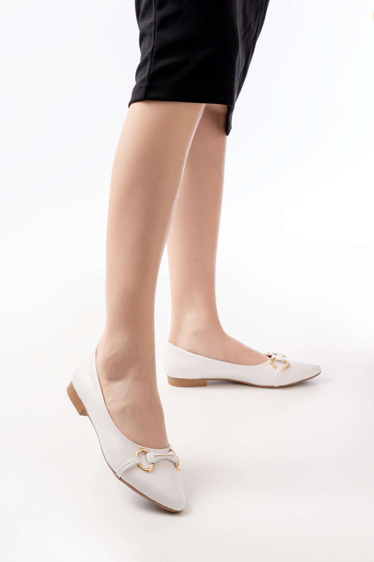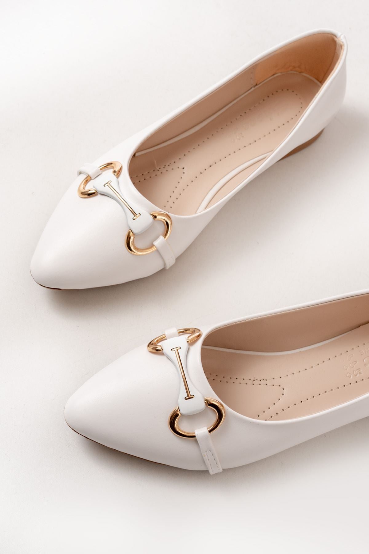 Ayakkabı Aşkı İNF-129 Beyaz Günlük Taş Aksesuarlı Babet