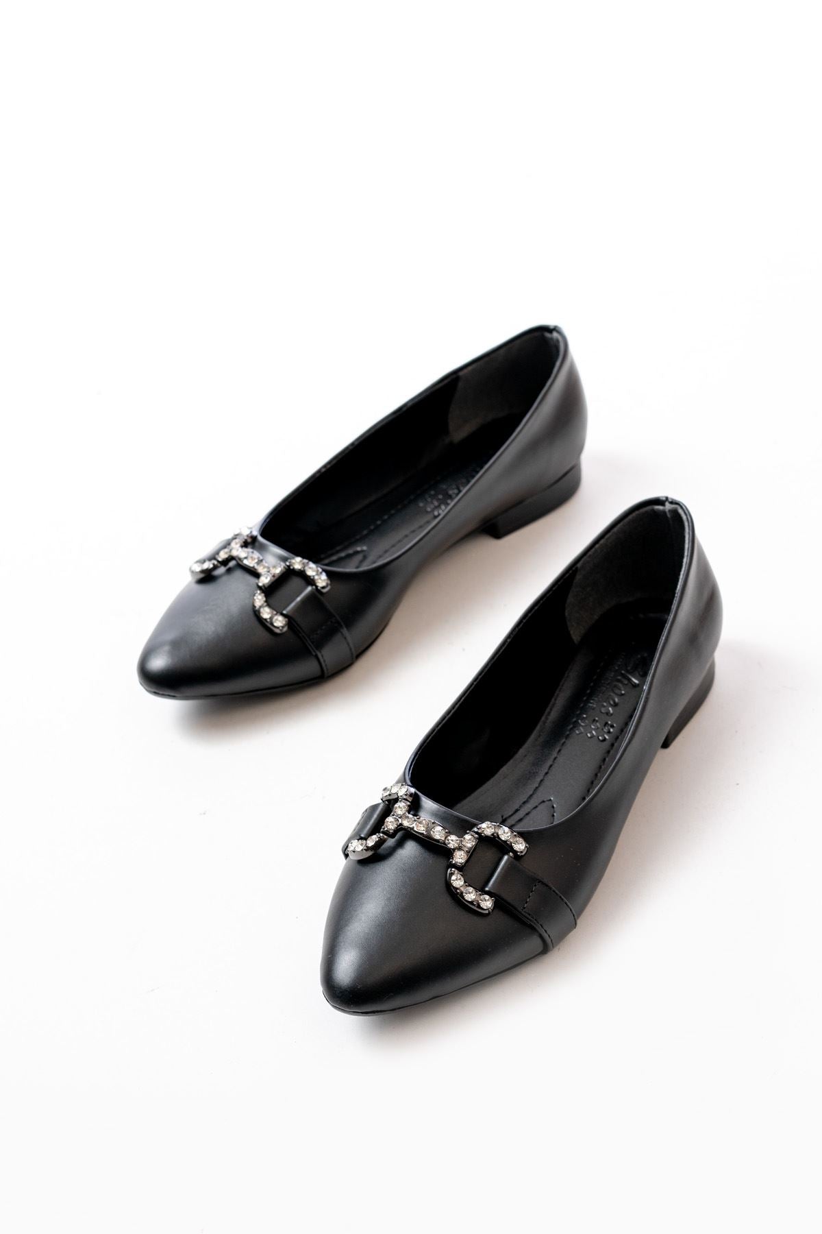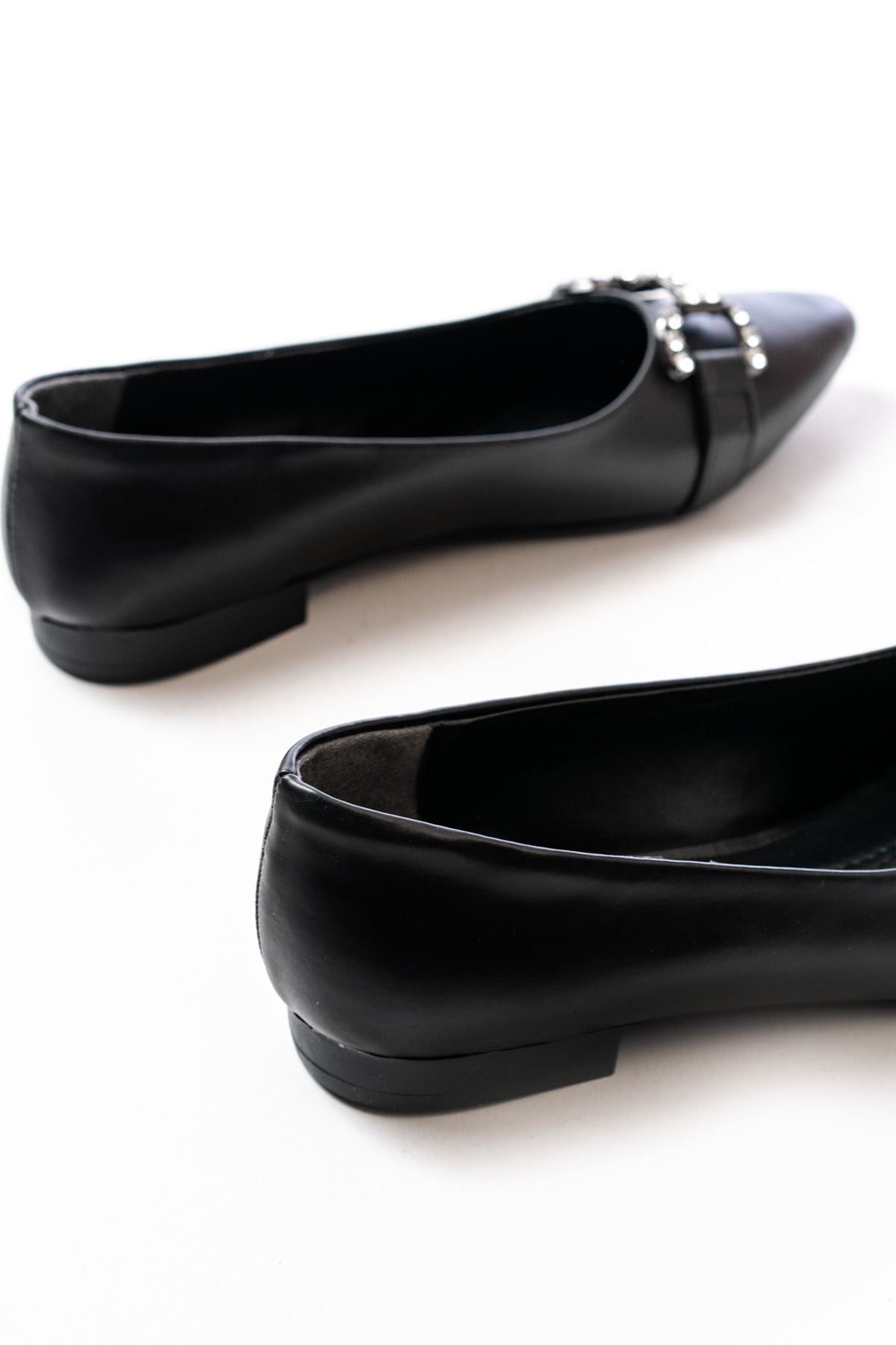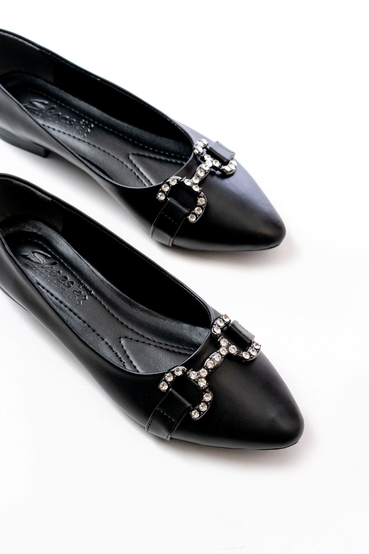 Ayakkabı Aşkı İNF-133 Siyah Taşlı Tokalı Günlük Kadın Babet