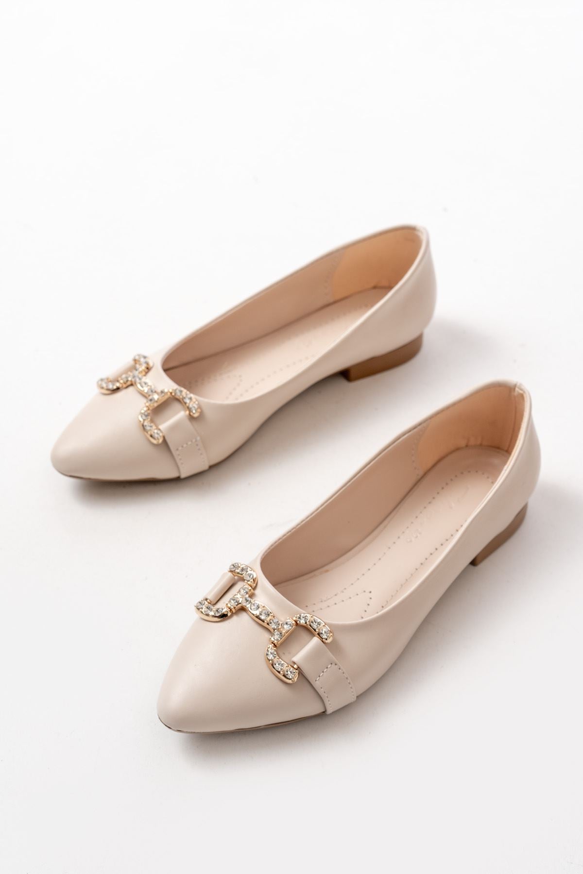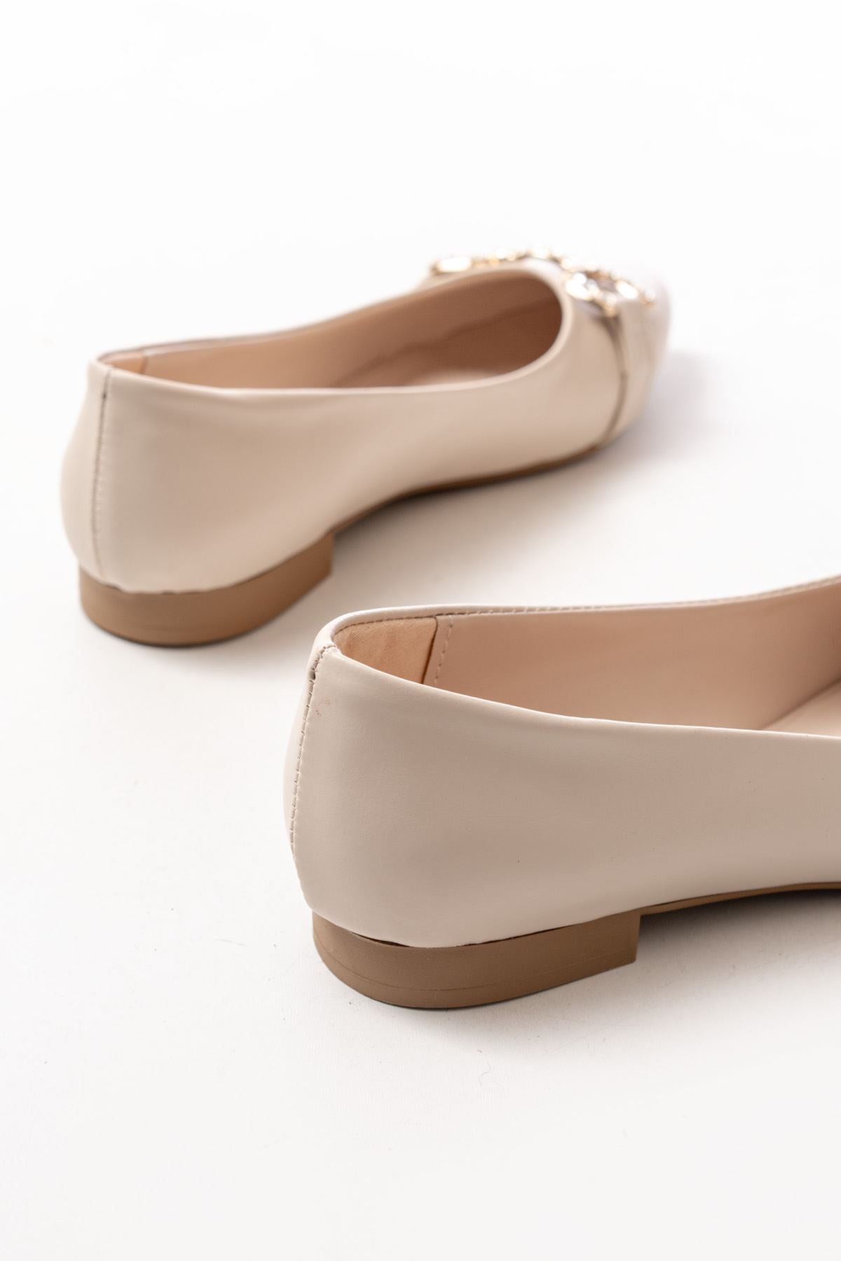 Ayakkabı Aşkı İNF-133 Ten Taşlı Tokalı Günlük Kadın Babet