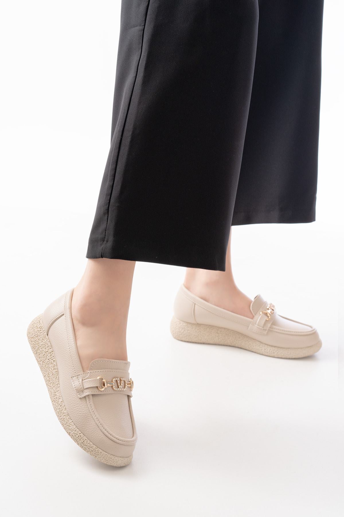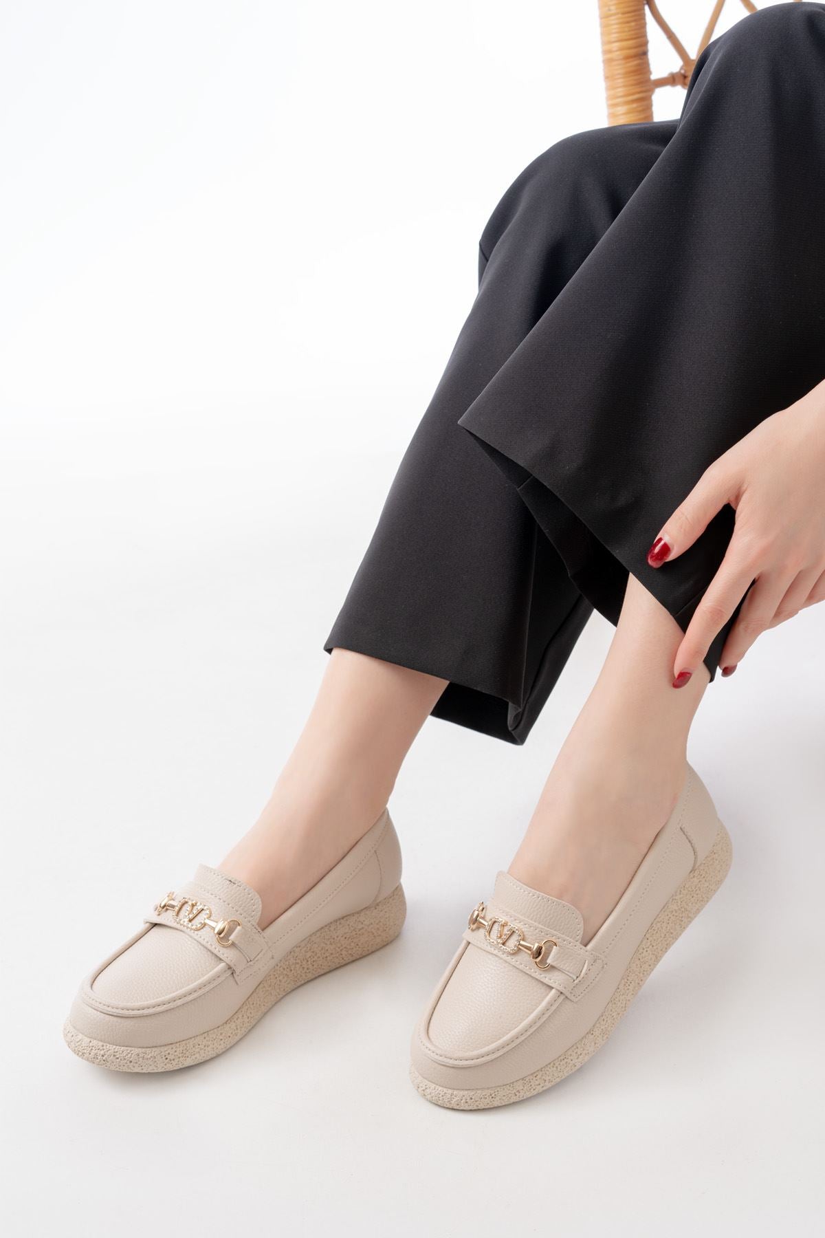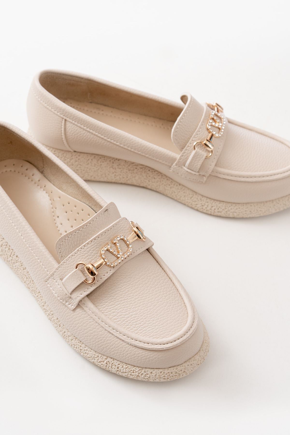 Ayakkabı Aşkı İNF-15-01 Bej Taş Aksesuarlı Günlük Kadın Ayakkabı