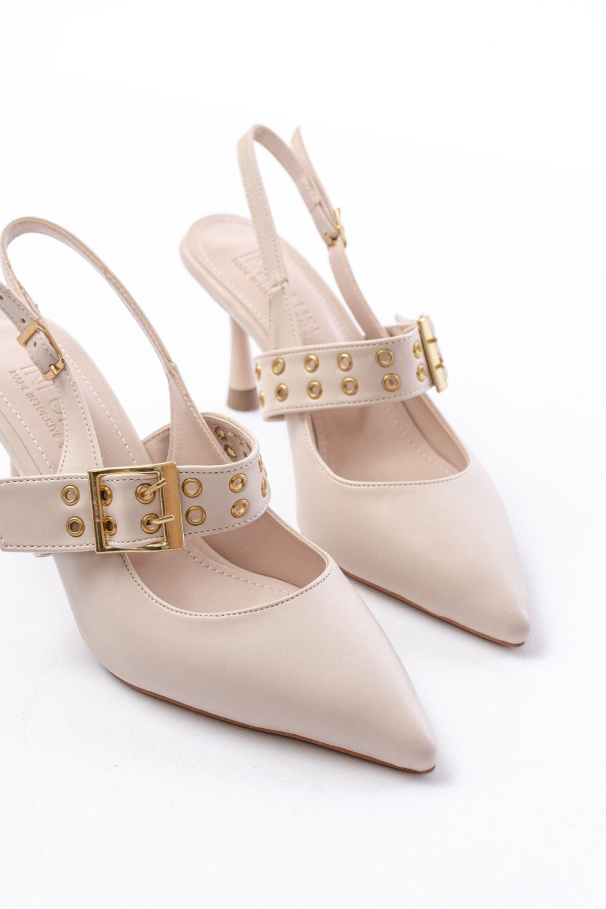 Ayakkabı Aşkı İNF-26 Bej Günlük Arkası Açık Baret Tokalı Topuklu Bayan Ayakkabı