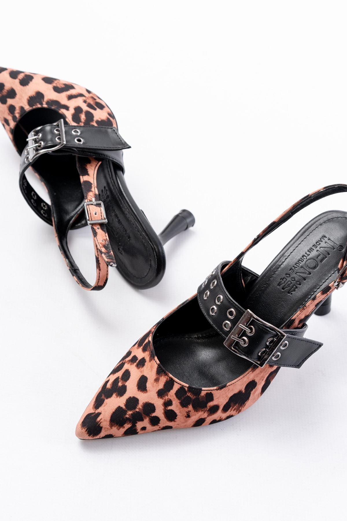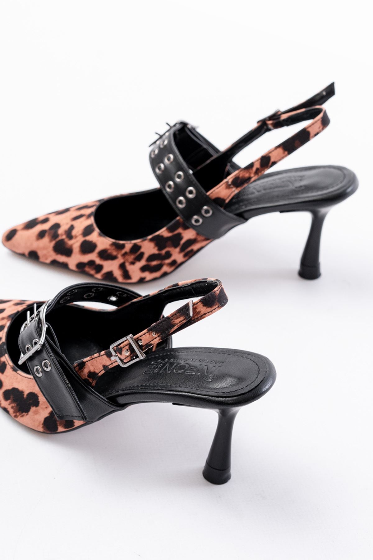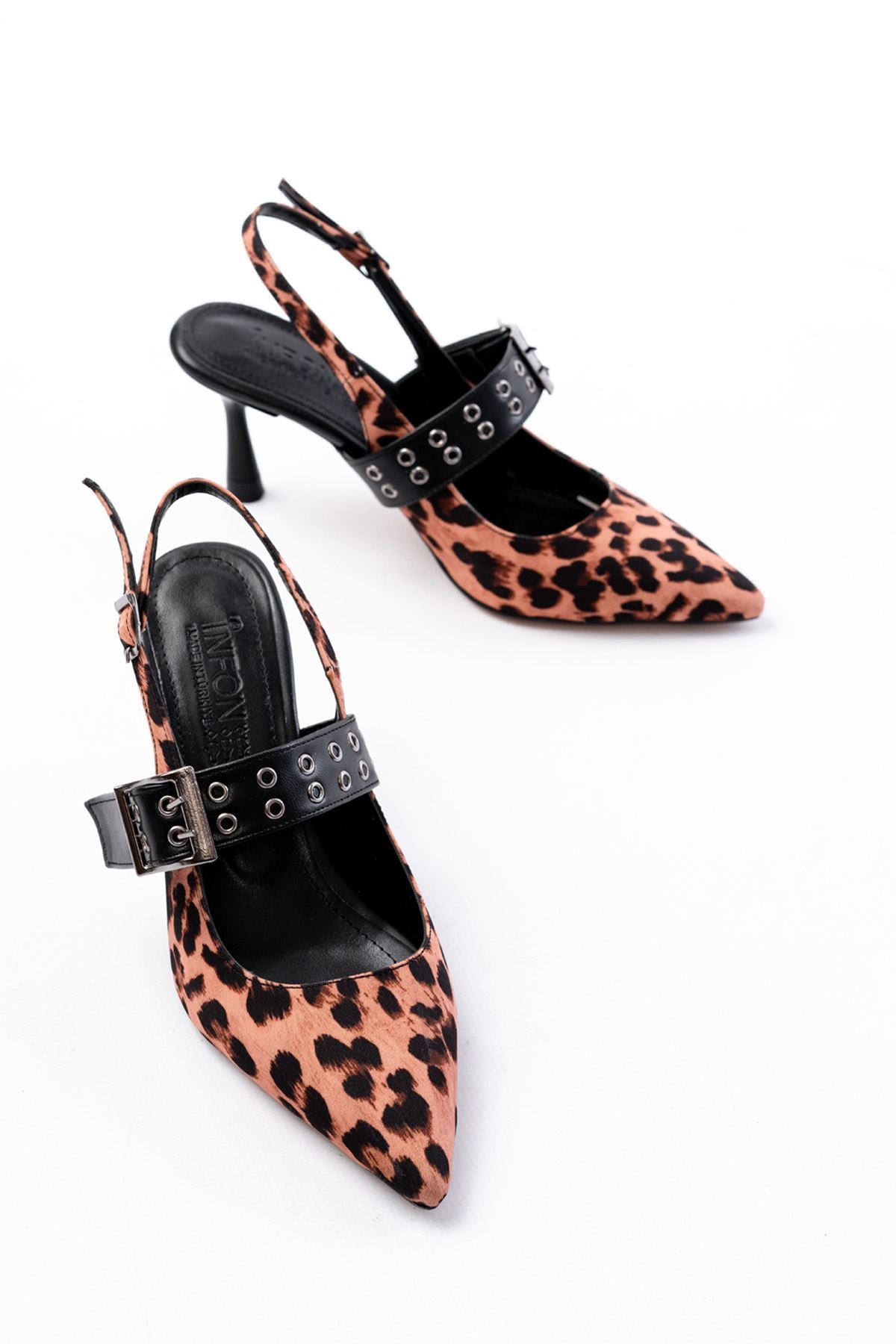 Ayakkabı Aşkı İNF-26 Siyah Leopar Günlük Arkası Açık Baret Tokalı Topuklu Bayan Ayakkabı