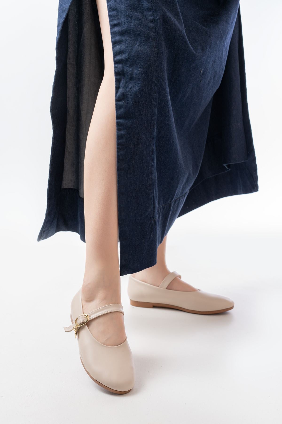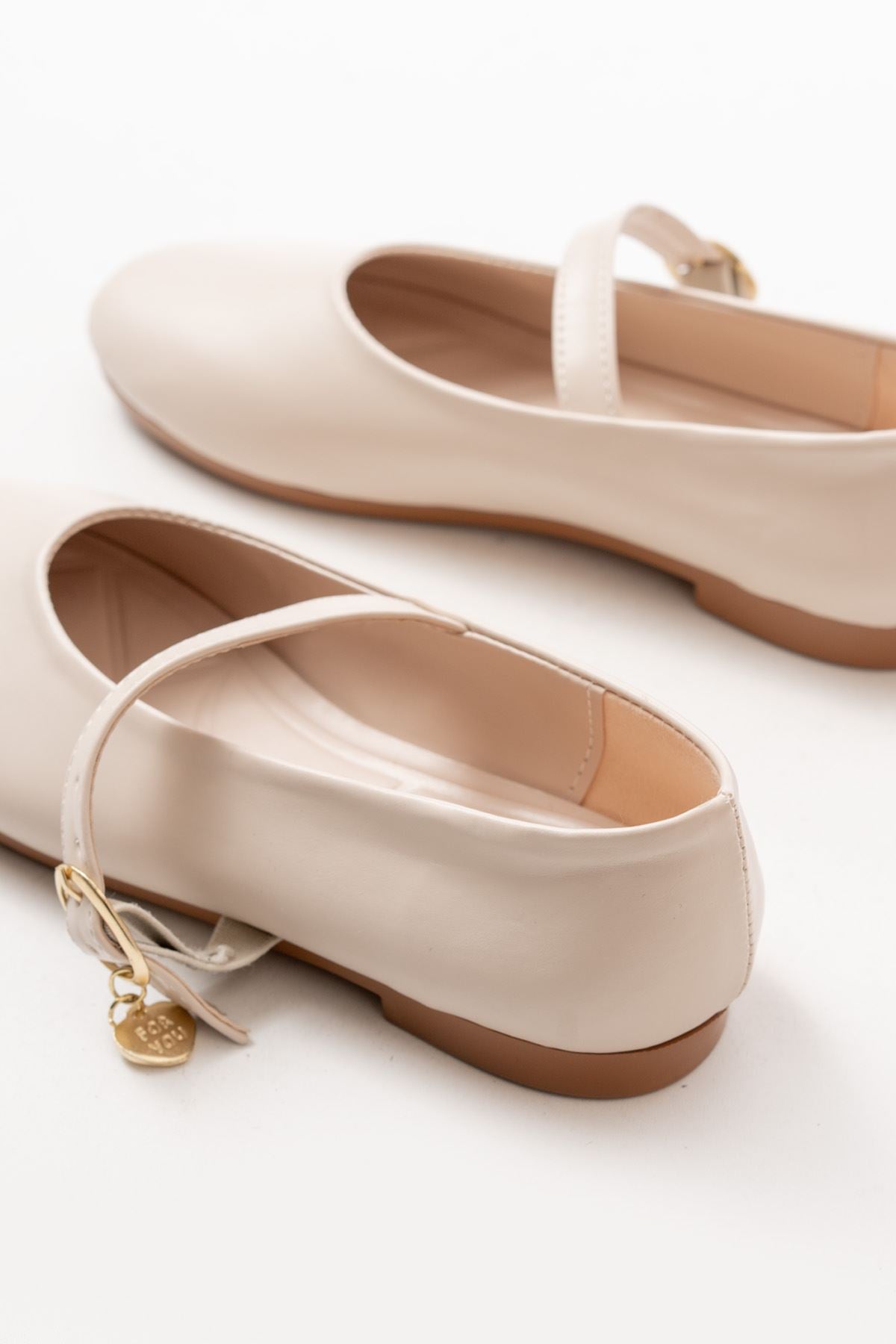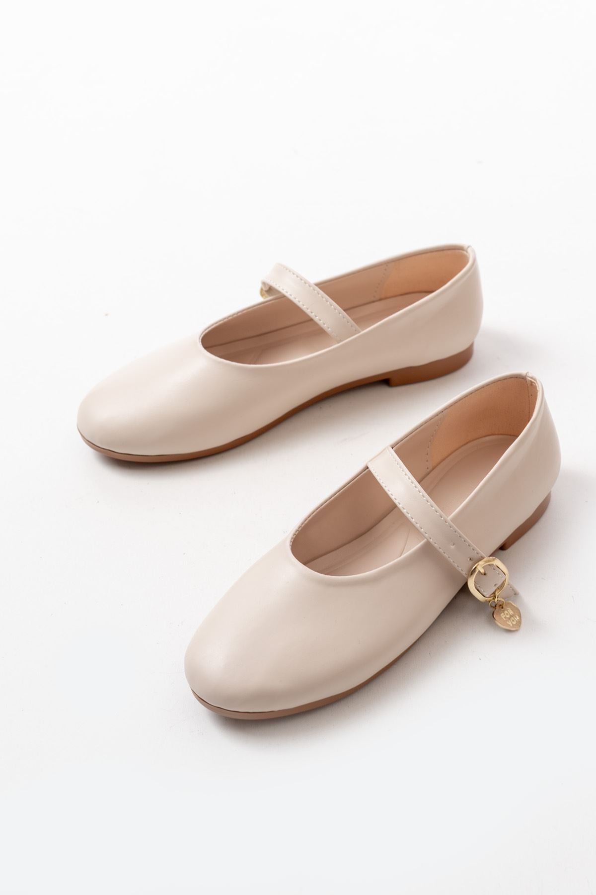 Ayakkabı Aşkı İNF-324 Bej Baretli Tokalı Günlük Kadın Babet