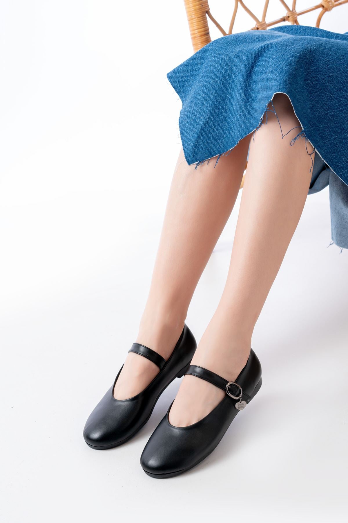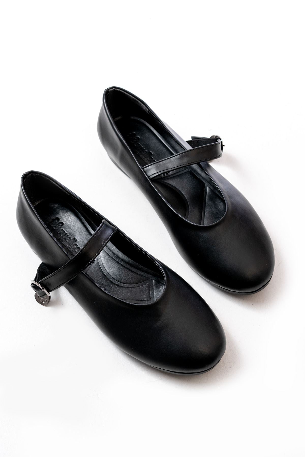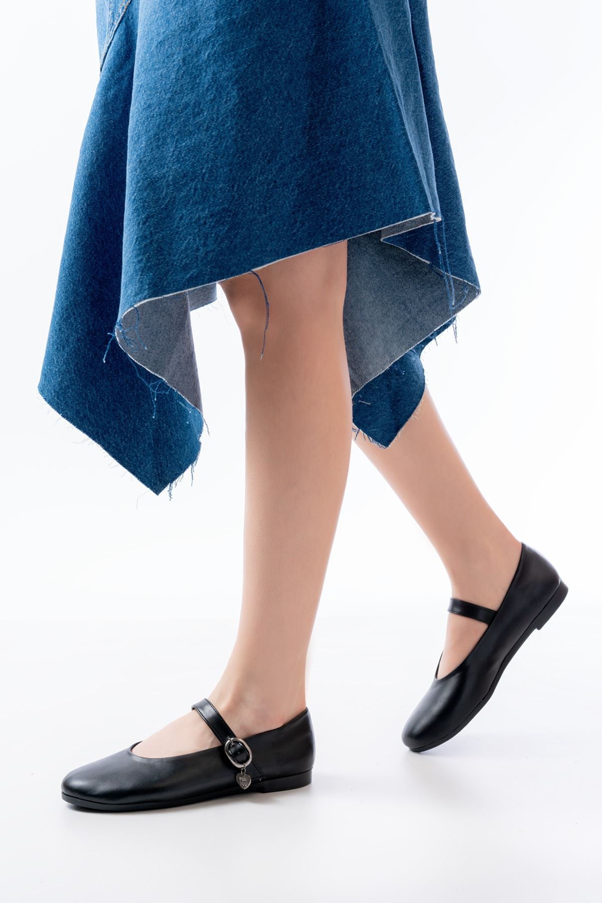 Ayakkabı Aşkı İNF-324 Siyah Baretli Tokalı Günlük Kadın Babet
