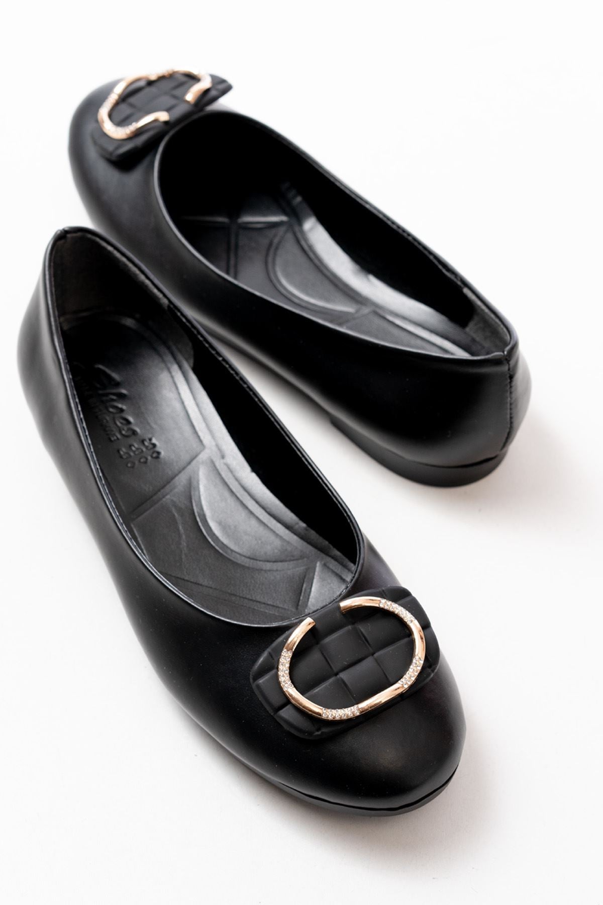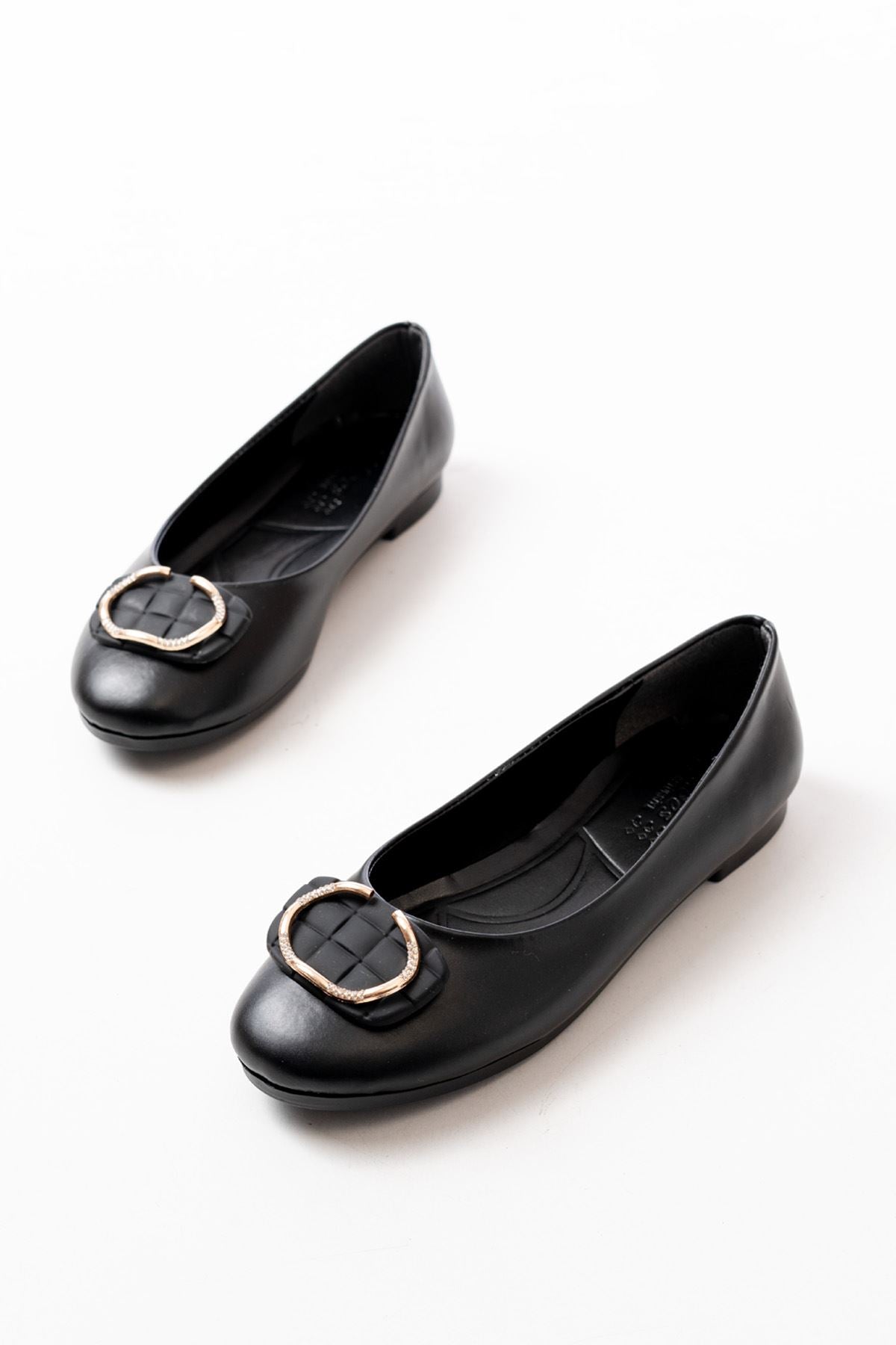 Ayakkabı Aşkı İNF-325 Siyah Tokalı Aksesuarlı Günlük Kadın Babet