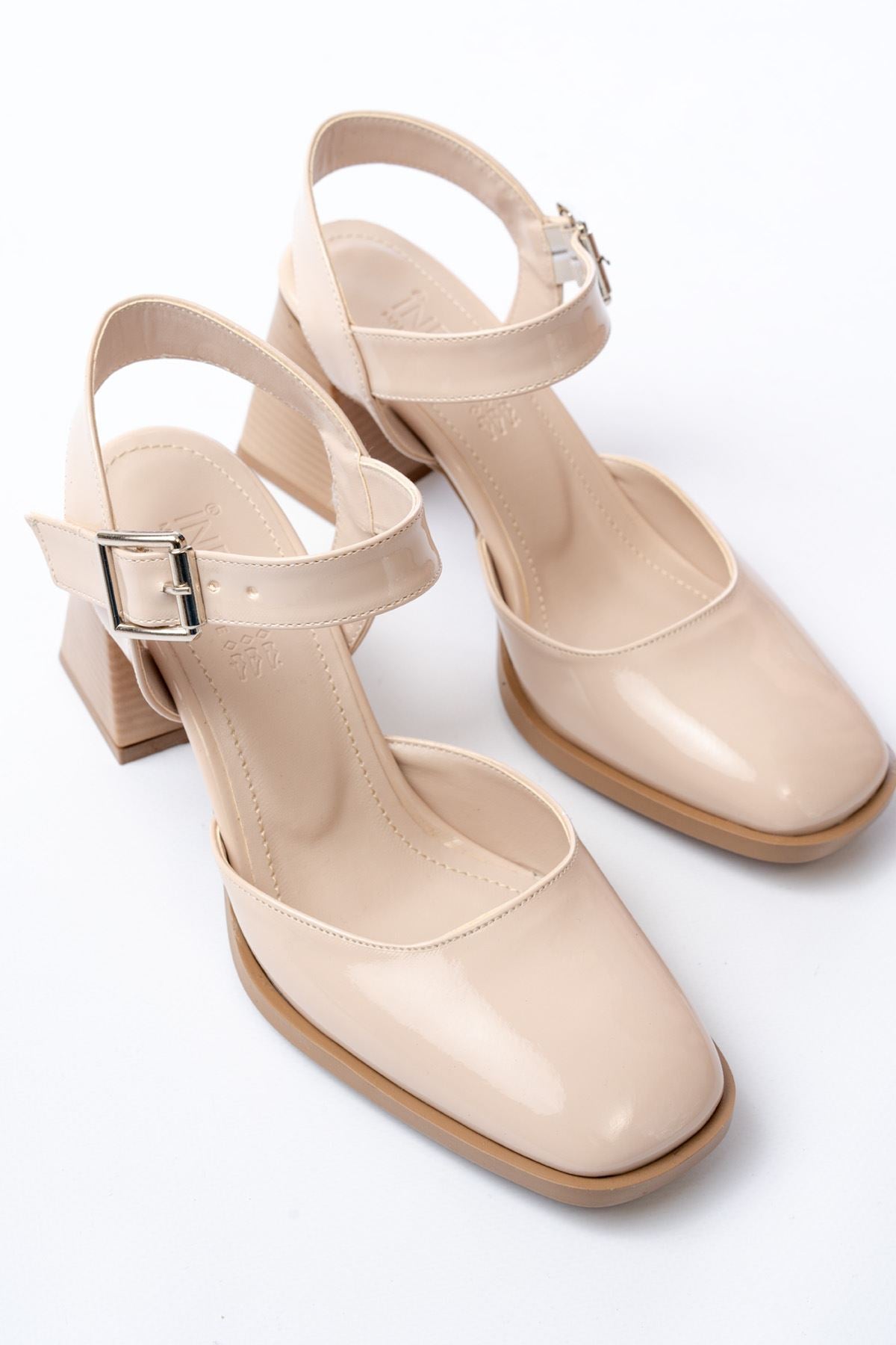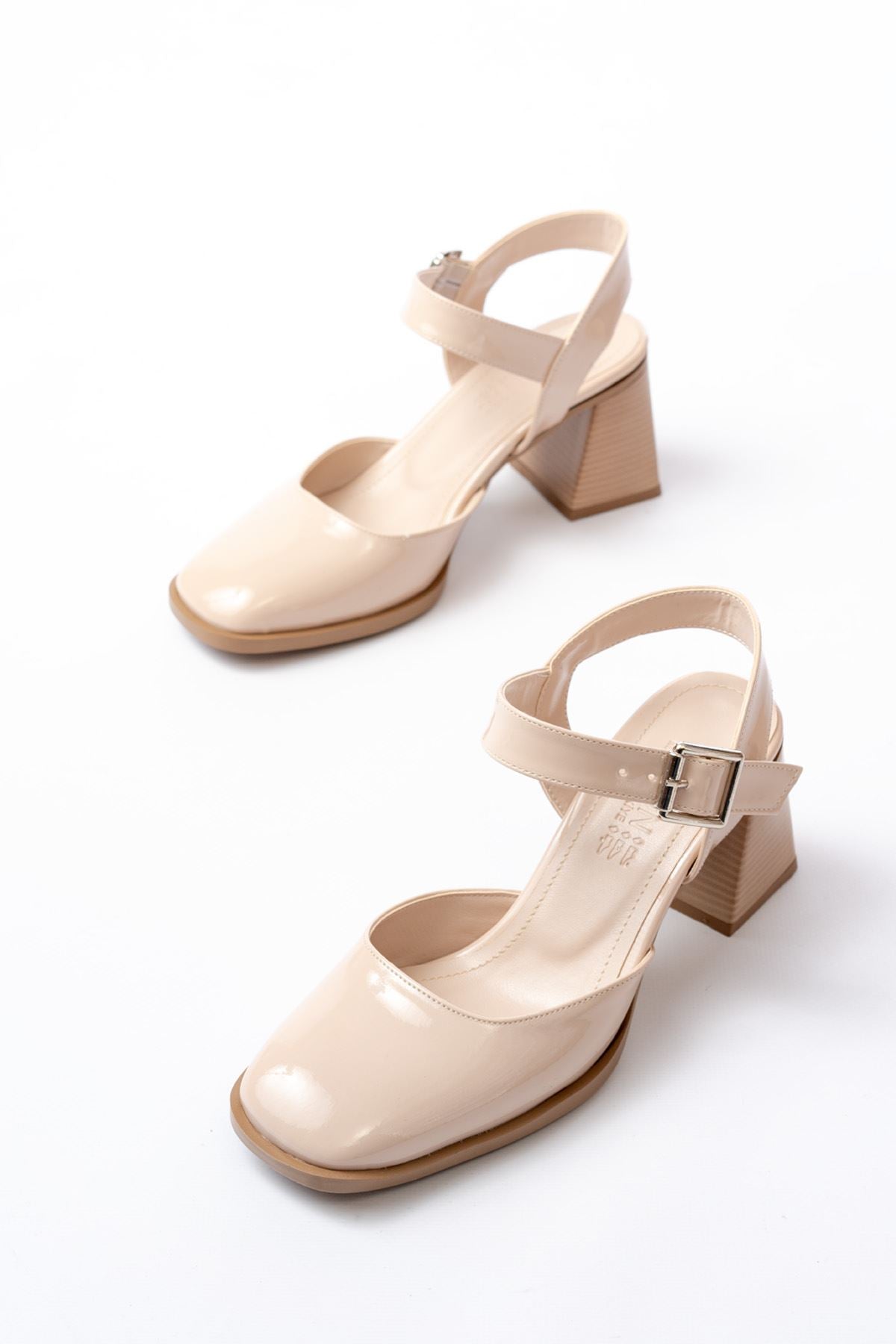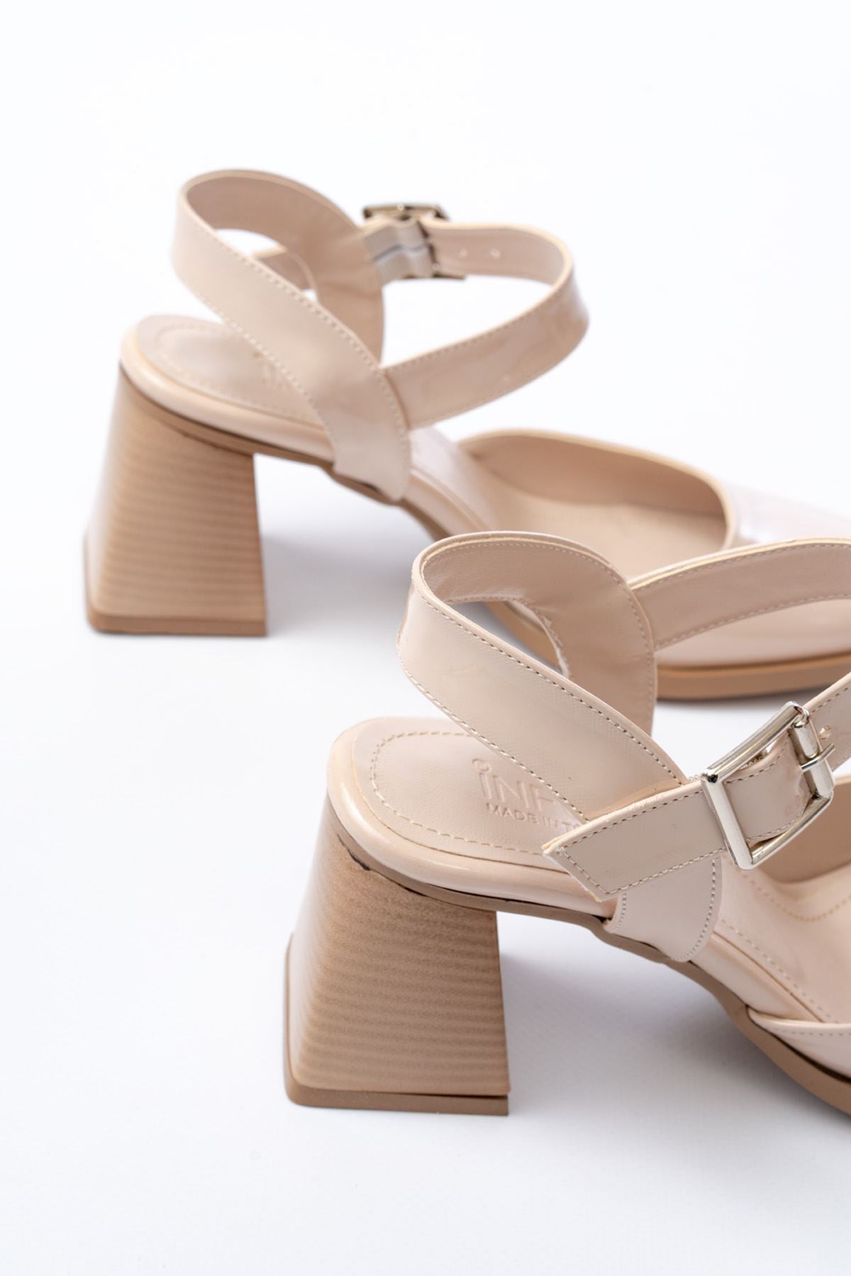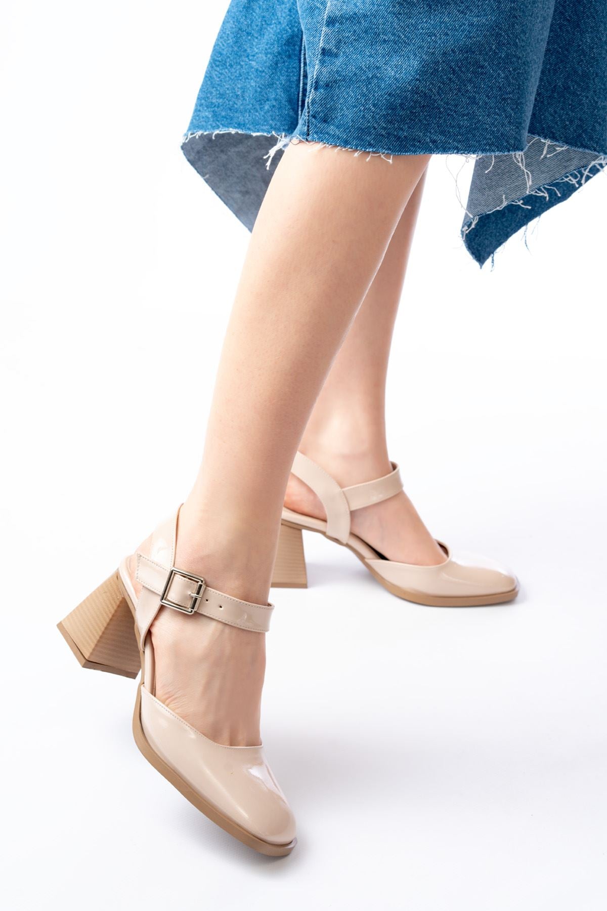 Ayakkabı Aşkı İNF-40450 Bej Rugan Günlük Arkası Açık Topuklu Bayan Ayakkabı