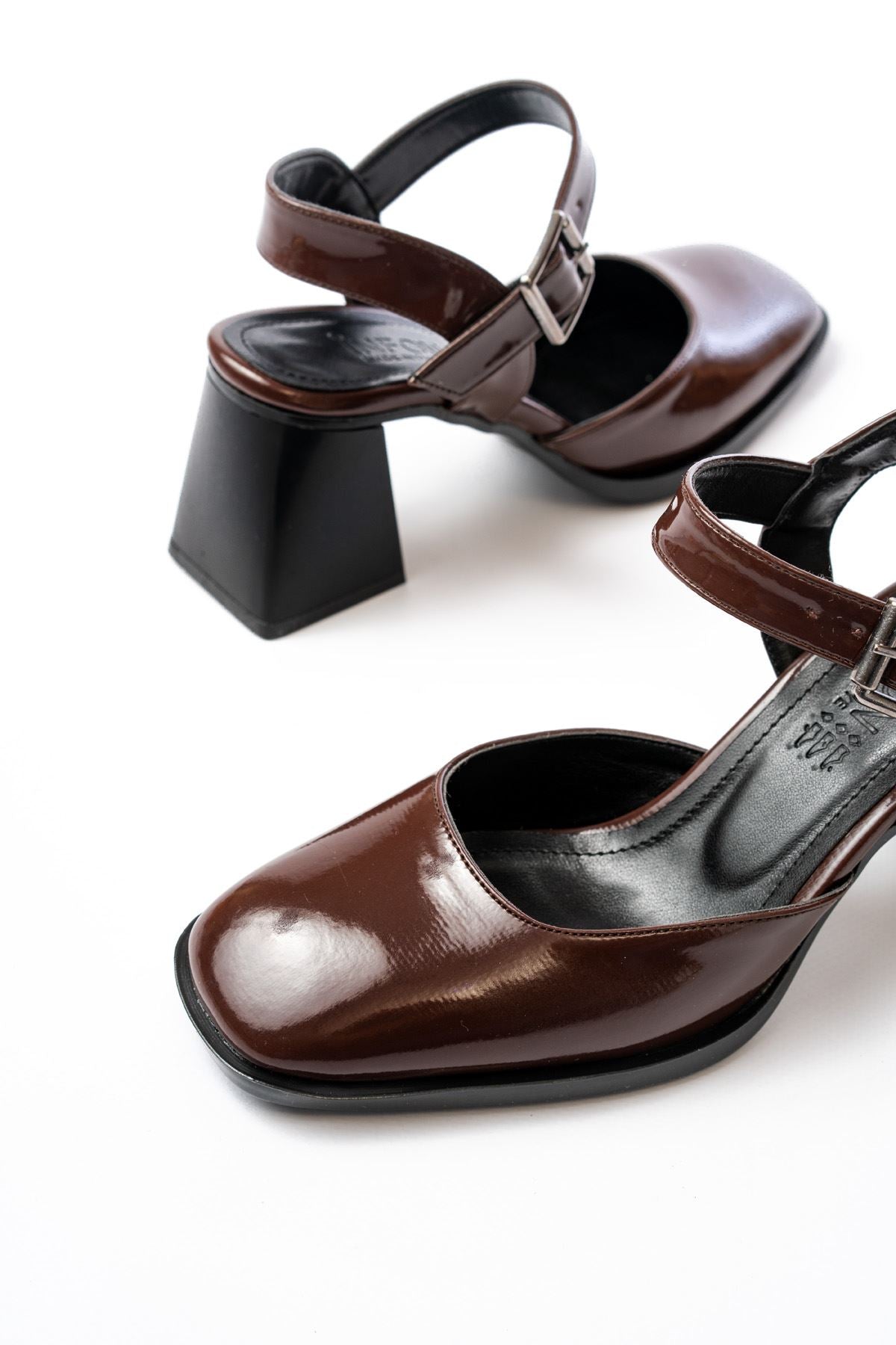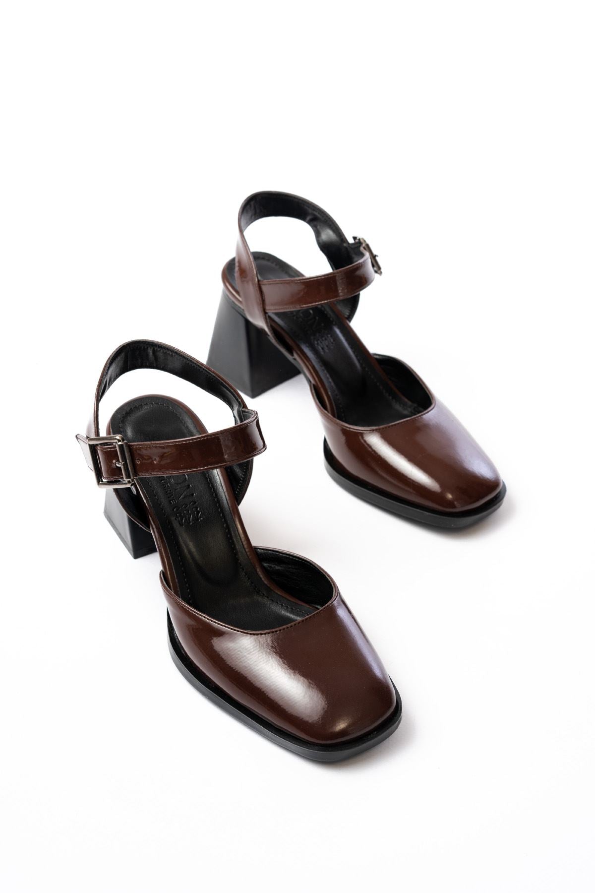 Ayakkabı Aşkı İNF-40450 Kahve Rugan Günlük Arkası Açık Topuklu Bayan Ayakkabı