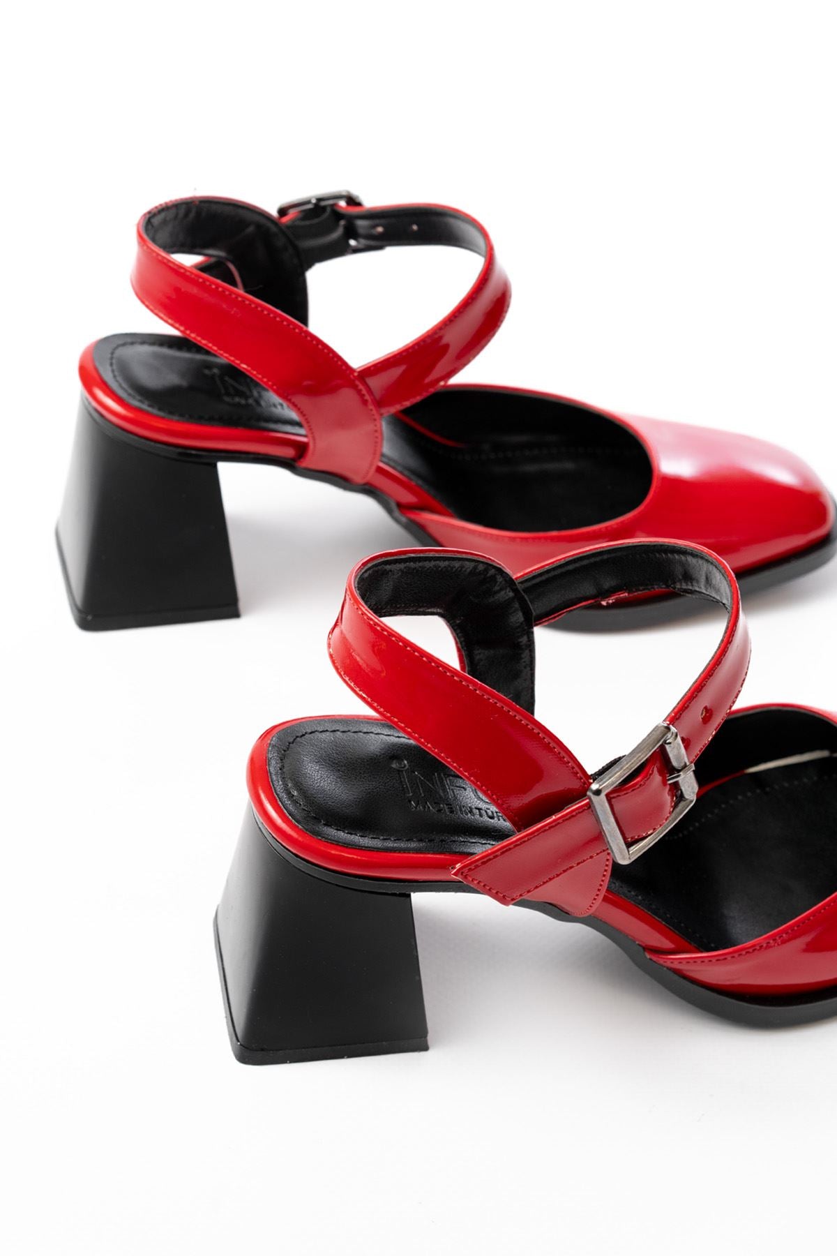 Ayakkabı Aşkı İNF-40450 Kırmızı Rugan Günlük Arkası Açık Topuklu Bayan Ayakkabı