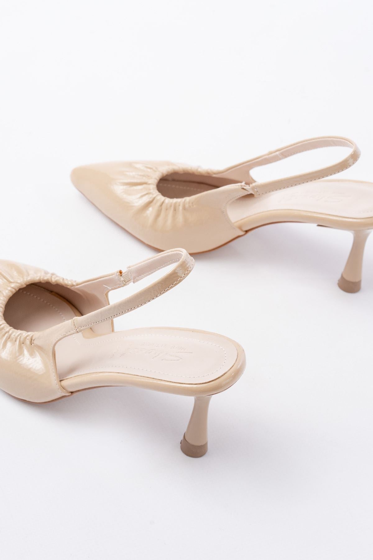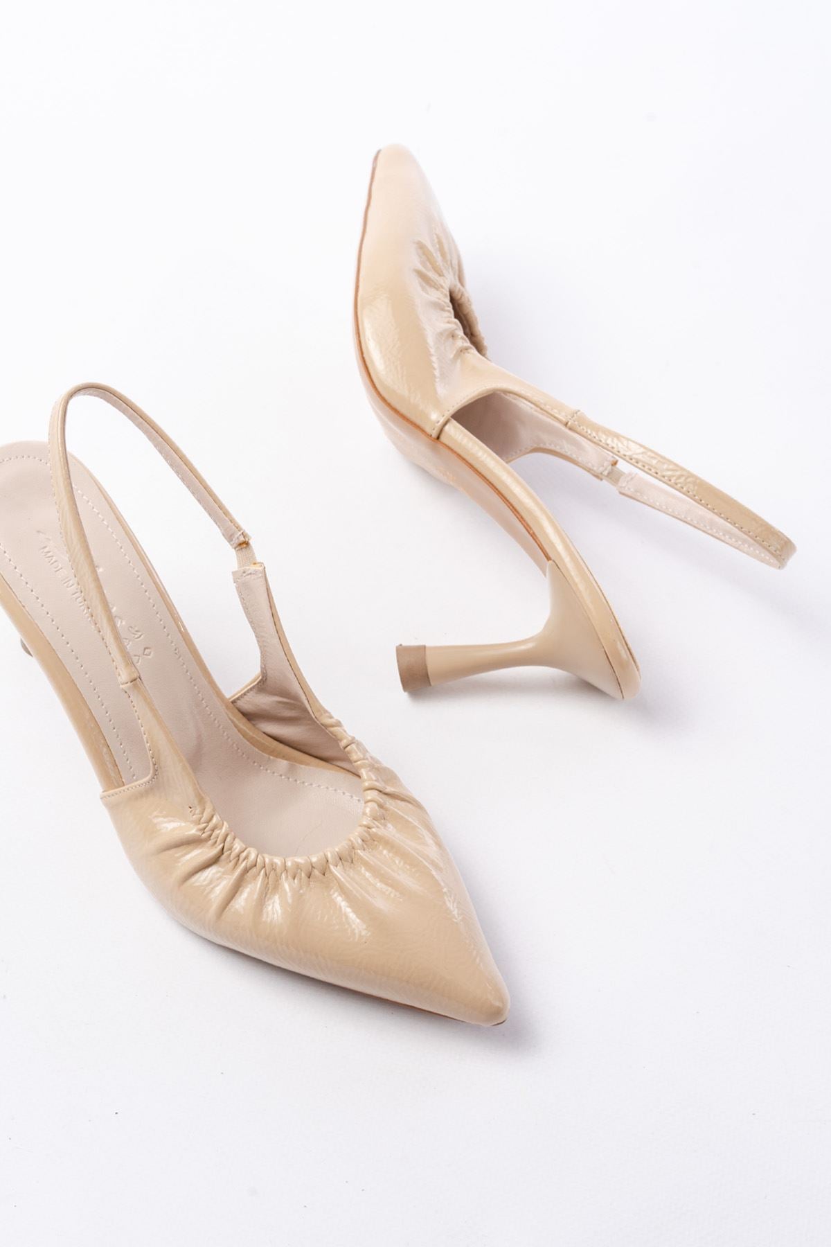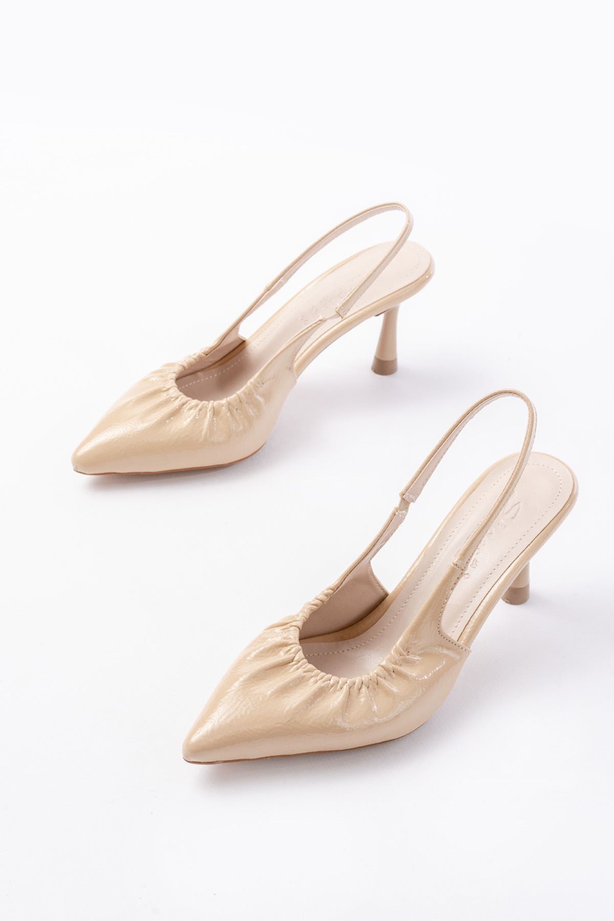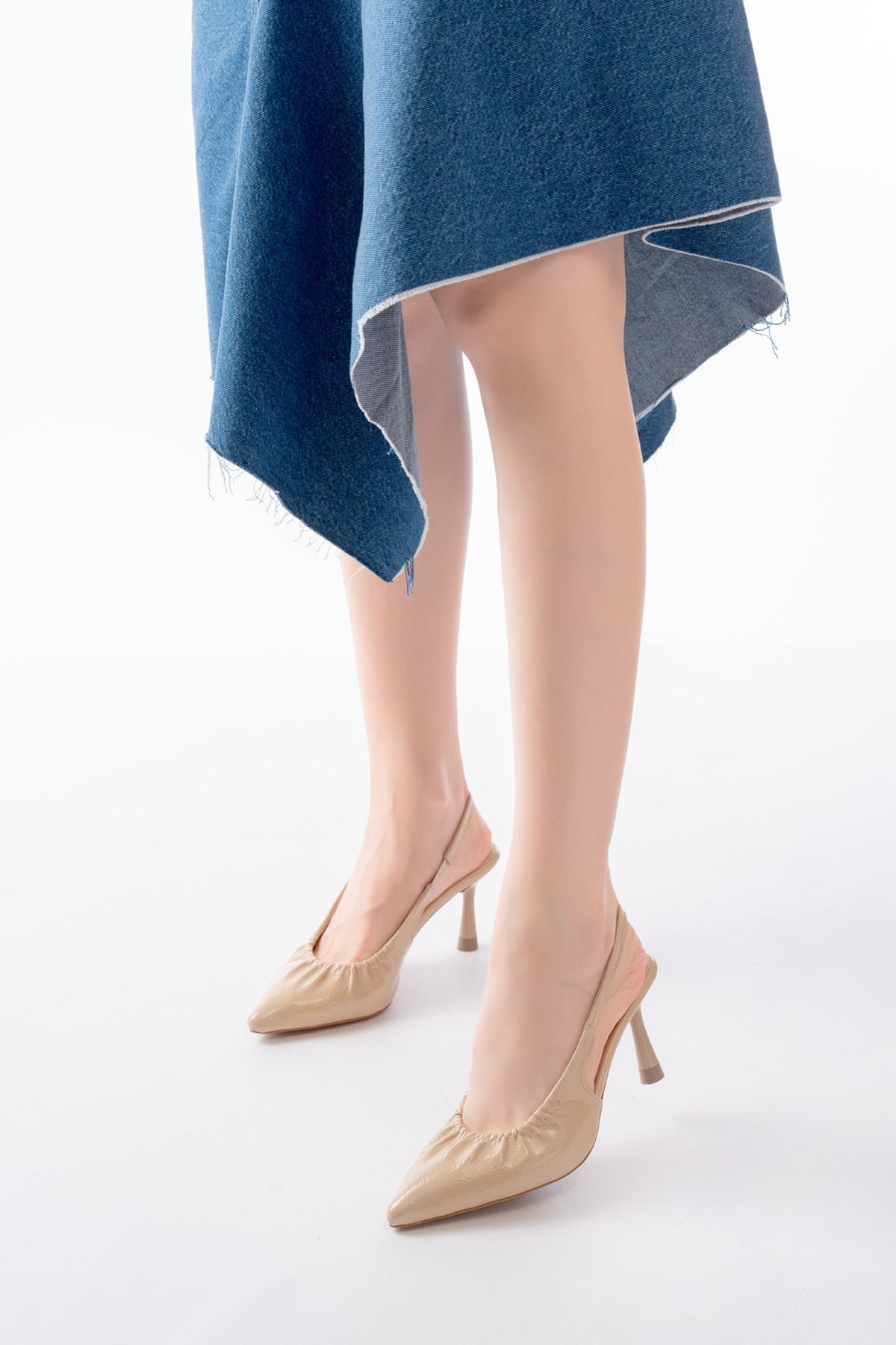 Ayakkabı Aşkı İNF-40451 Bej Kırışık Rugan Günlük Arkası Açık Topuklu Bayan Ayakkabı