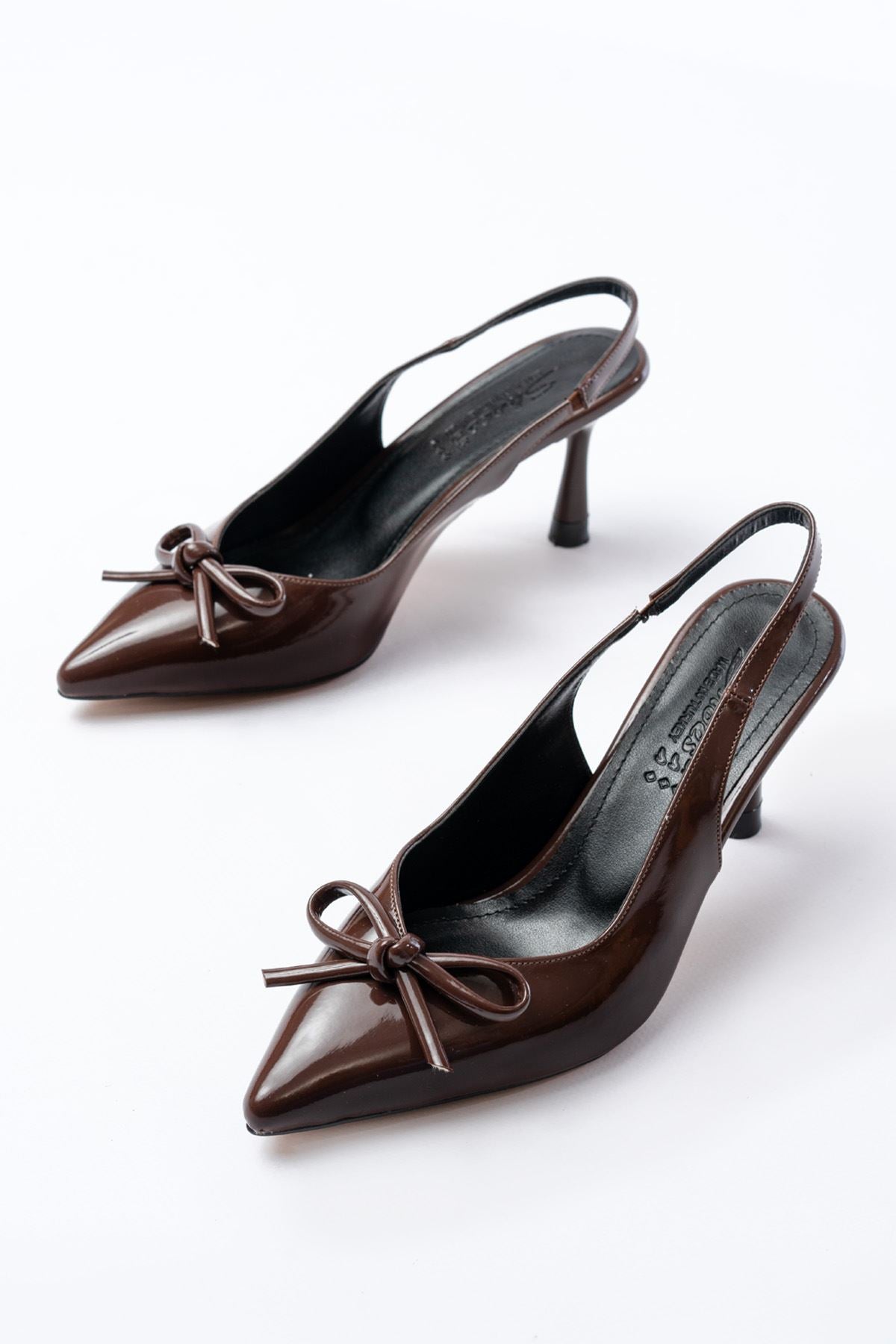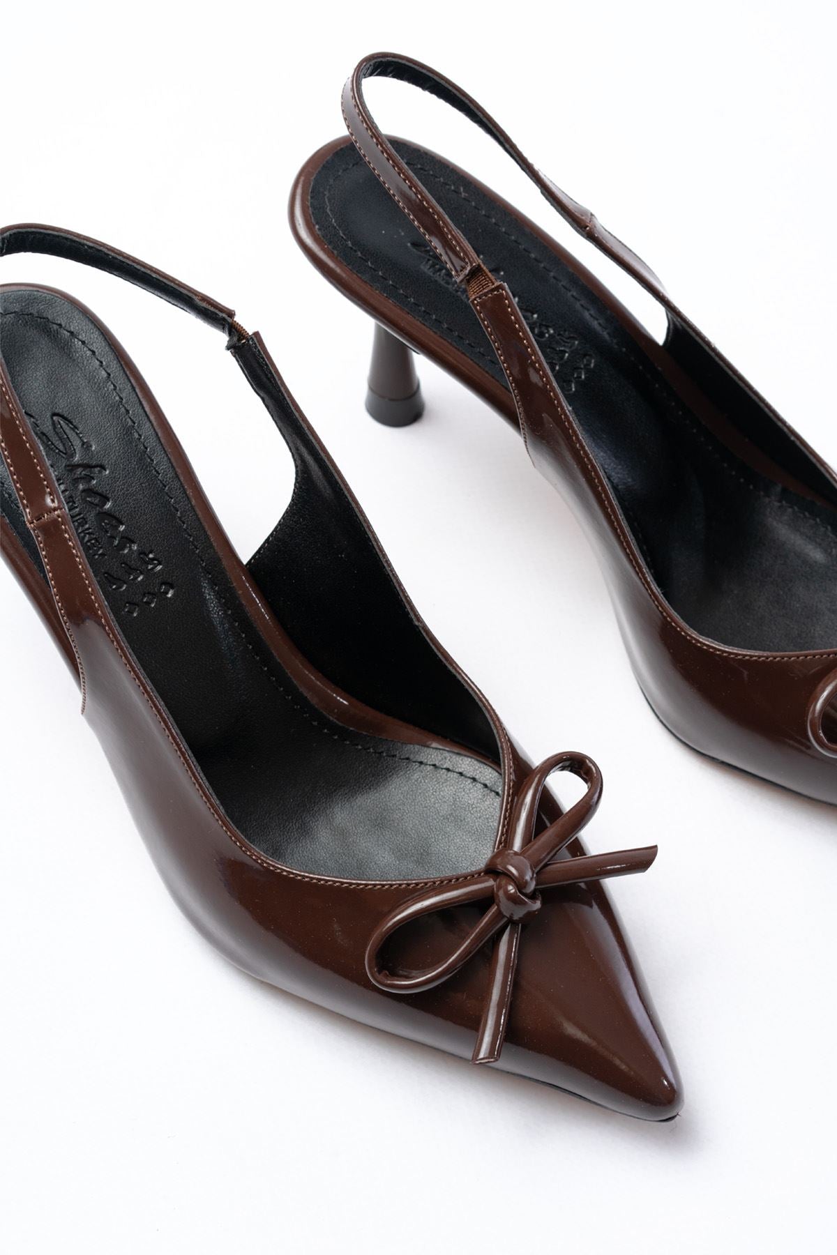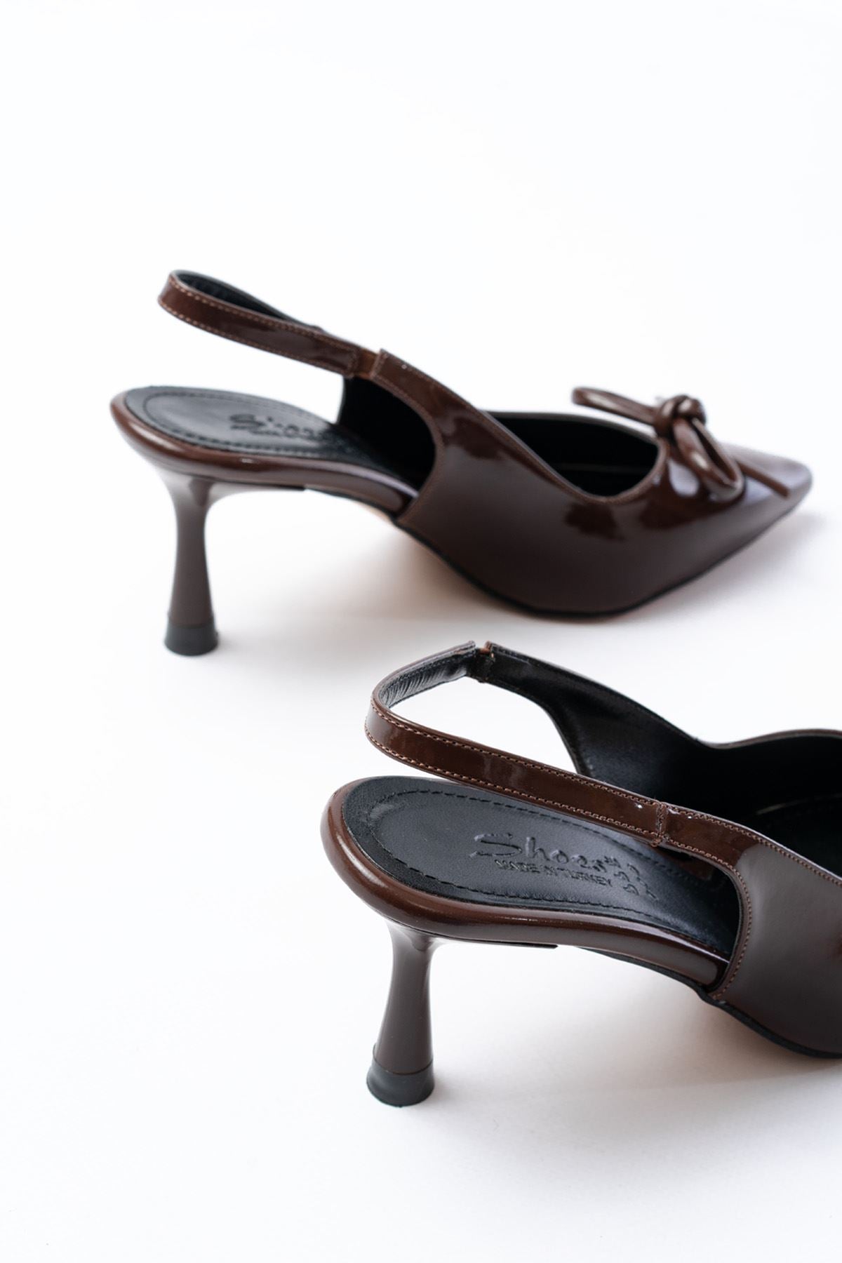 Ayakkabı Aşkı İNF-45 Kahve Rugan Günlük Arkası Açık Fiyonklu Topuklu Bayan Ayakkabı