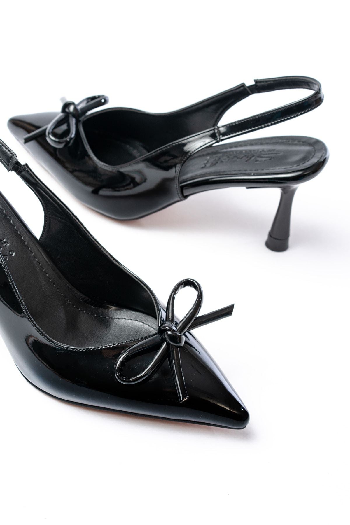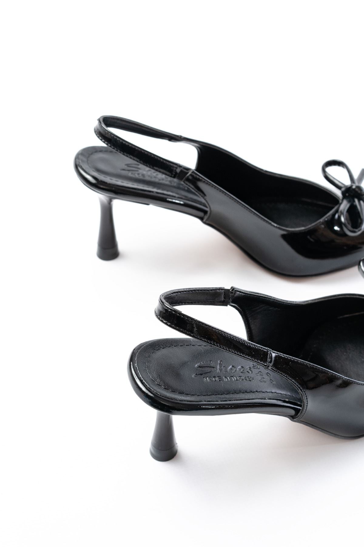 Ayakkabı Aşkı İNF-45 Siyah Rugan Günlük Arkası Açık Fiyonklu Topuklu Bayan Ayakkabı