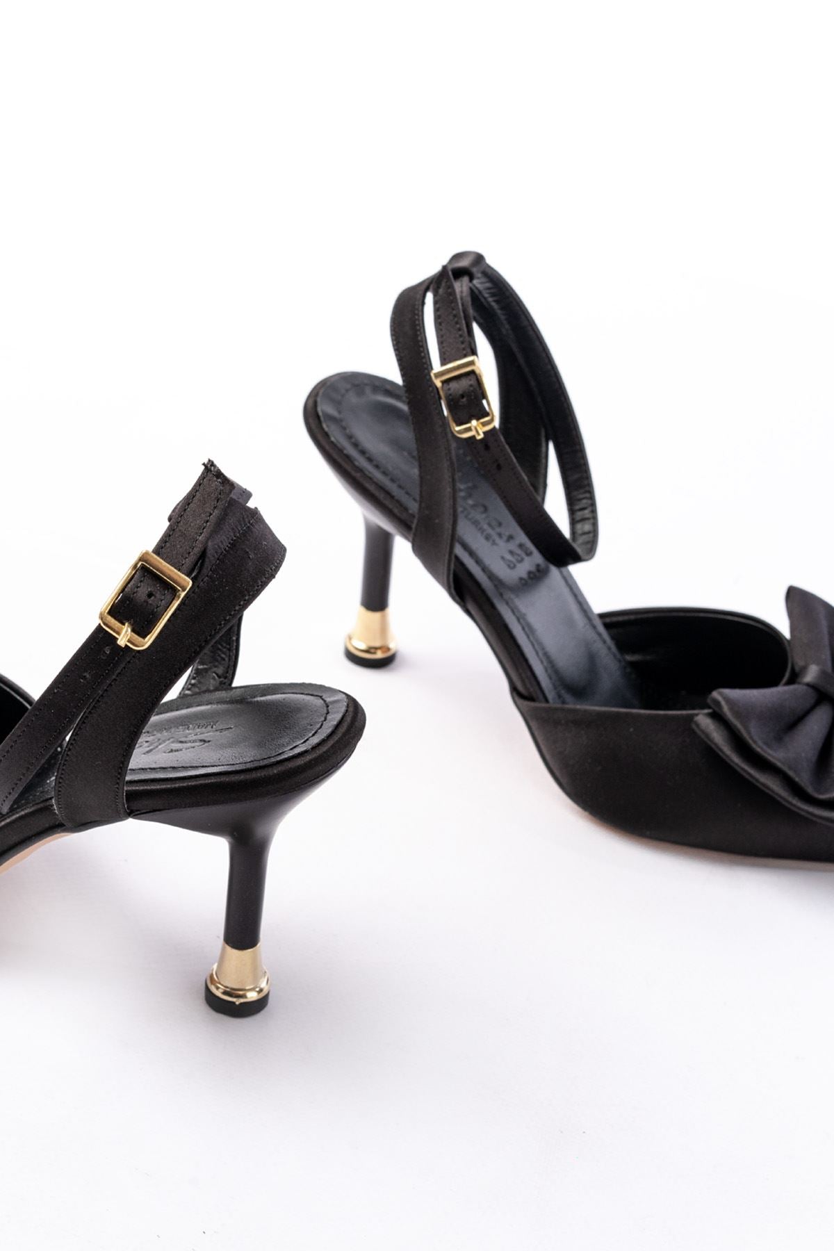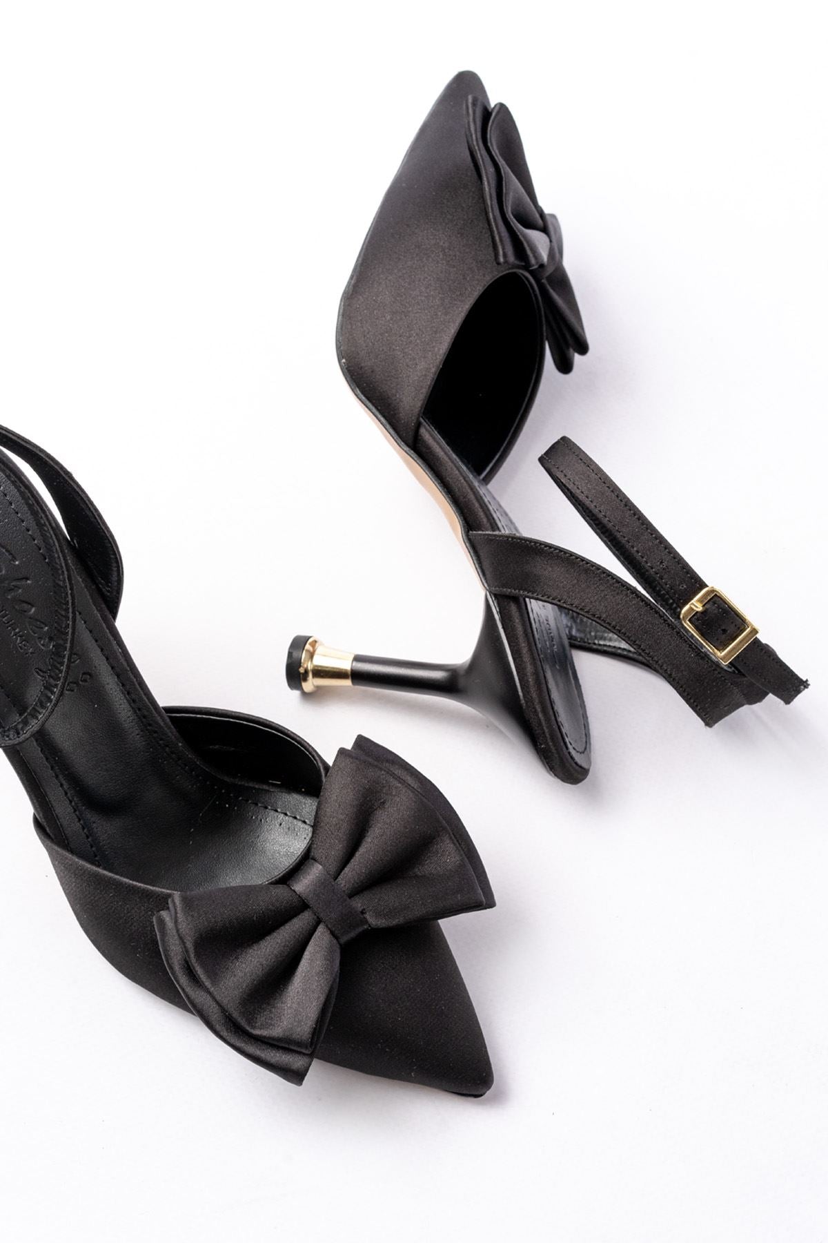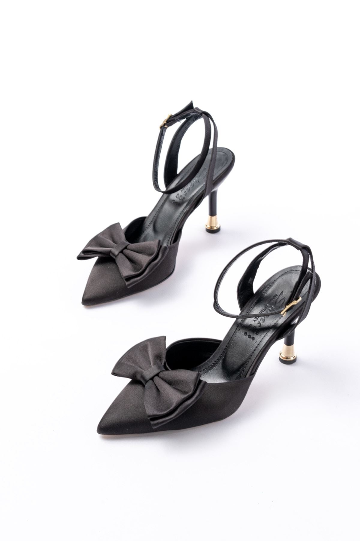 Ayakkabı Aşkı İNF-4505 Siyah Saten Günlük Arkası Açık Kurdele detaylı Topuklu Bayan Ayakkabı