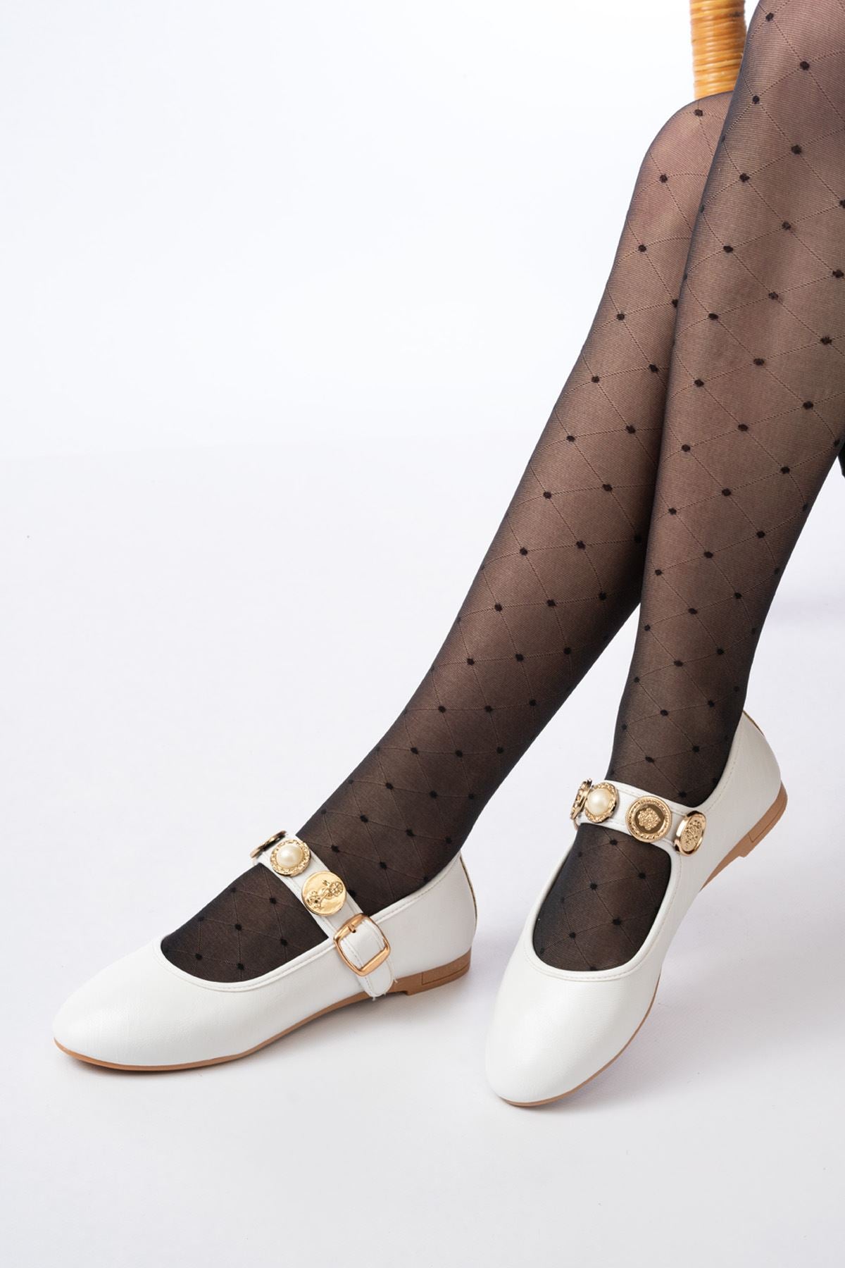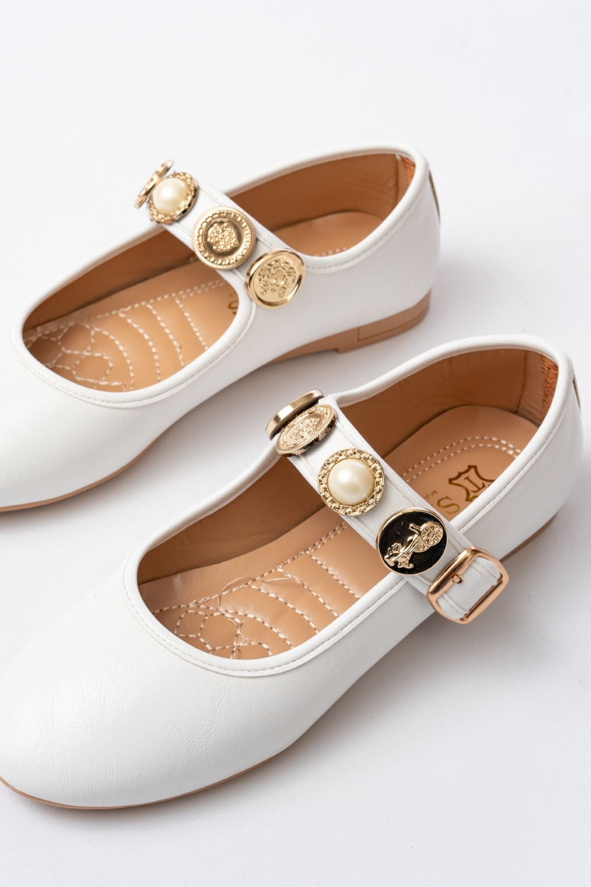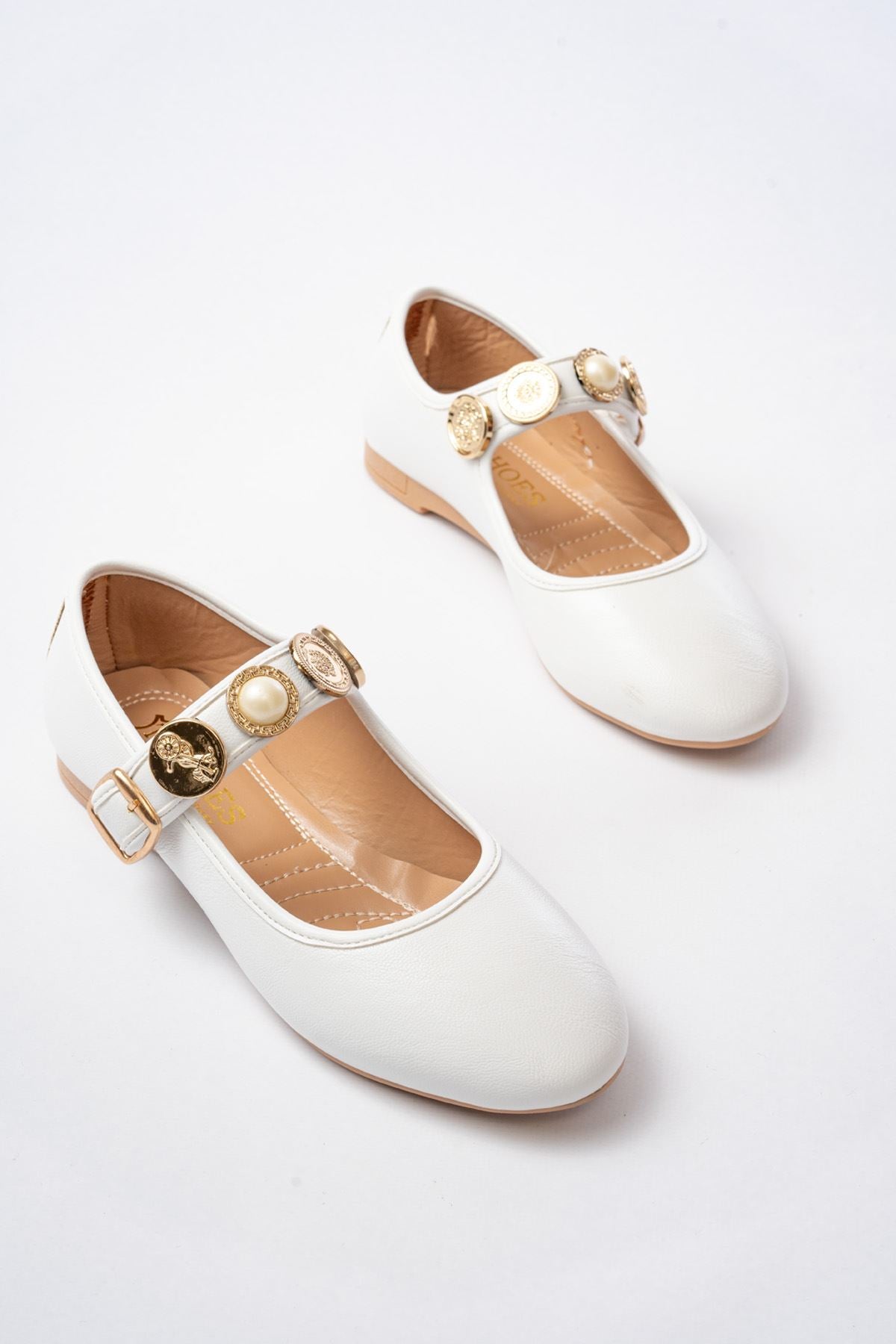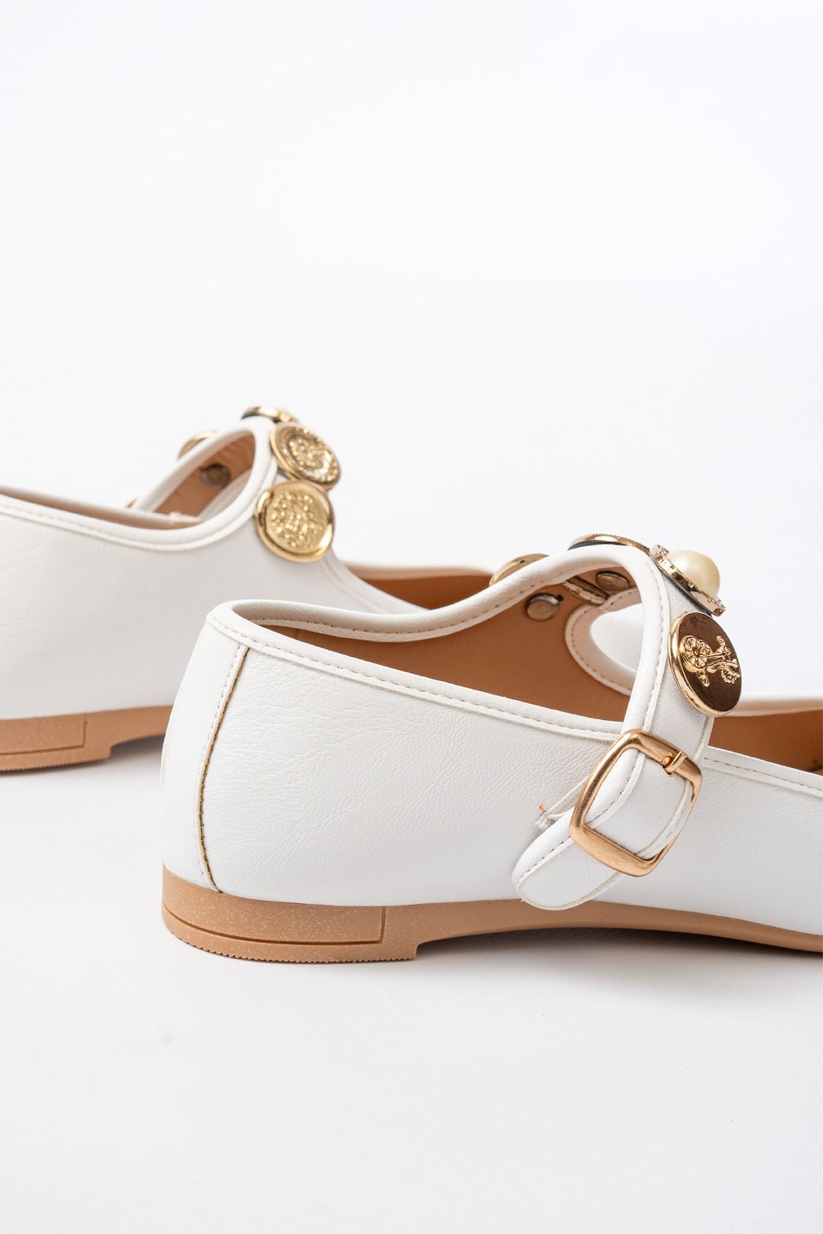 Ayakkabı Aşkı İNF-6363 Beyaz Baret Tokalı Günlük Bayan Ayakkabı