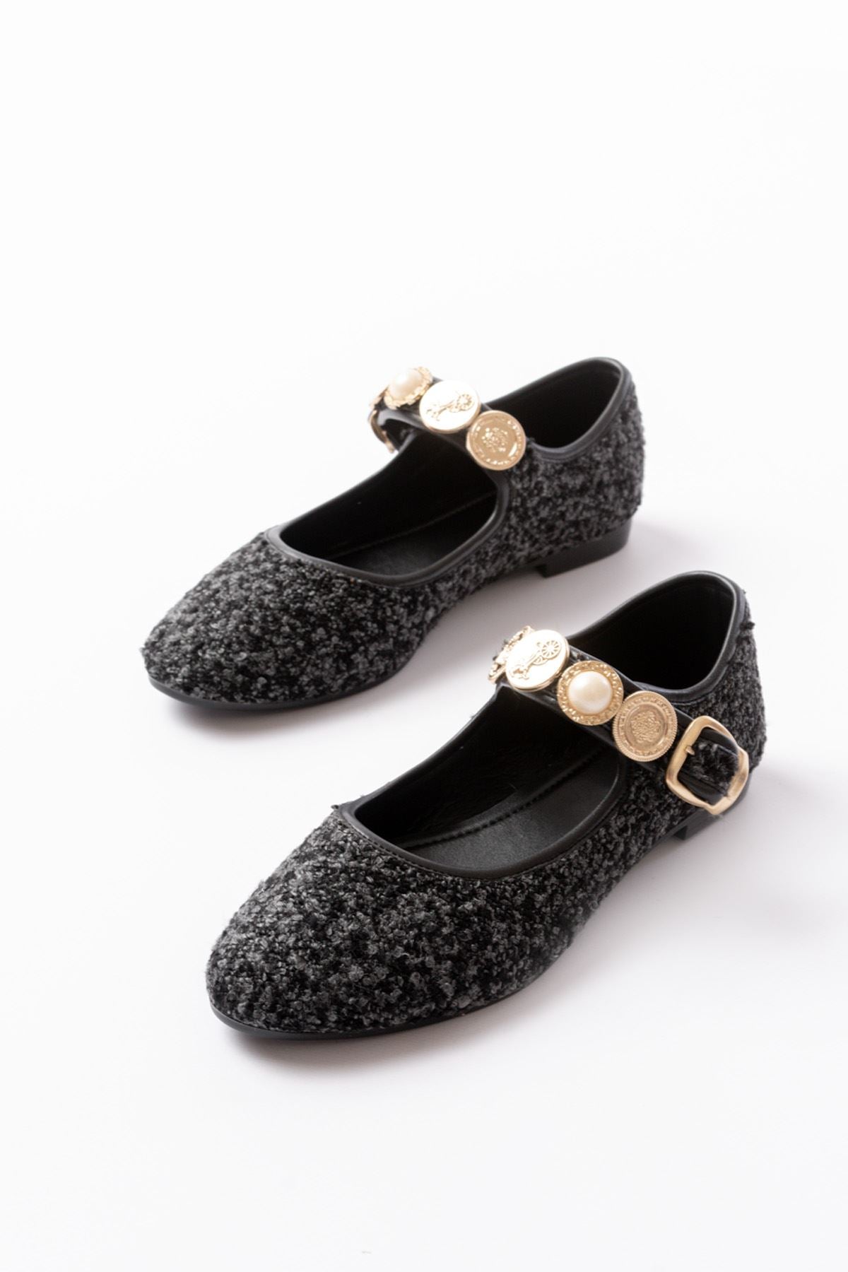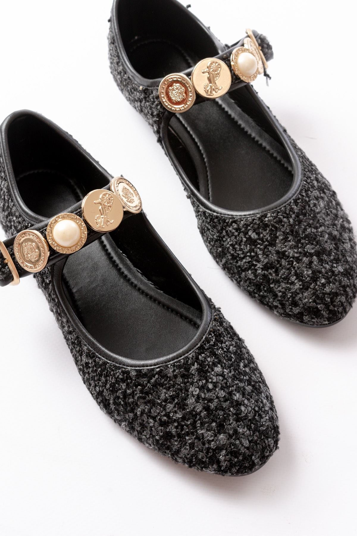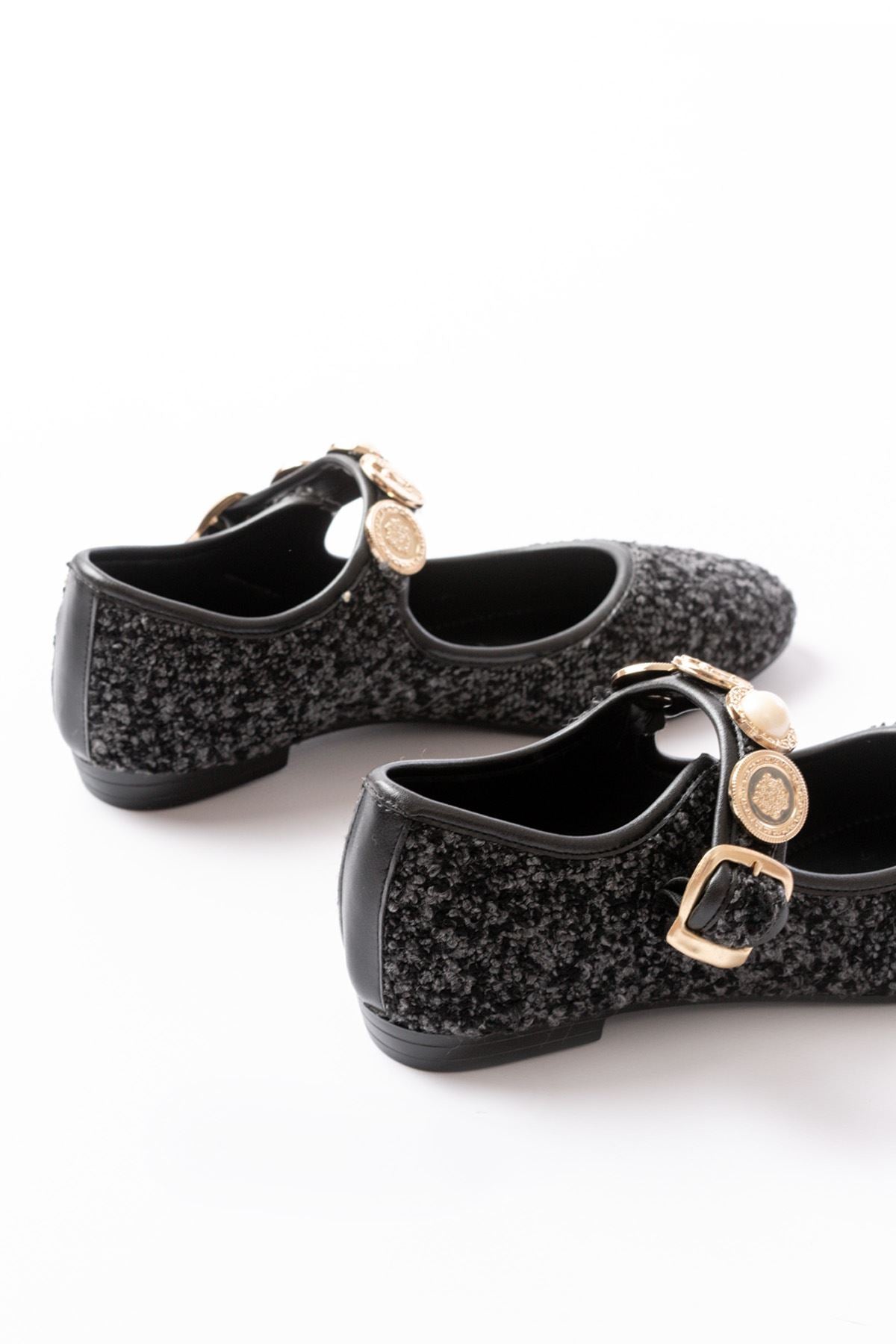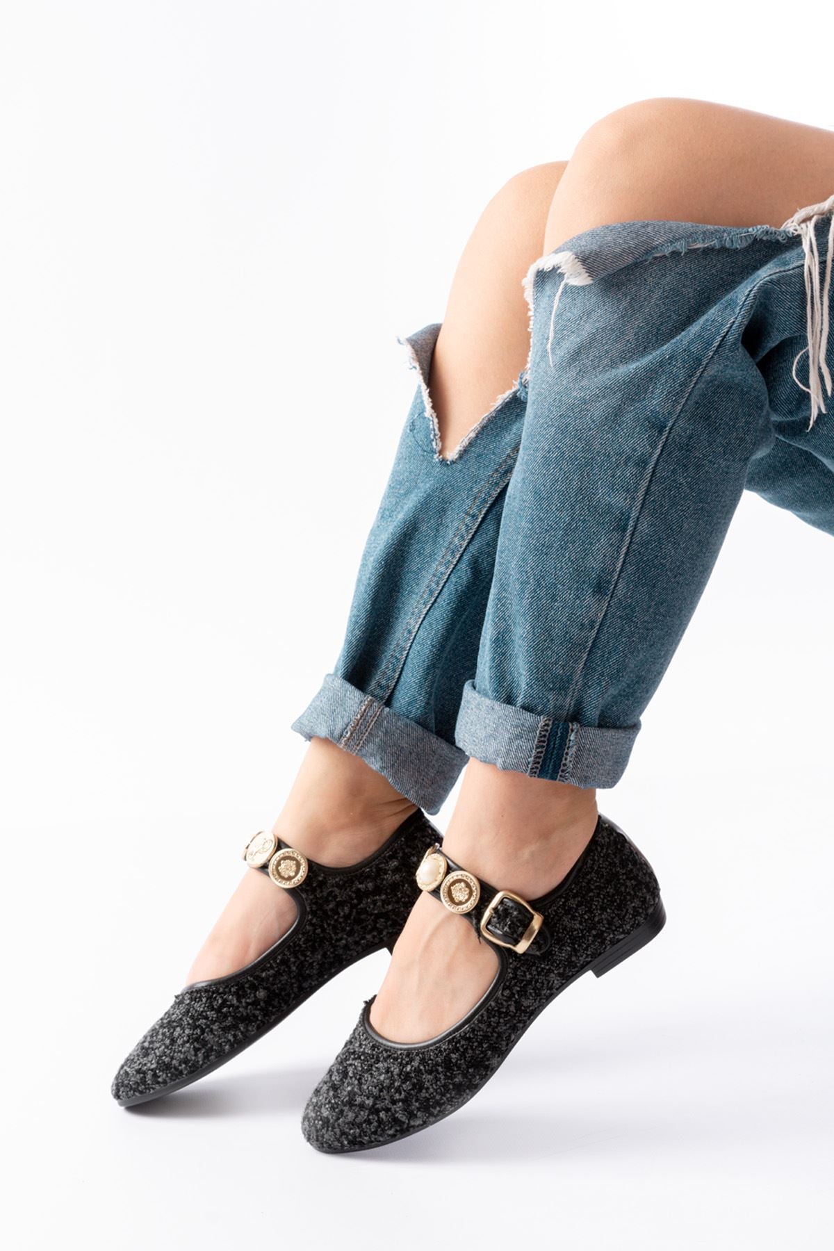 Ayakkabı Aşkı İNF-6363 Siyah Havlu Desenli Baret Tokalı Günlük Bayan Ayakkabı