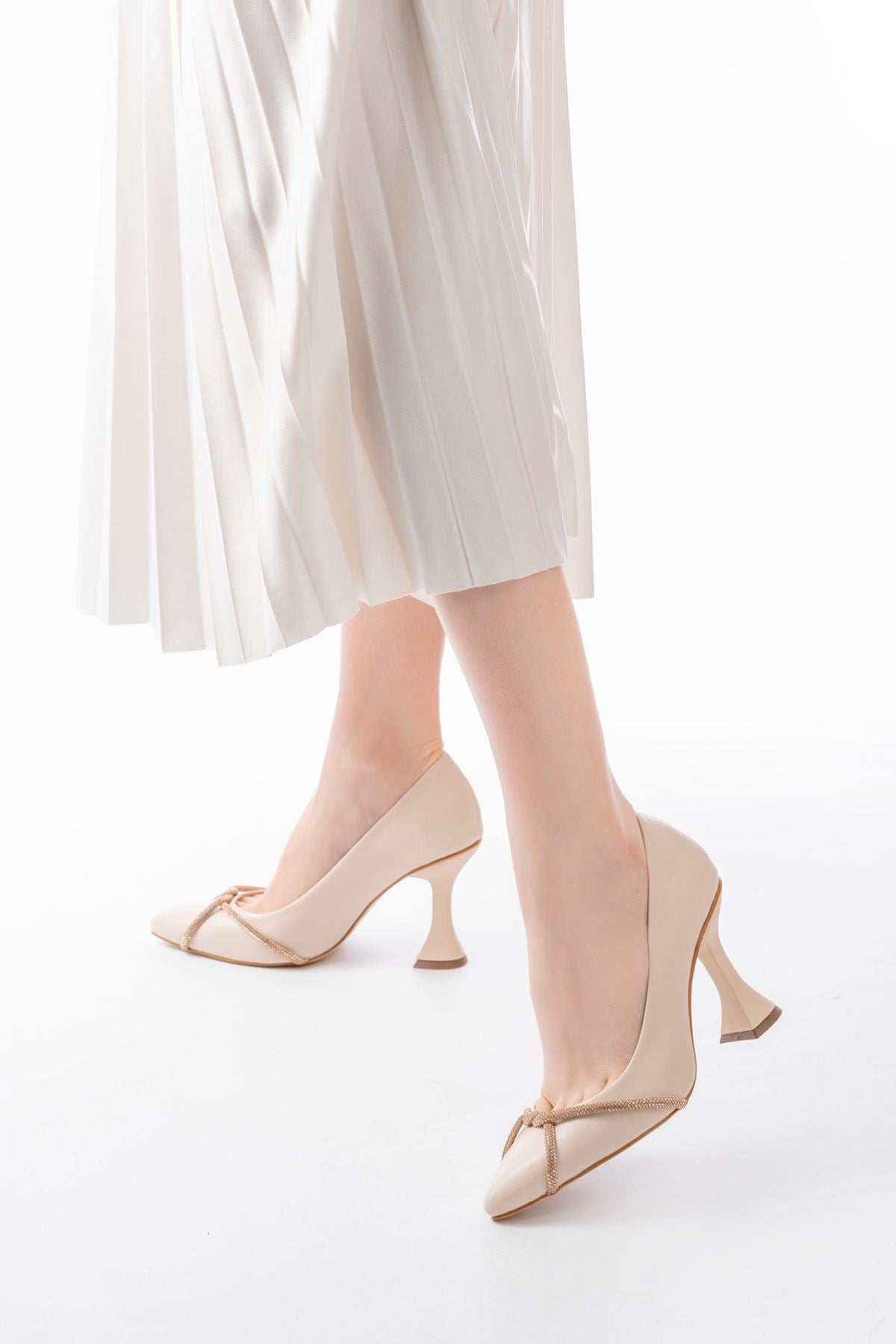 Ayakkabı Aşkı Bej Günlük Sarmal Taşlı Topuklu Kadın Ayakkabı