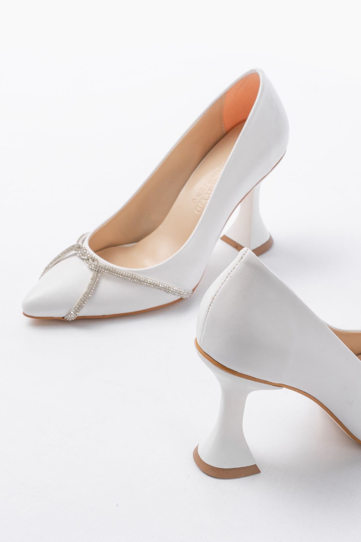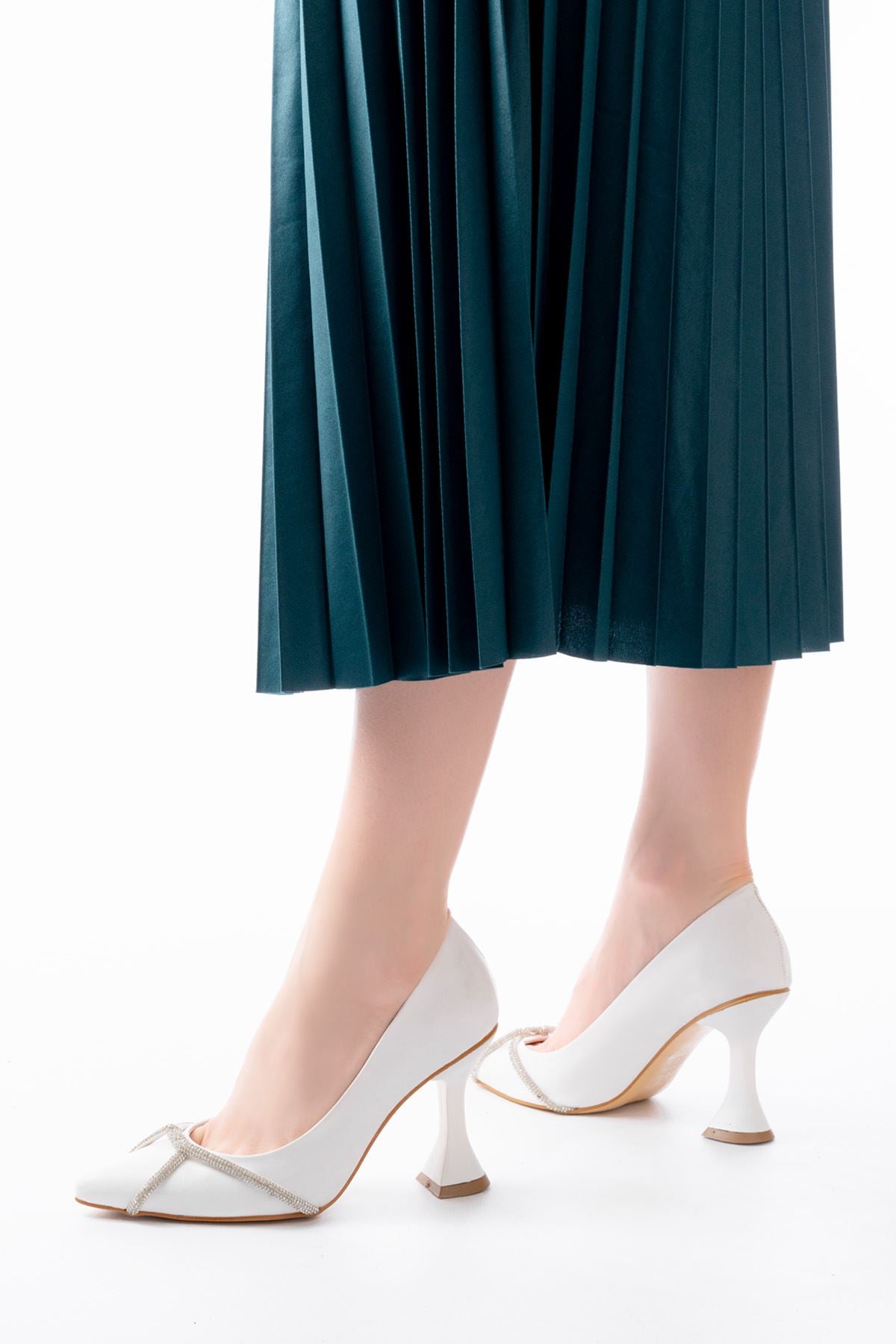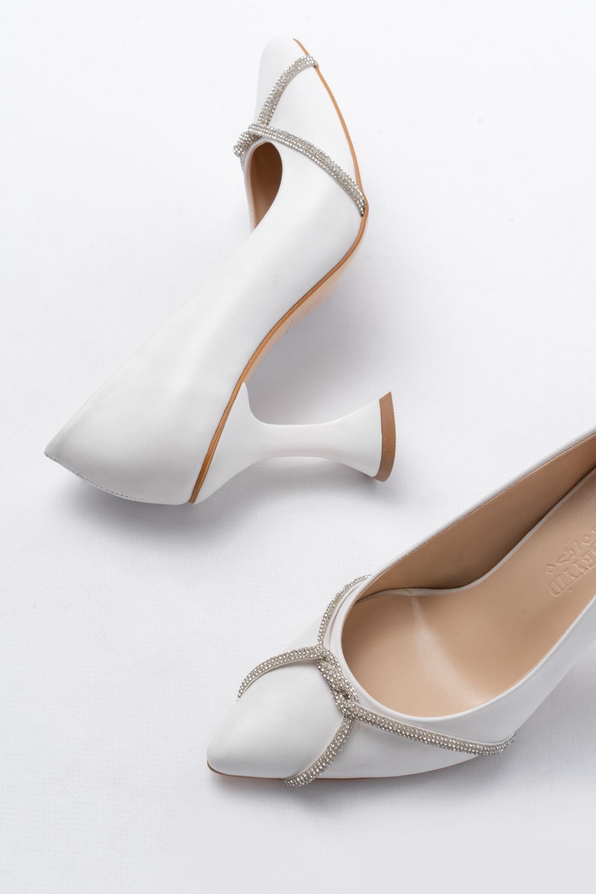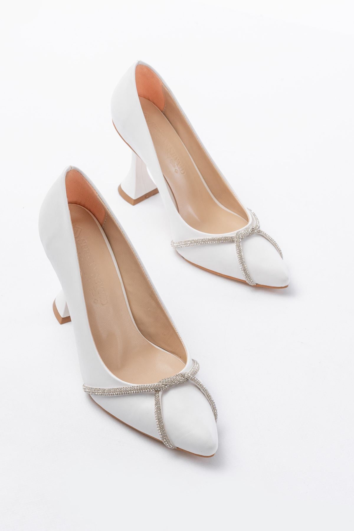 Ayakkabı Aşkı Beyaz Günlük Sarmal Taşlı Topuklu Kadın Ayakkabı