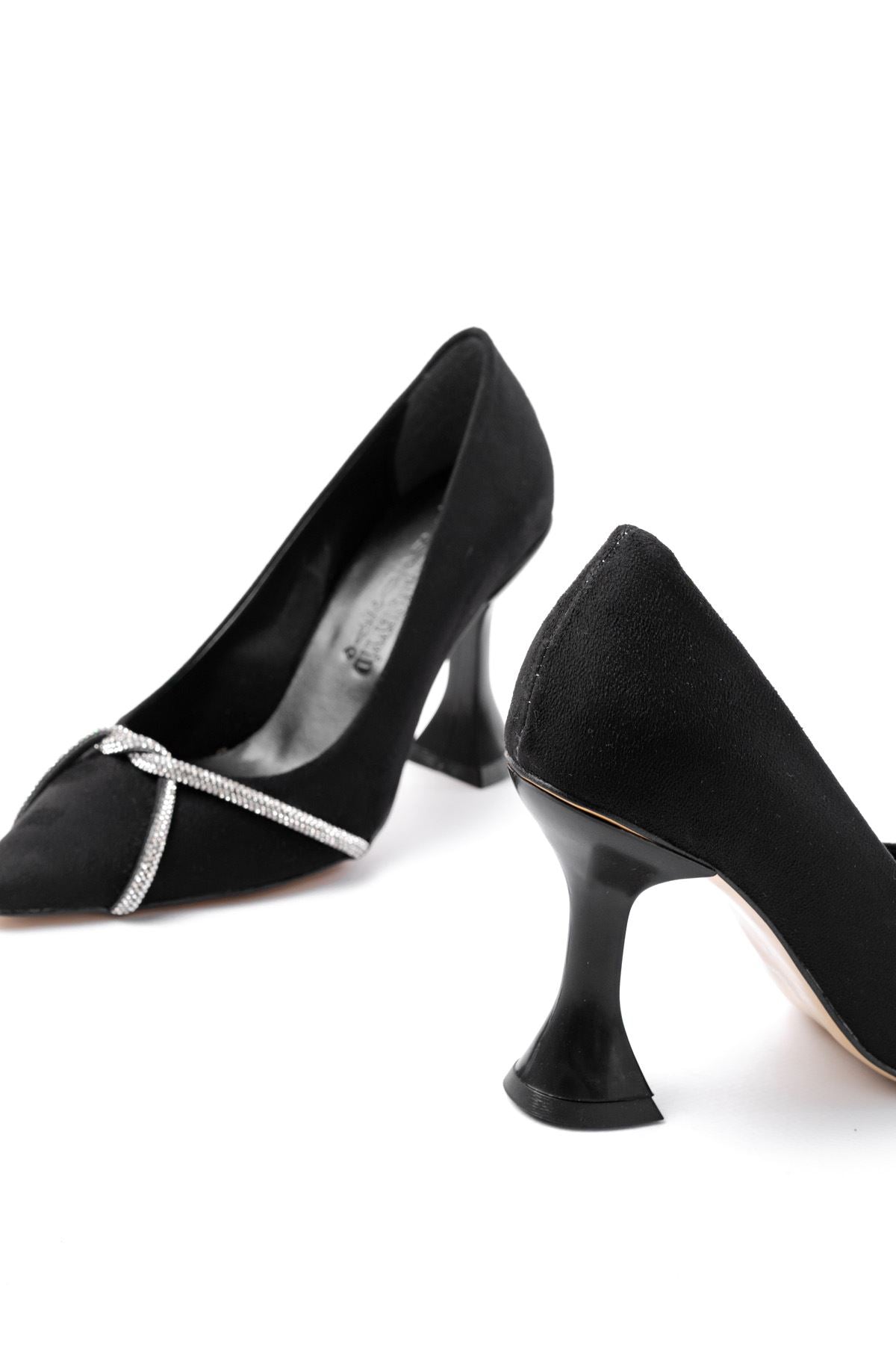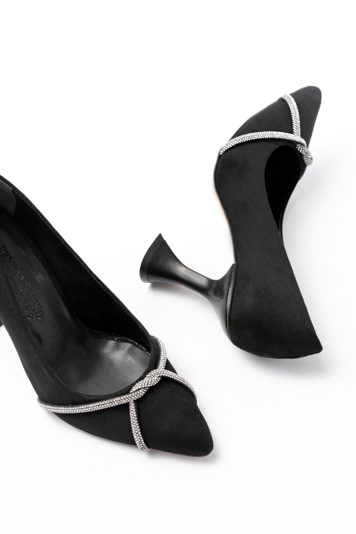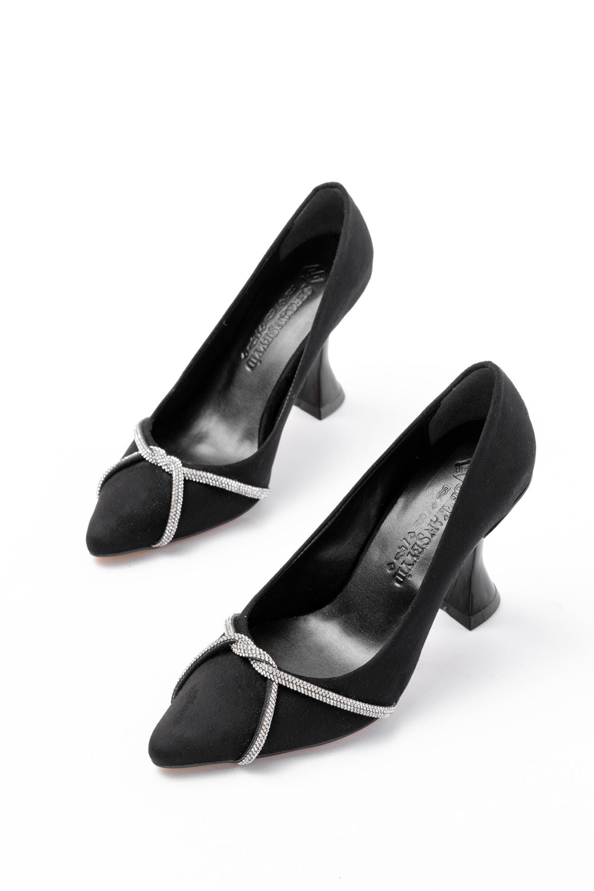 Ayakkabı Aşkı Siyah Süet Günlük Sarmal Taşlı Topuklu Kadın Ayakkabı