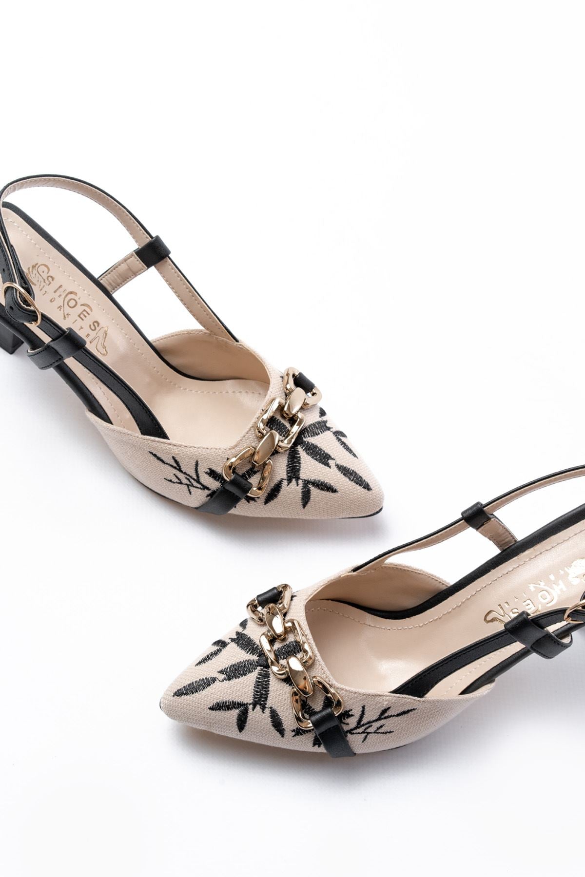 Ayakkabı Aşkı Siyah Keten Günlük Arkası Açık Tokalı Topuklu Kadın Ayakkabı