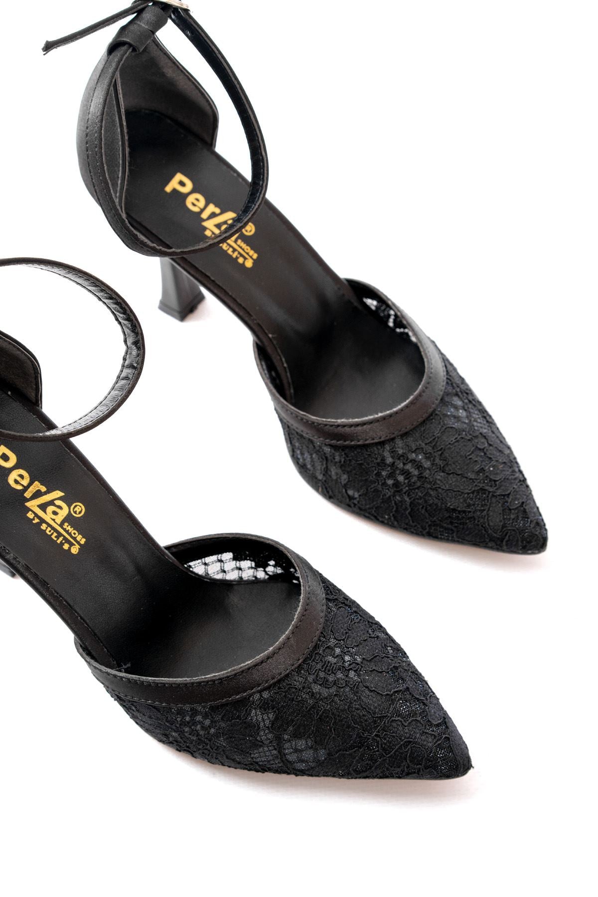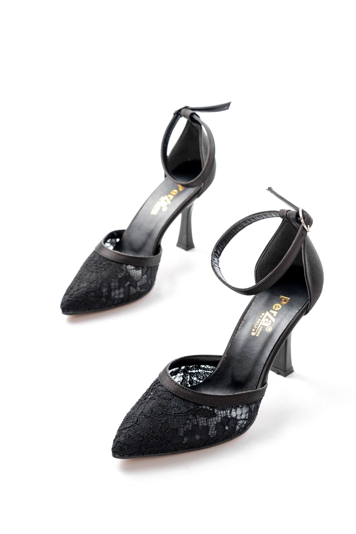 Ayakkabı Aşkı Siyah Fileli Çiçek Detaylı Kadın Topuklu Ayakkabı