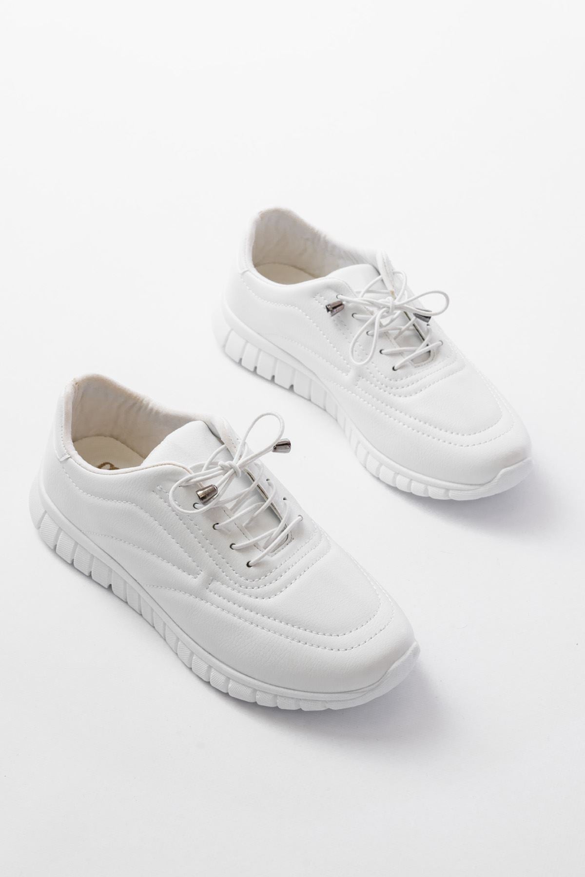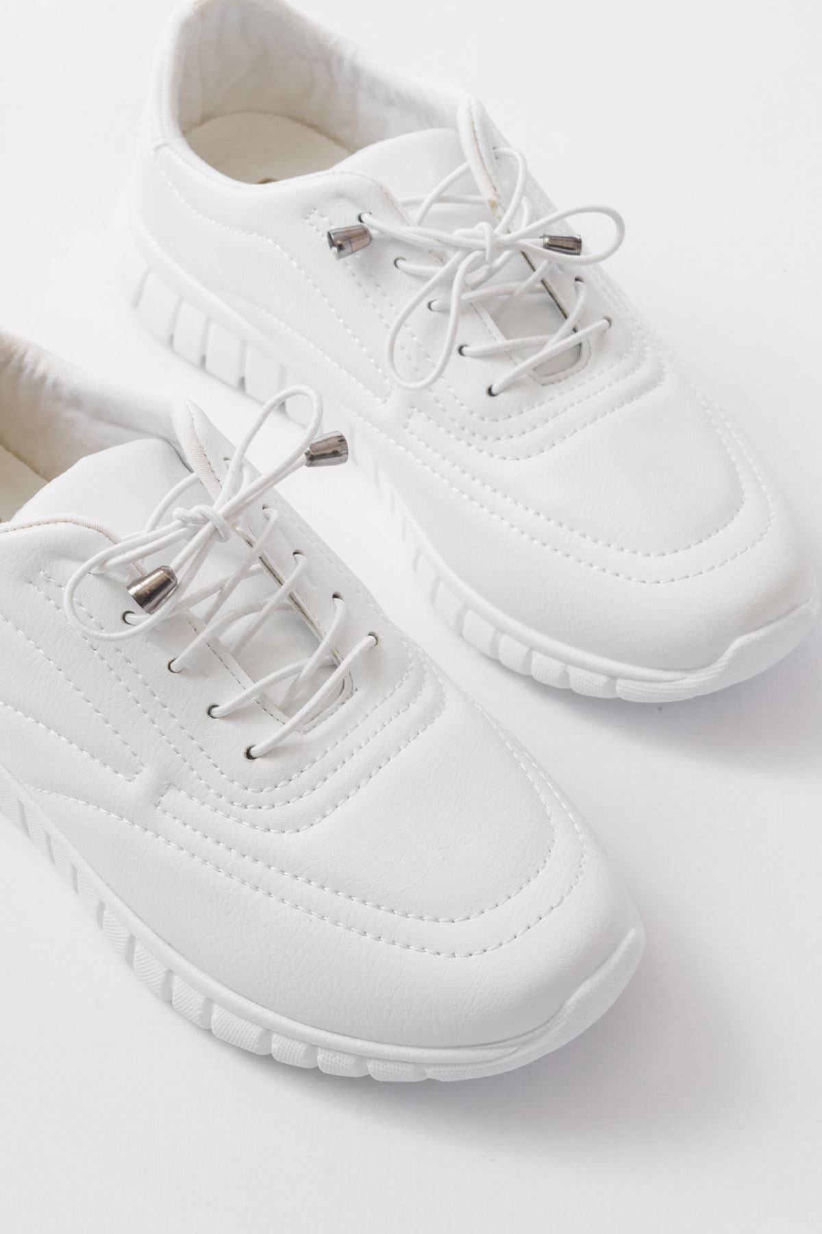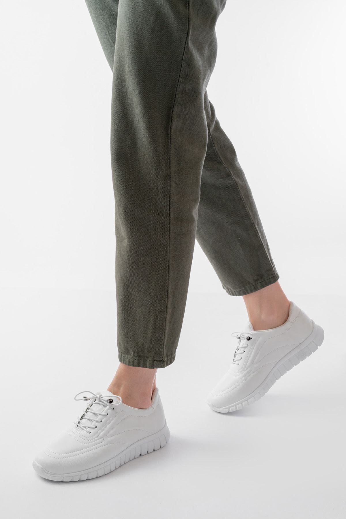 Ayakkabı Aşkı Beyaz Bağcıklı Desenli Günlük Spor Ayakkabı