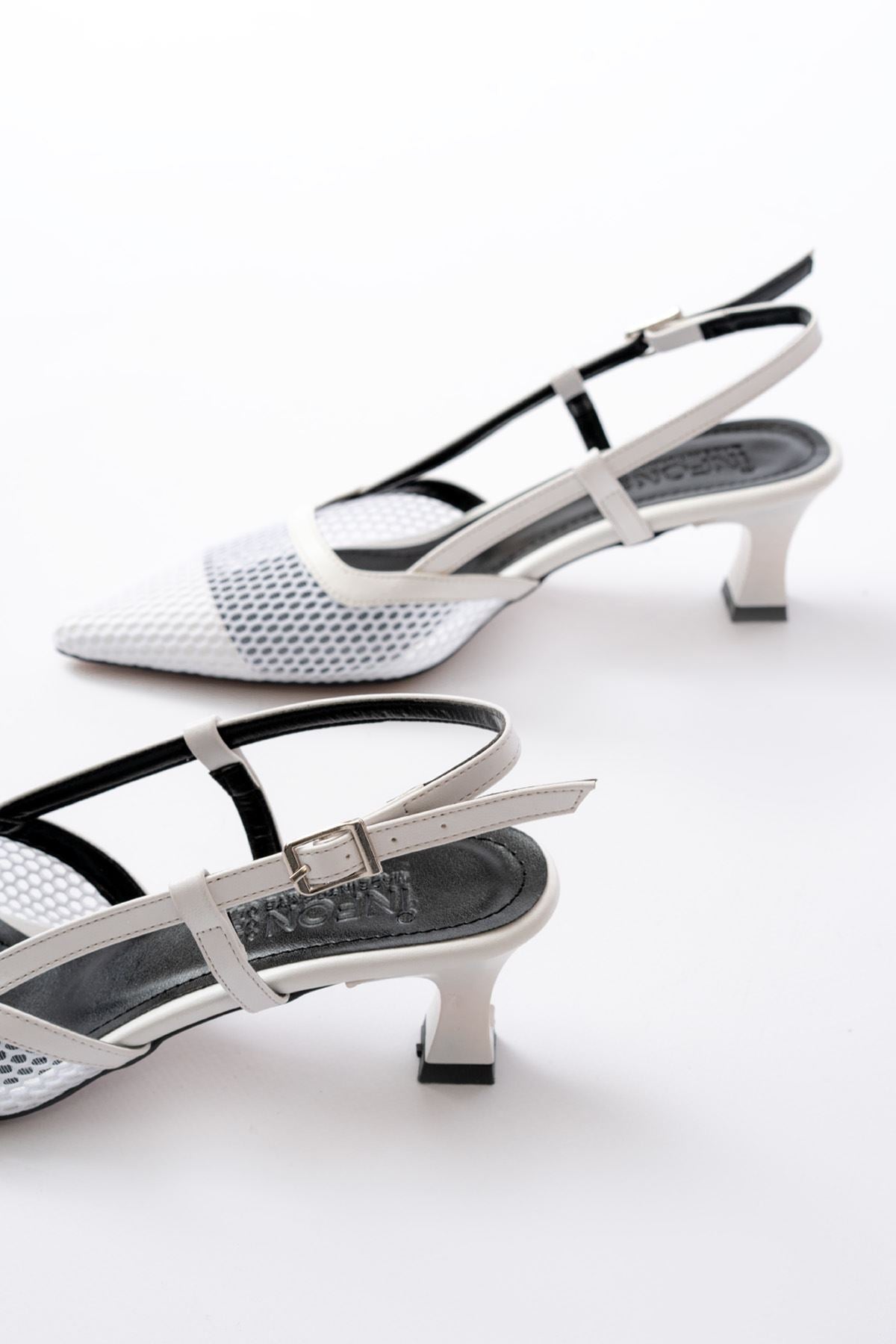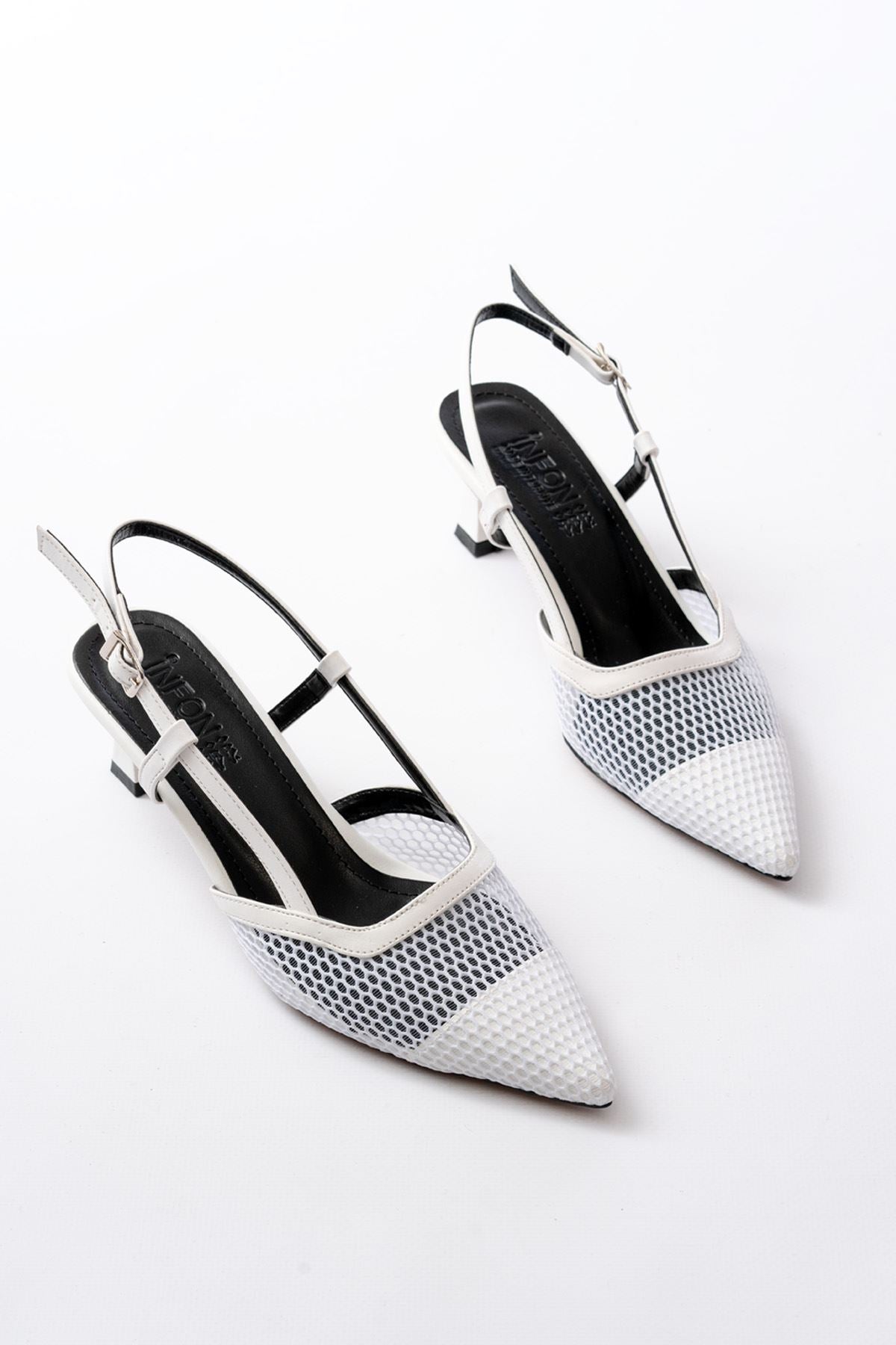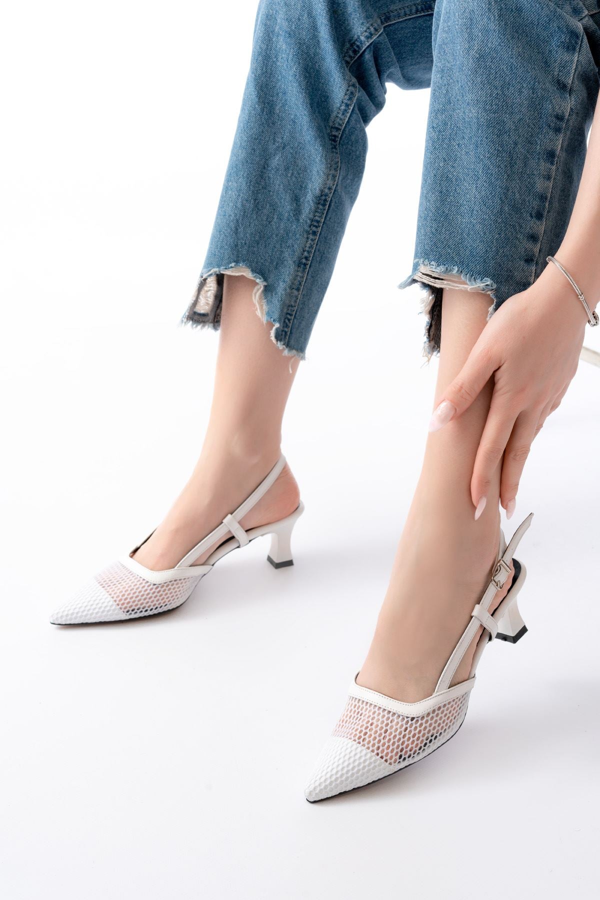 Ayakkabı Aşkı Beyaz Günlük Fileli Arkası Açık 7 cm Topuklu Bayan Ayakkabı