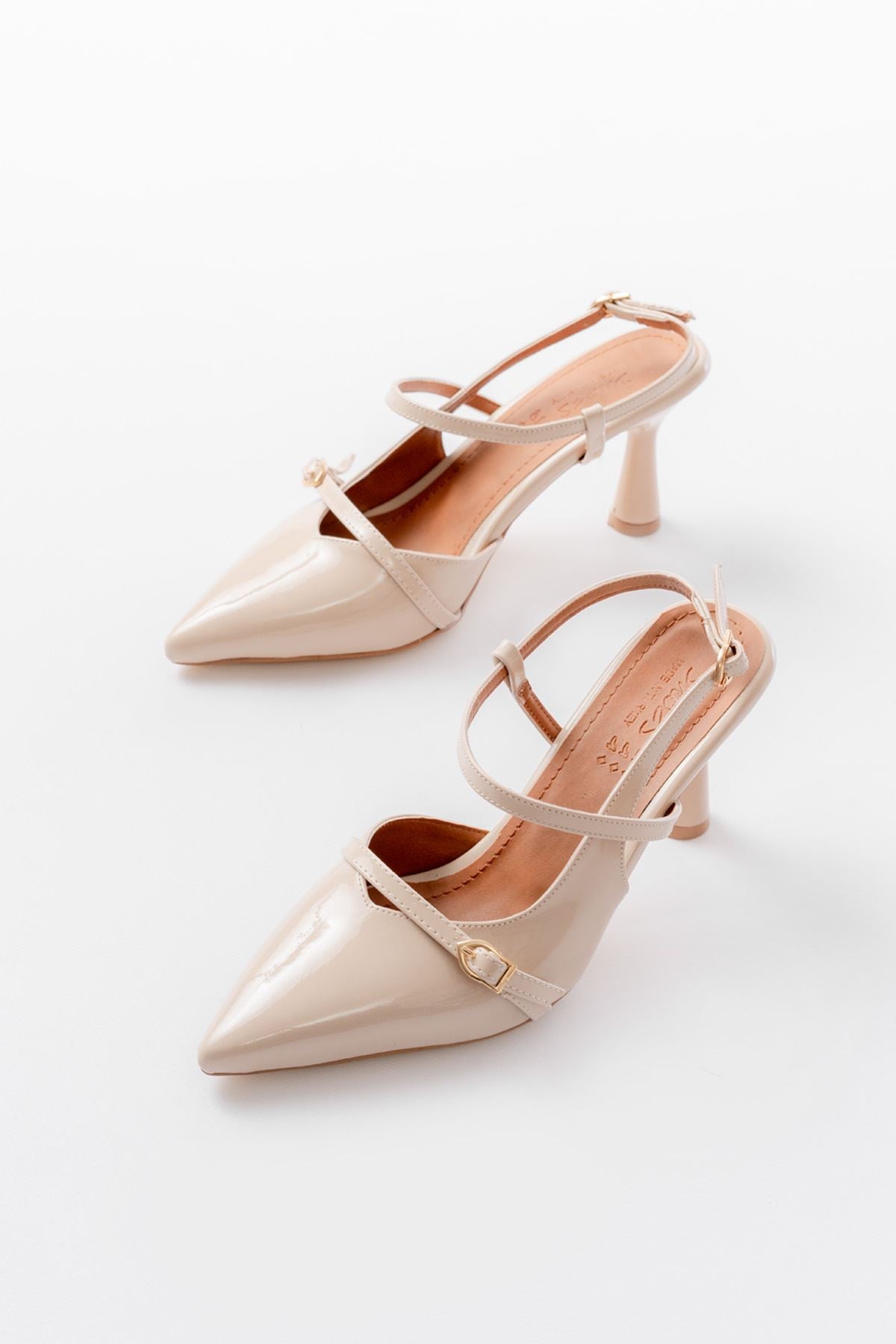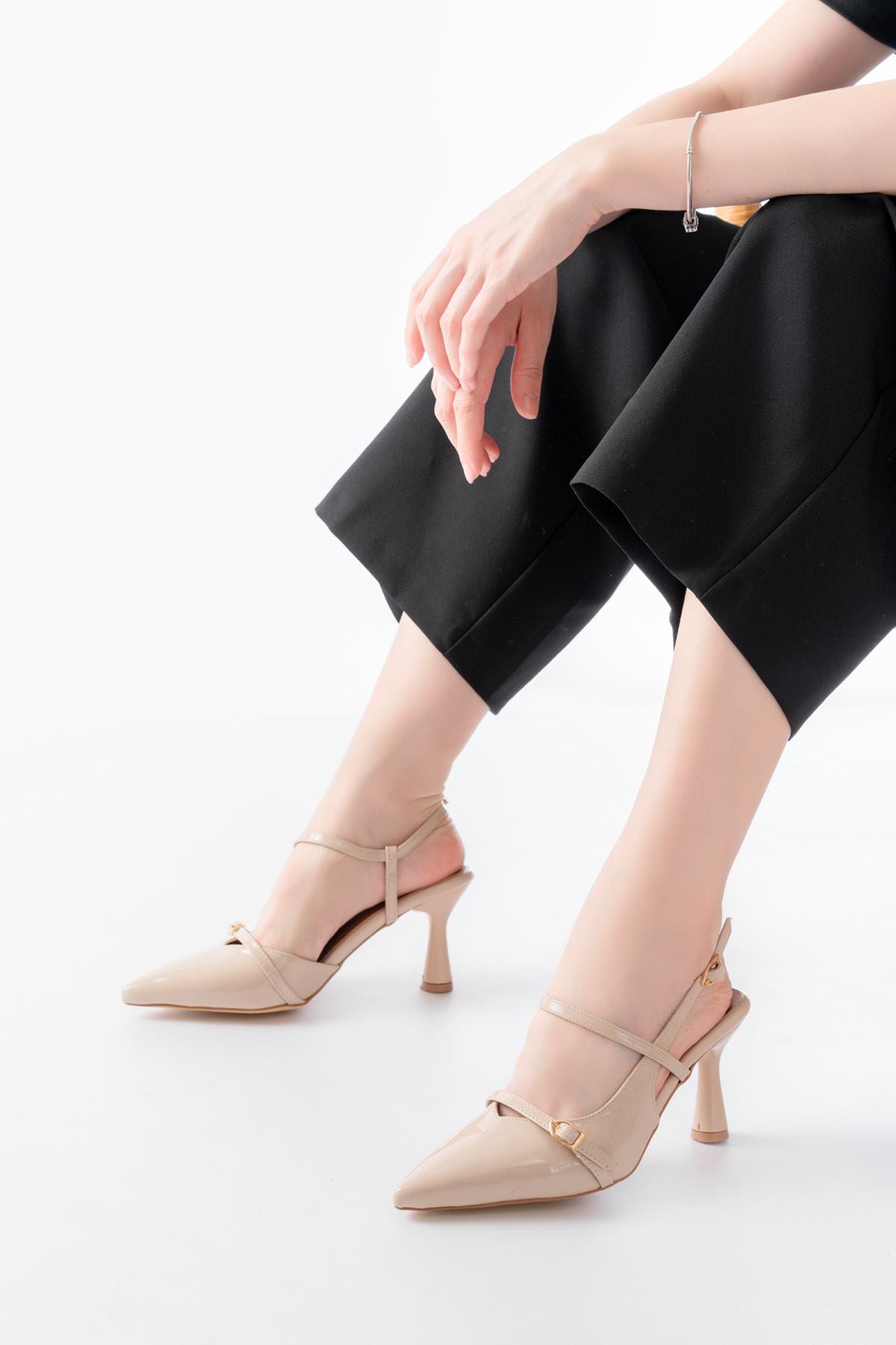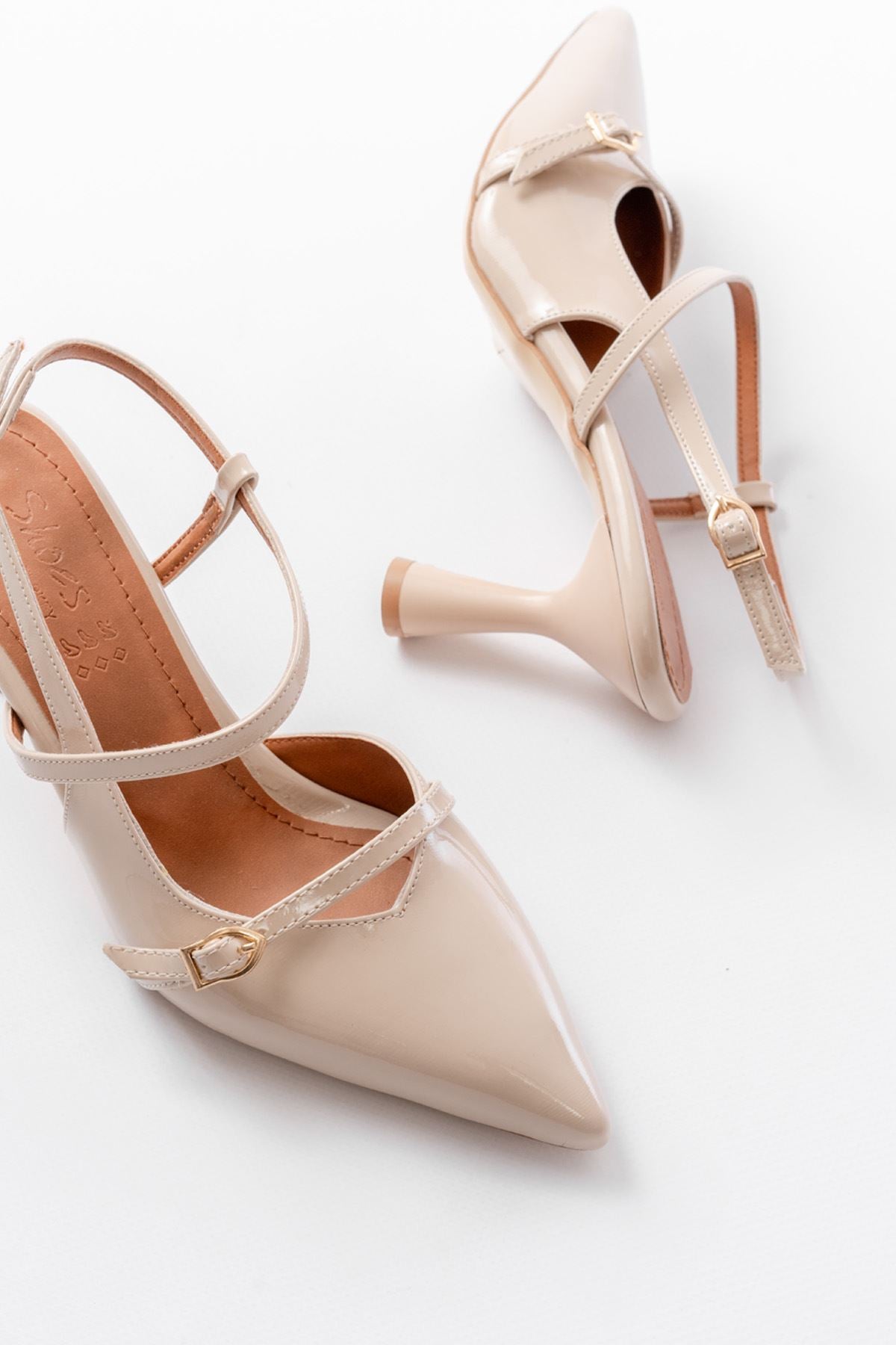 Ayakkabı Aşkı Bej Rugan Toka Detaylı Sivri Burun Kadın Ayakkabı
