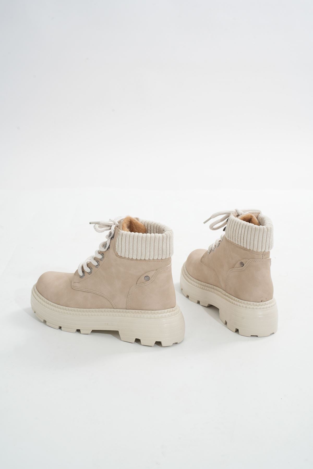 Ayakkabı Aşkı LMÇ-2045 Bej Süet Bağcıklı Kalın Taban Kadın Günlük Bot