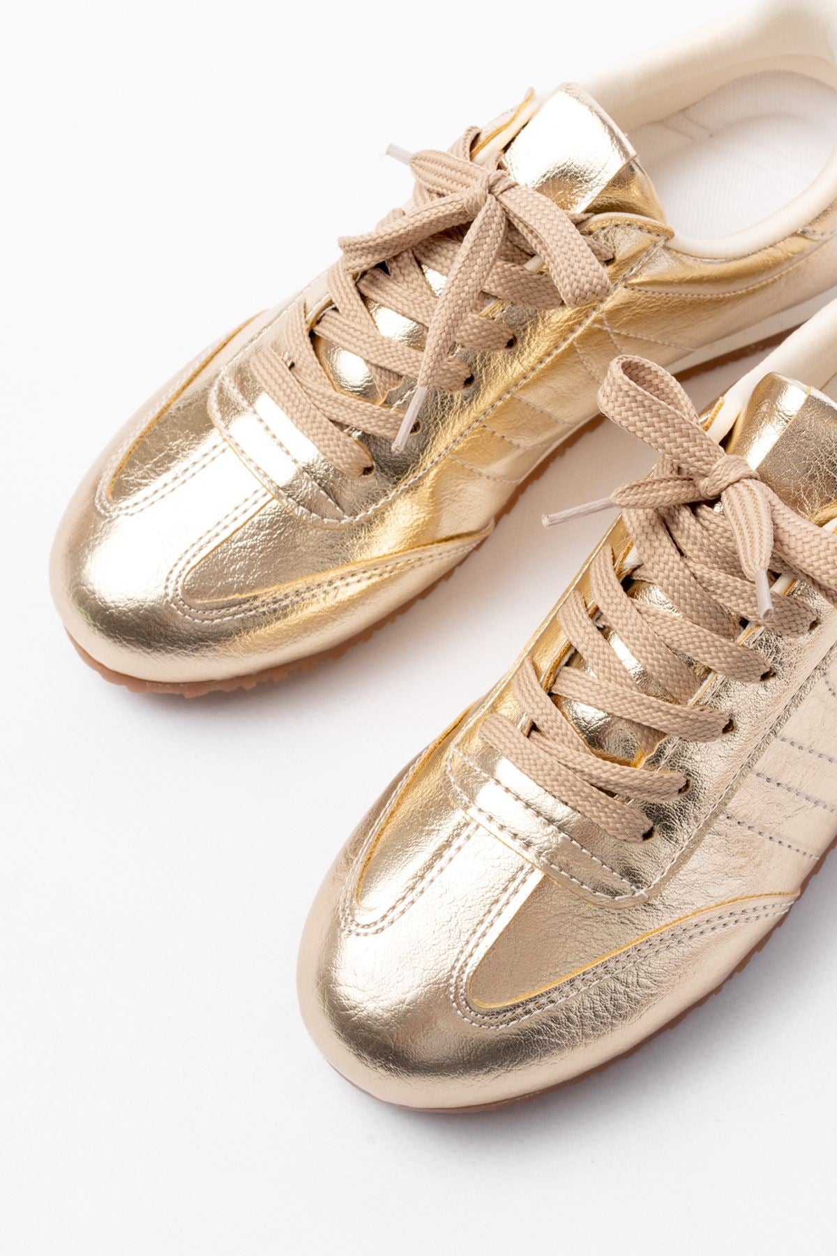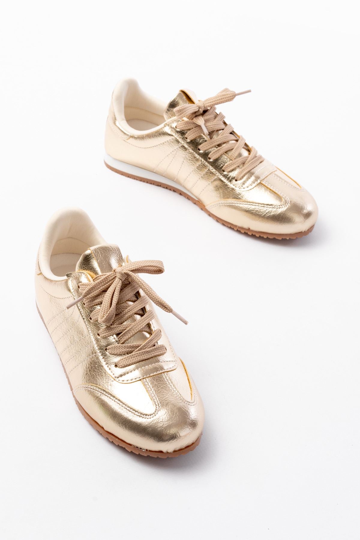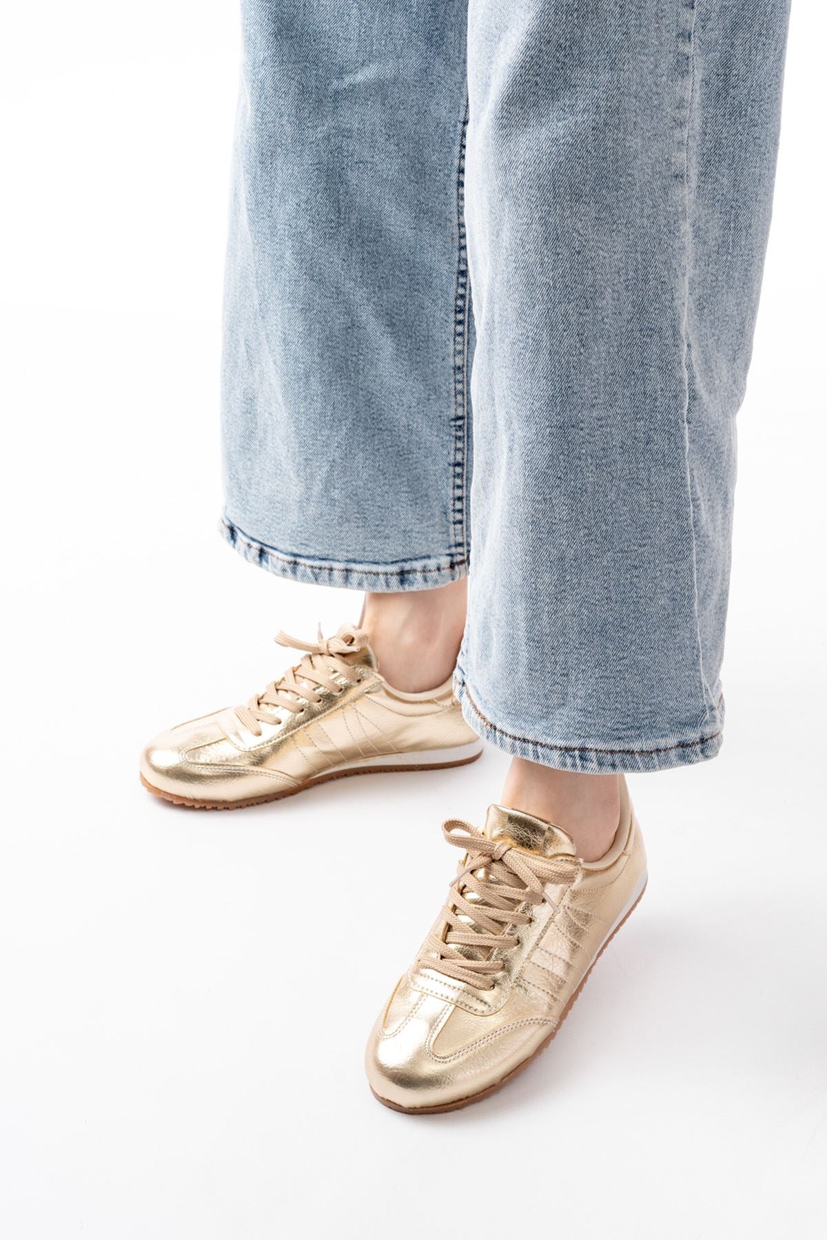 - Şıklık ve konforu bir arada sunan Ayakkabı Aşkı gold sneaker, günlük kombinlerinize zarif bir dokunuş katar.